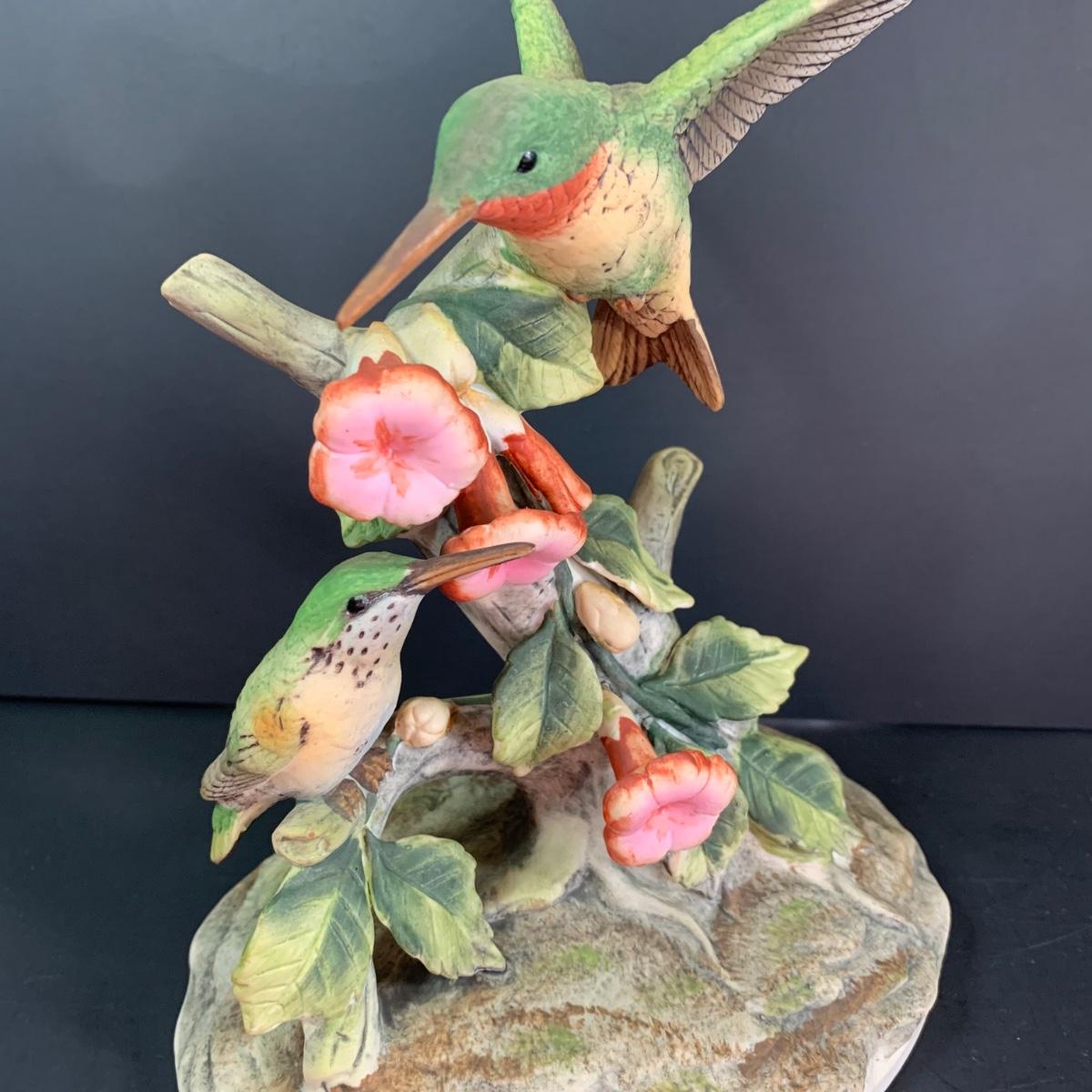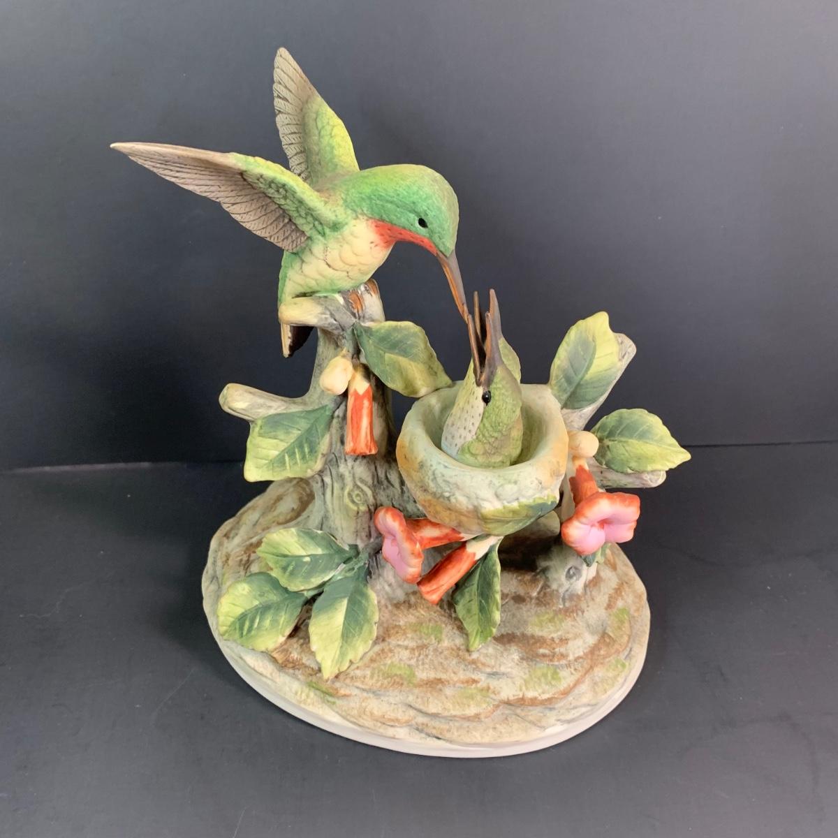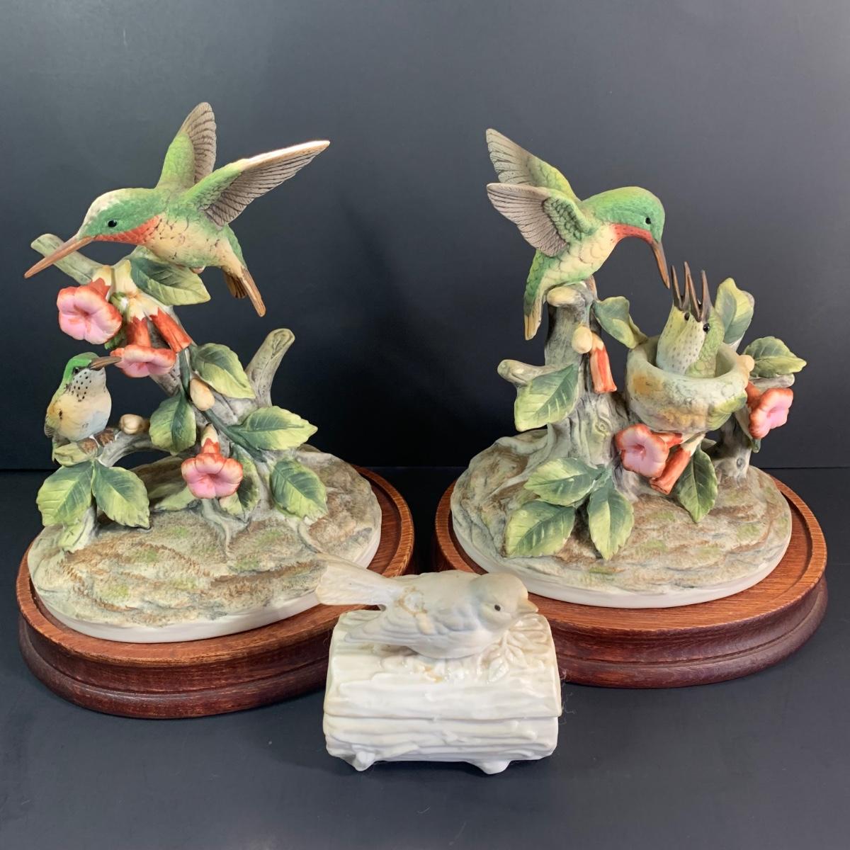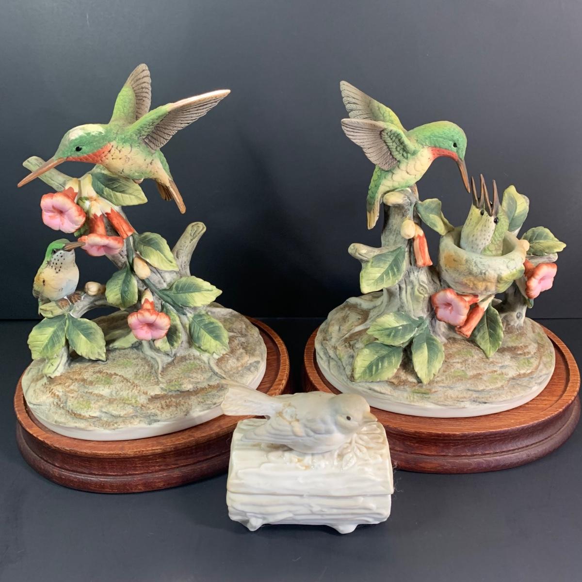 LOT 92R: Andrea by Sadek Hummingbird Figures & Bird on Log Trinket Box