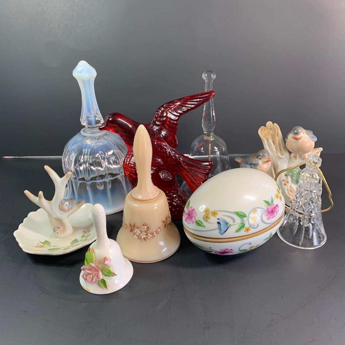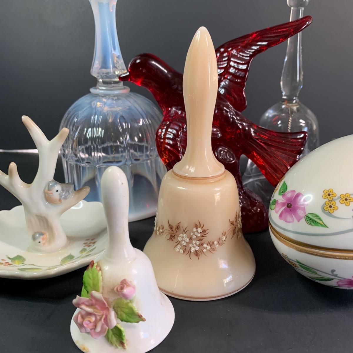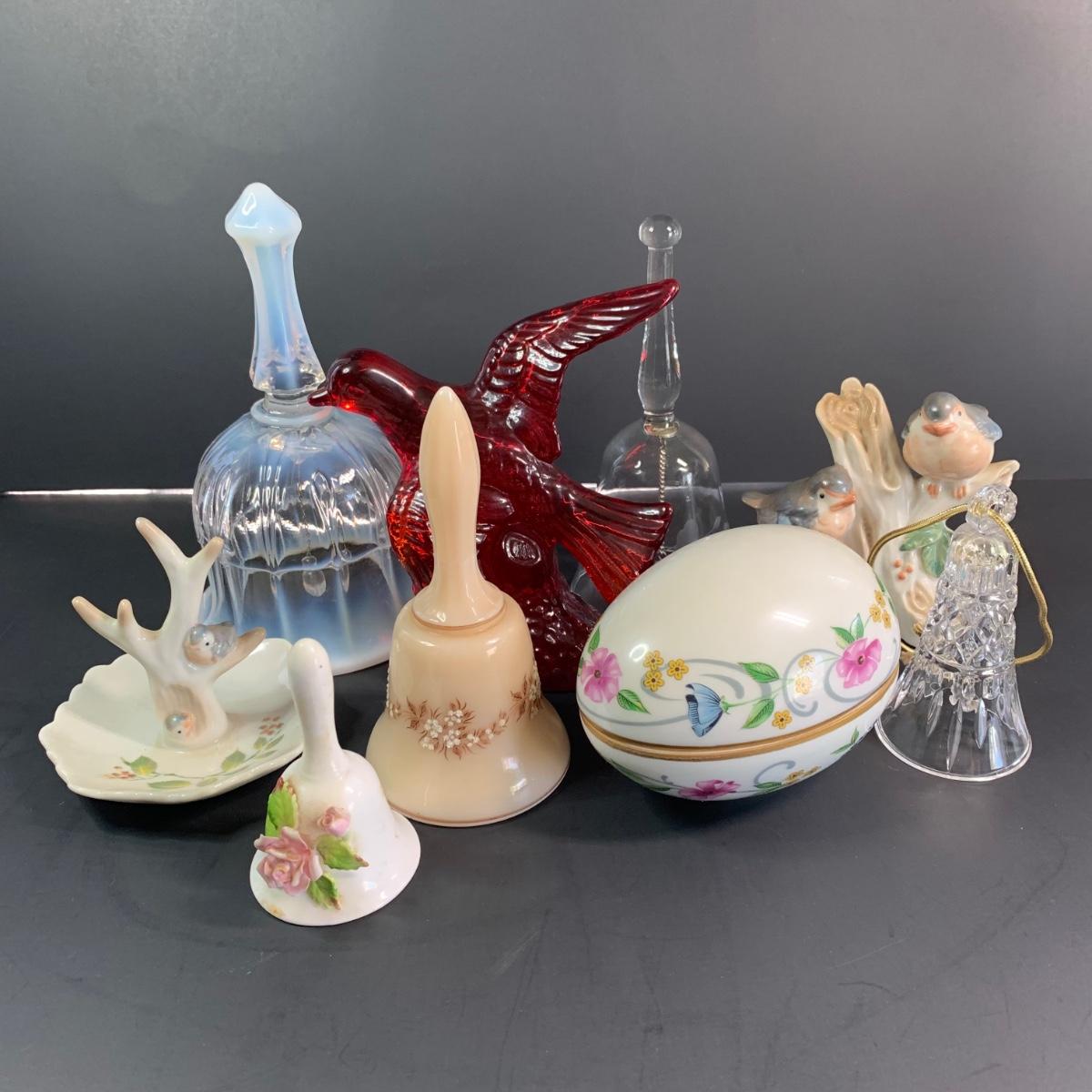 LOT 93R: Fenton Bell, Westmoreland Bell, Limoges Egg Trinket Dish & More