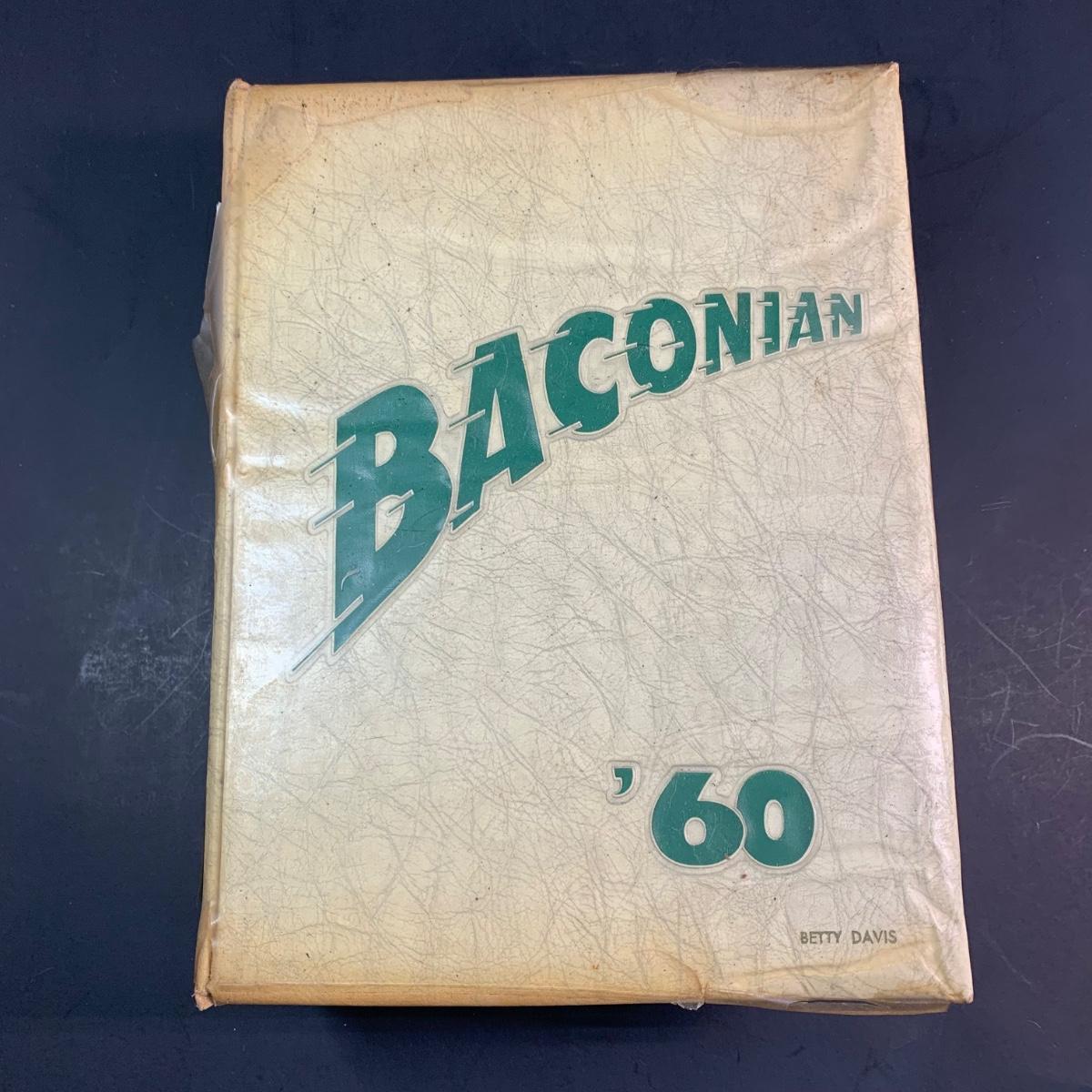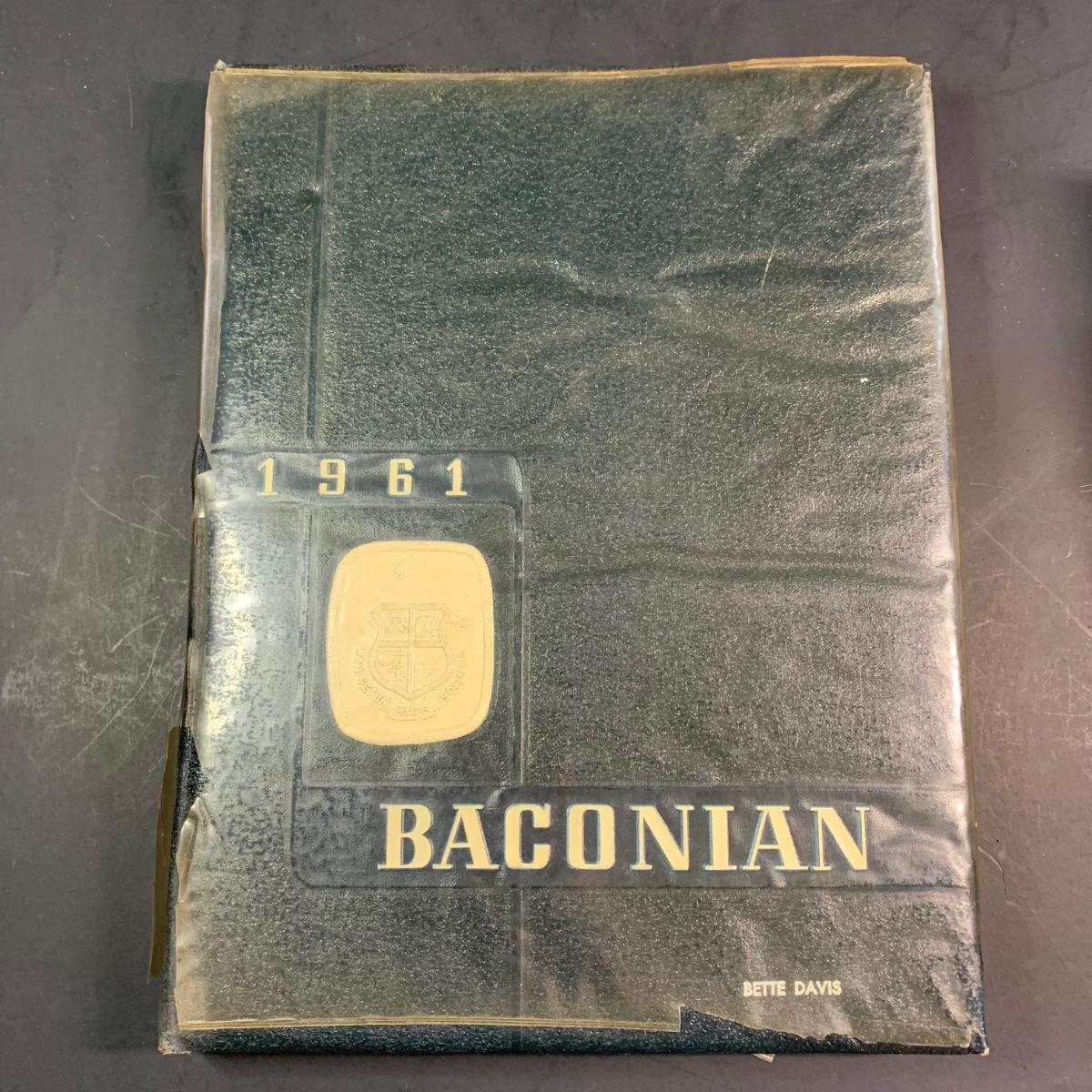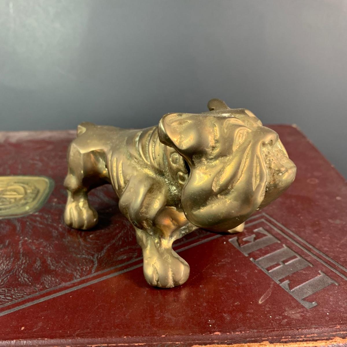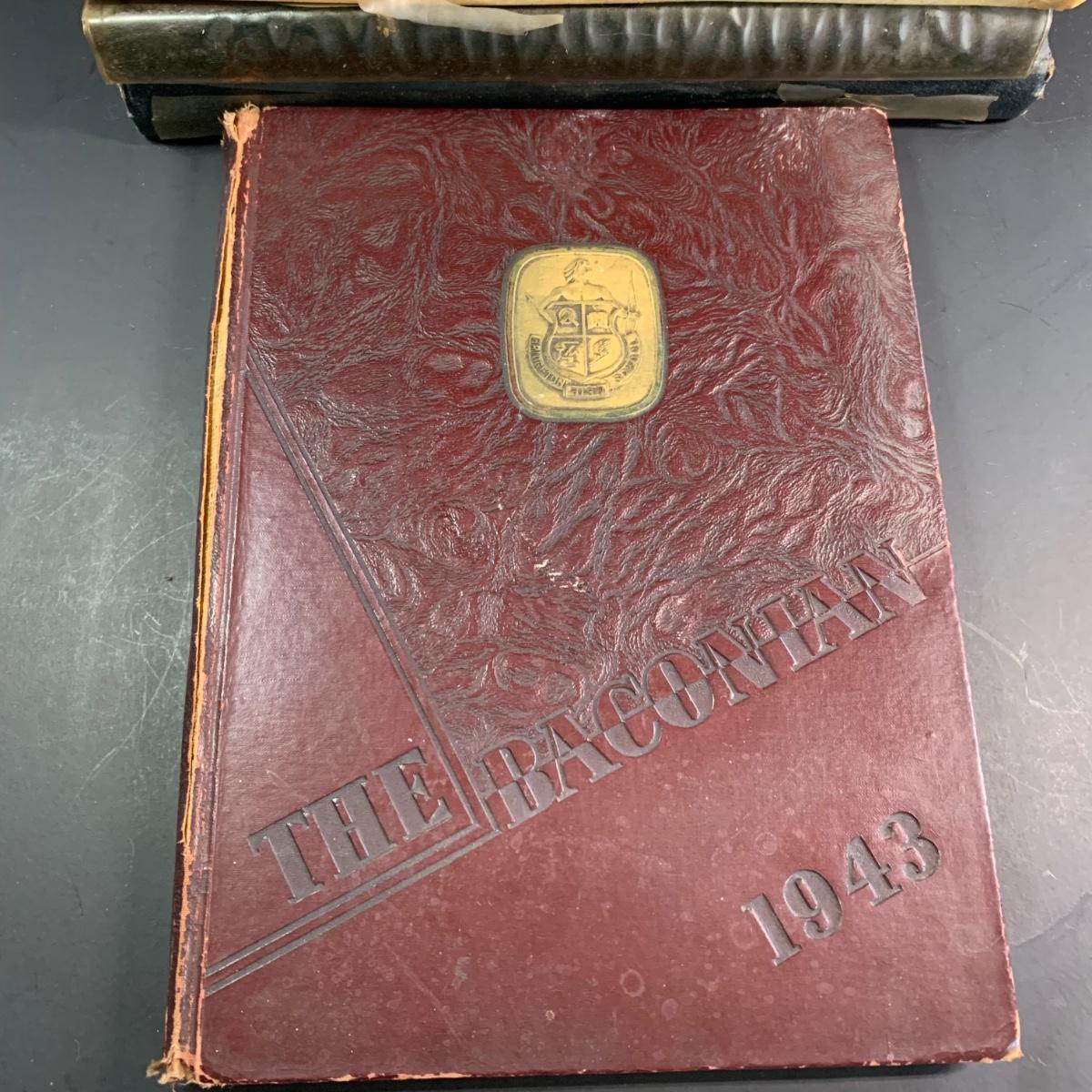 LOT 95R: Vintage Yearbooks, Brass Bulldog, Glass Bulldog & 1964 Bridgeton High School Paperweight