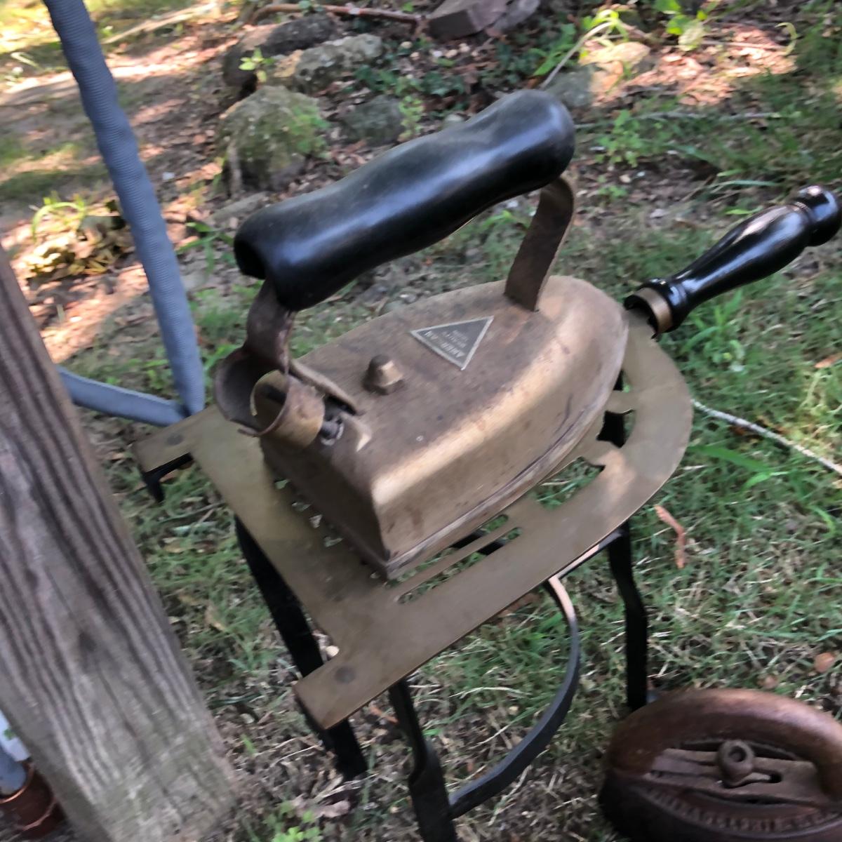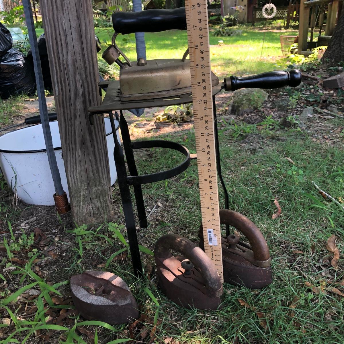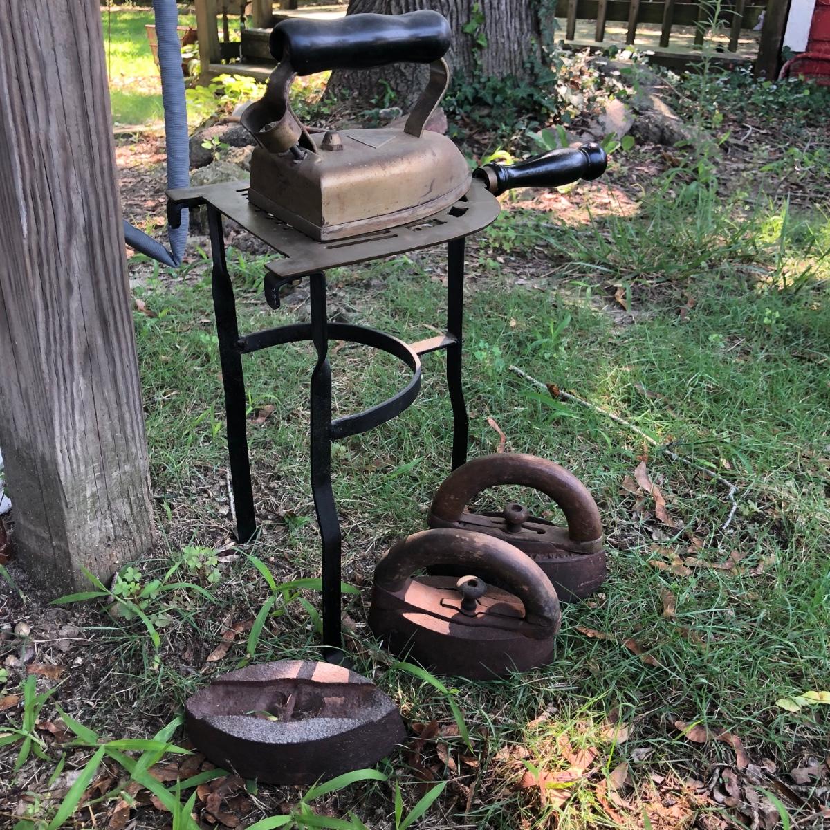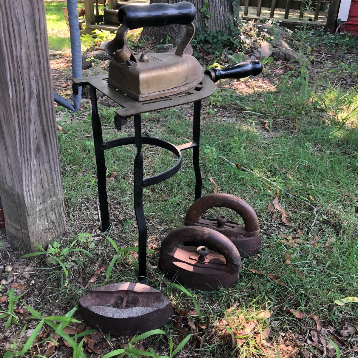LOT 121M: Vintage Metal Iron Stand & Vintage Irons - American Beauty Iron, Enterprise Mfg Co & More
