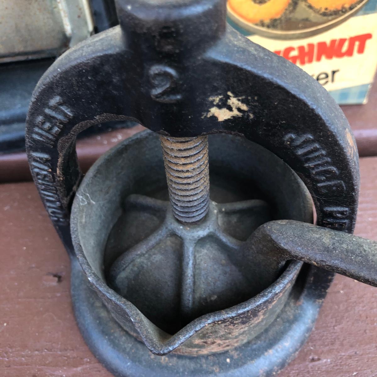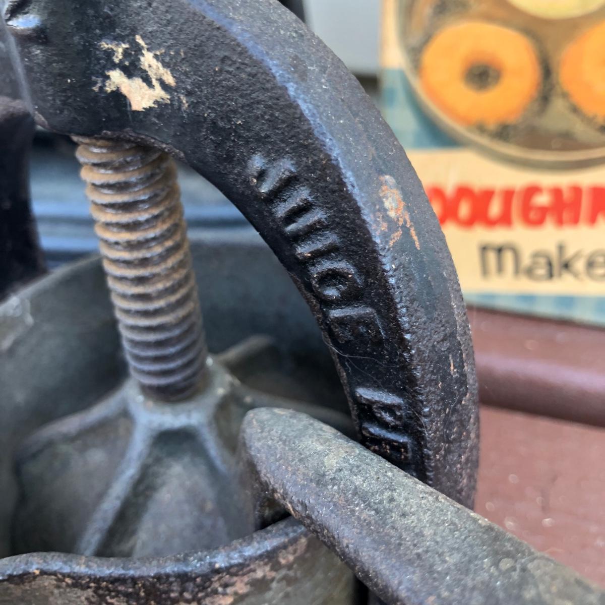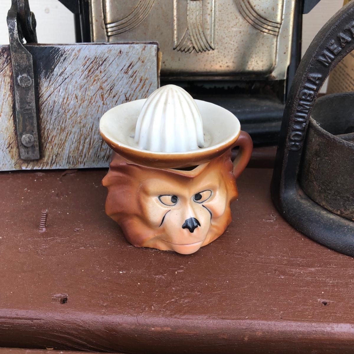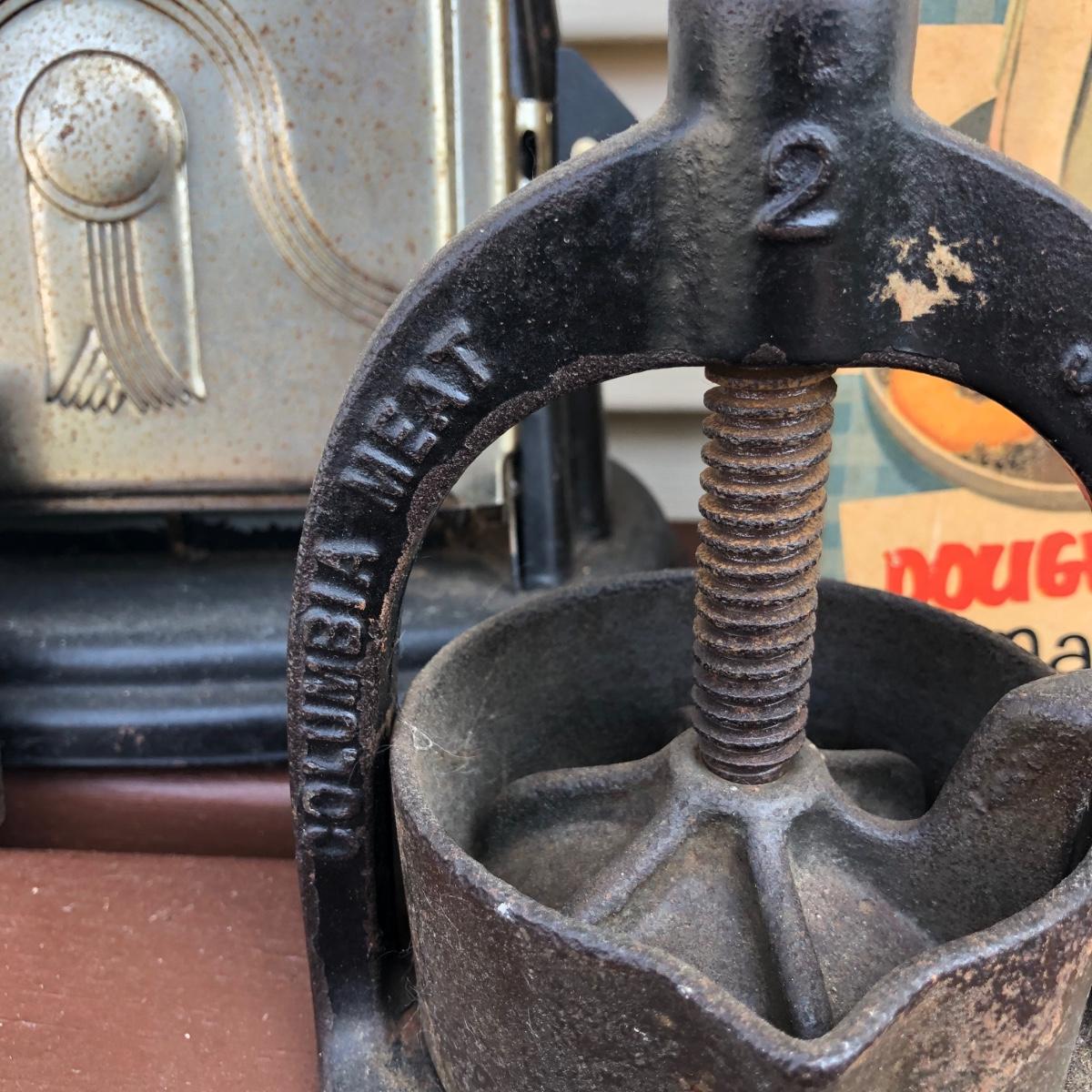 LOT 127: Vintage Kitchen - Columbia Meat Iron Juicer, Kid's Monkey Head Juicer Cup, Toaster, Doughnut Maker & More