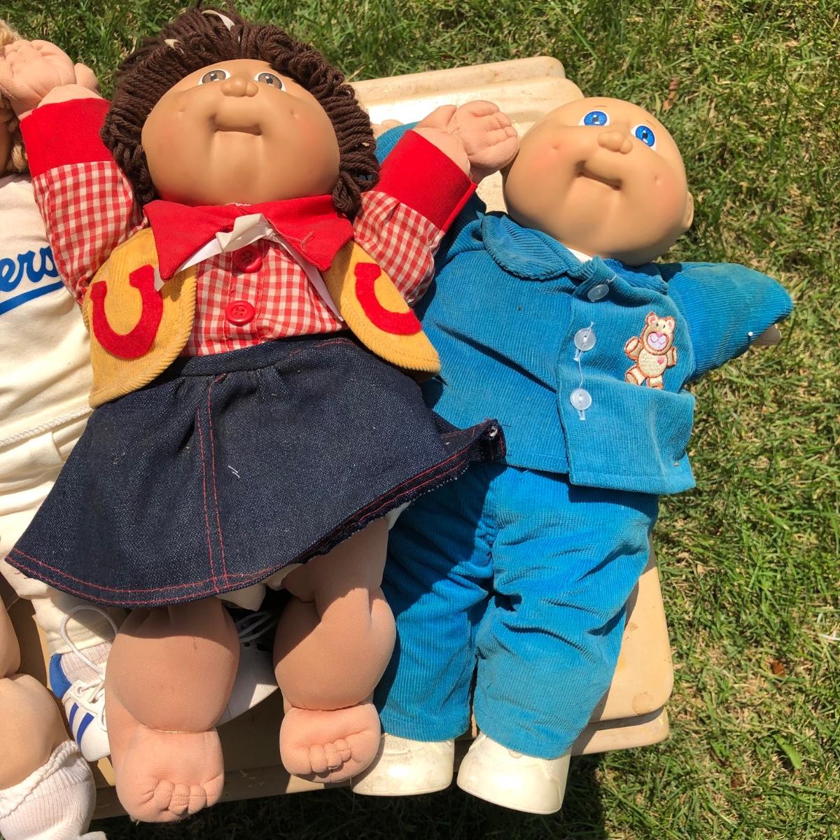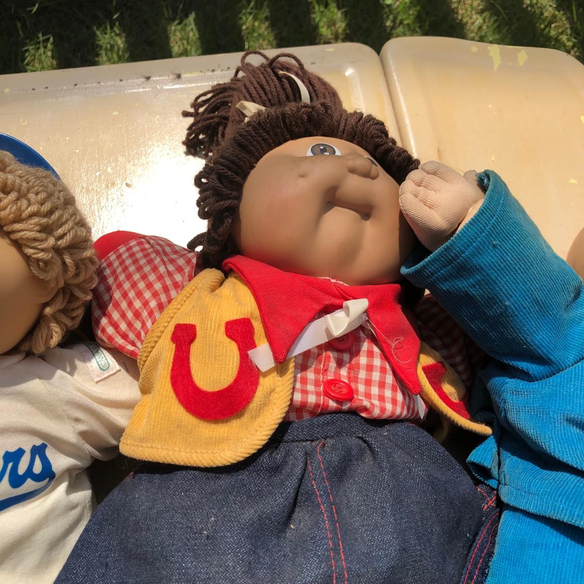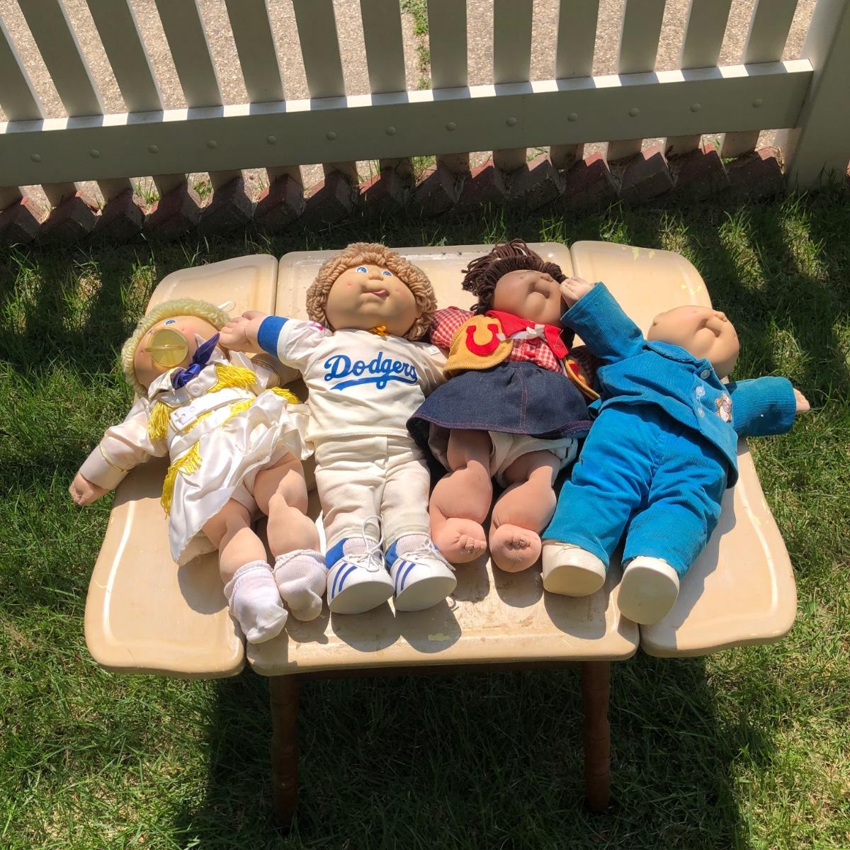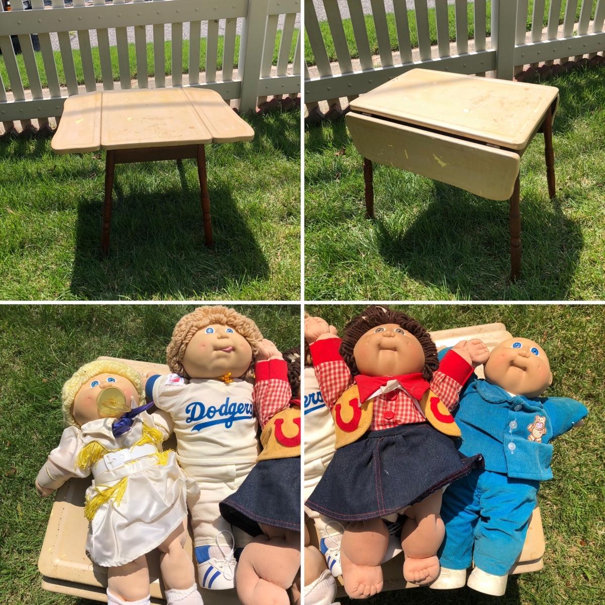 LOT 134M: Vintage Kids Activity Table & Four Cabbage Patch Kid Dolls