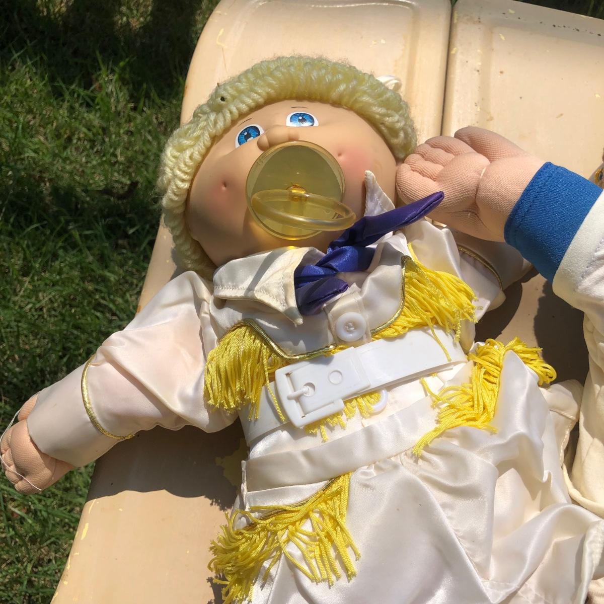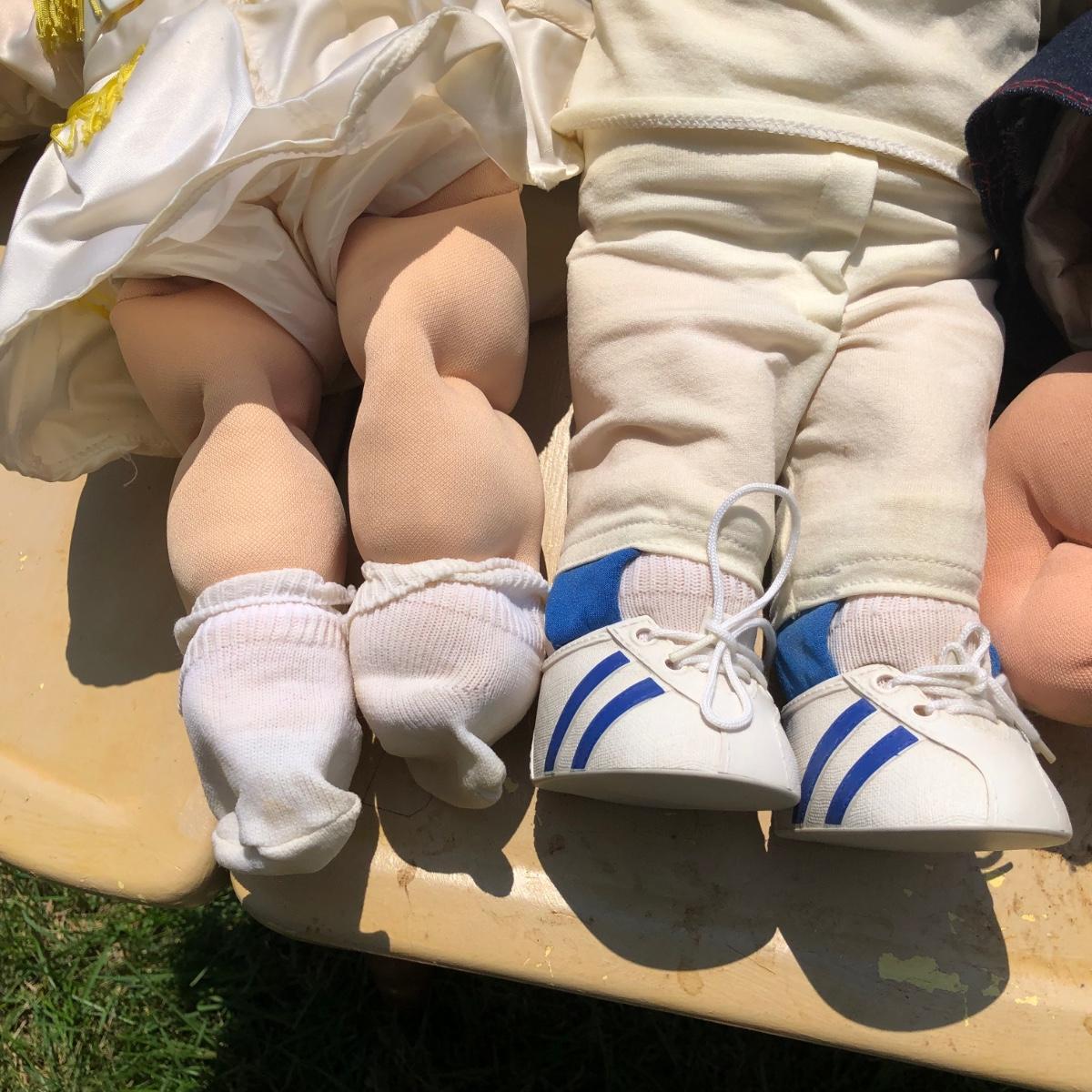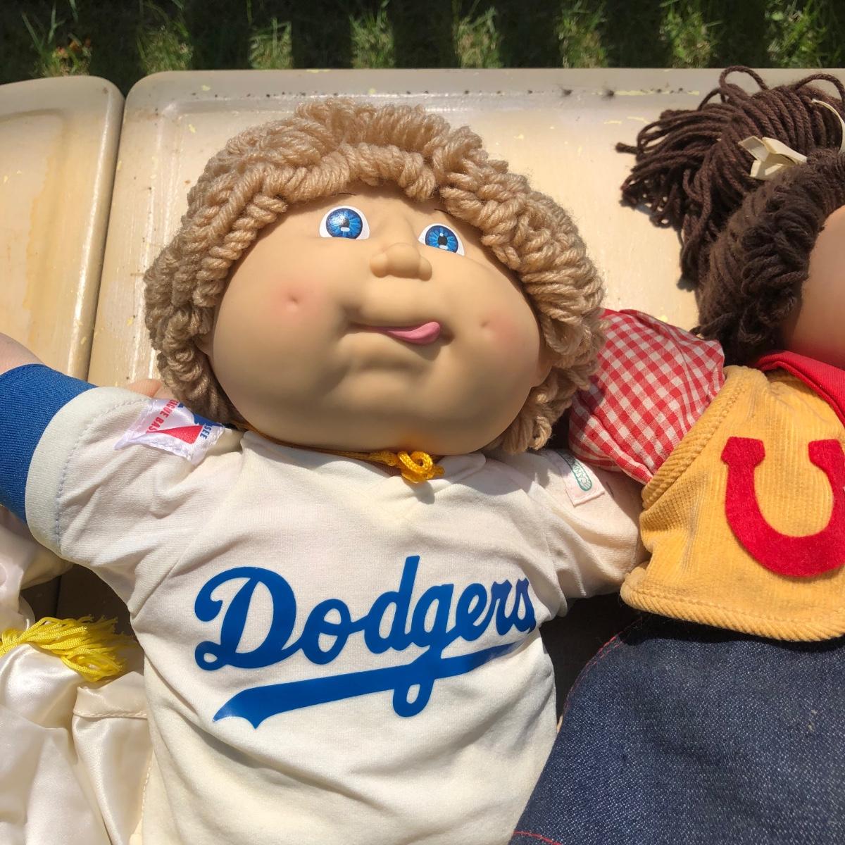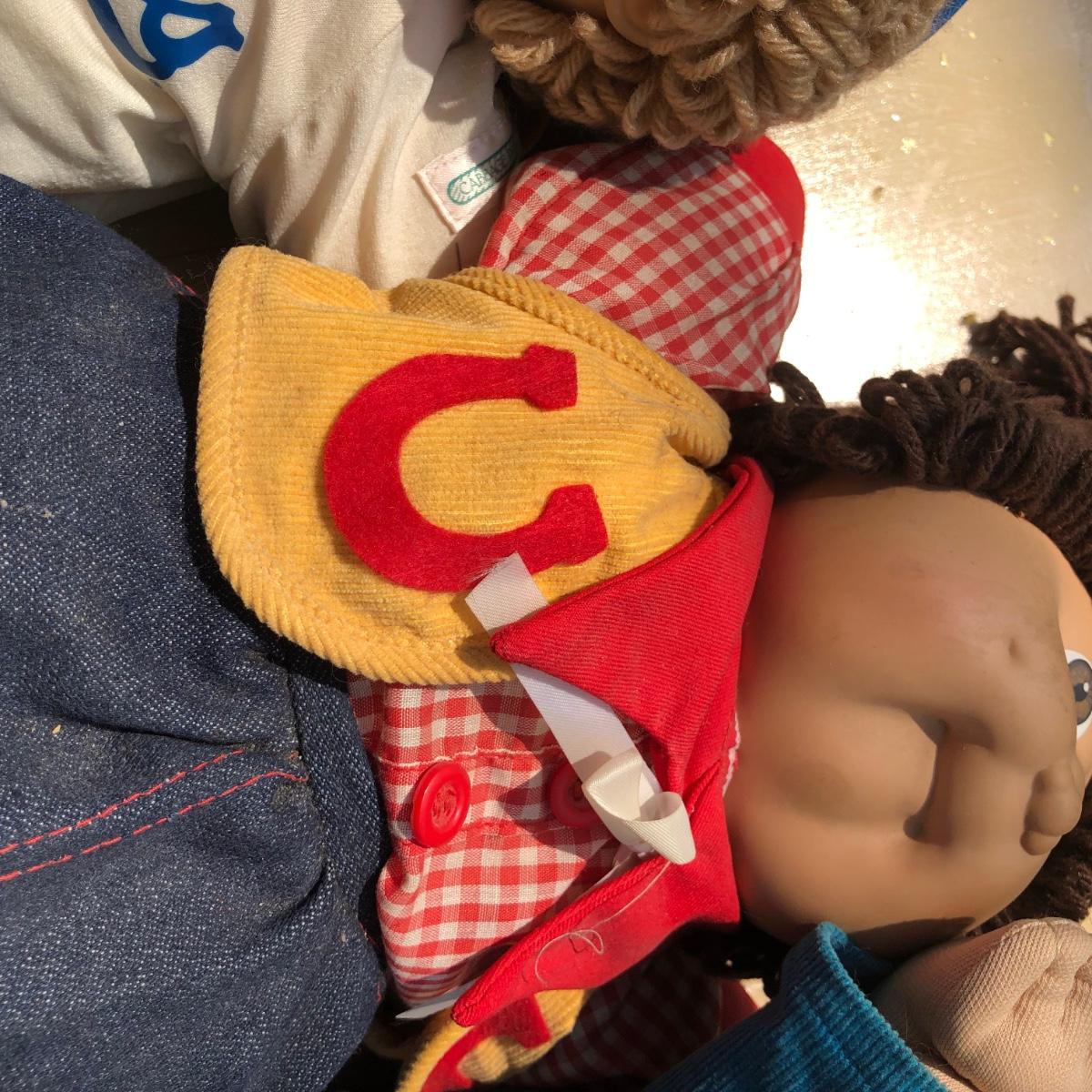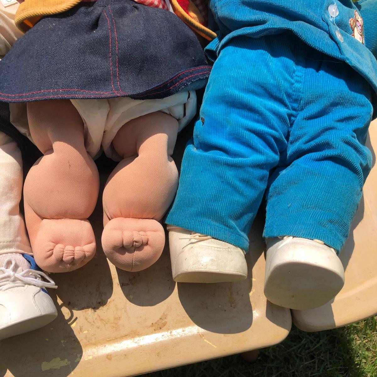 LOT 134M: Vintage Kids Activity Table & Four Cabbage Patch Kid Dolls