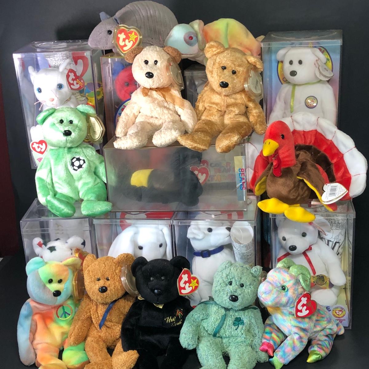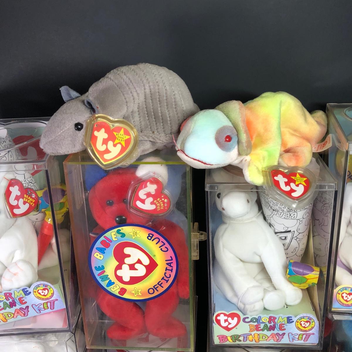 LOT 140M: Beanie Babies in Cases incl. Color Me Beanies NIB & More Beanies