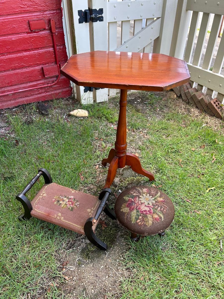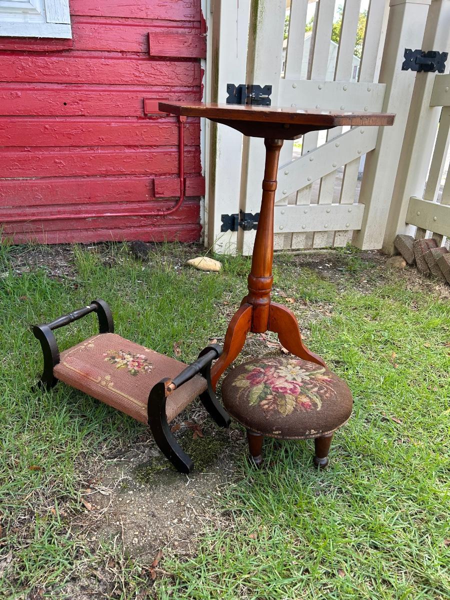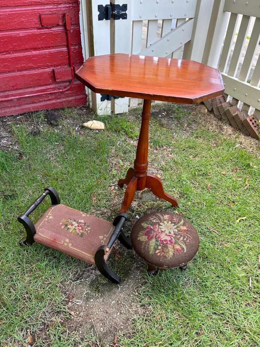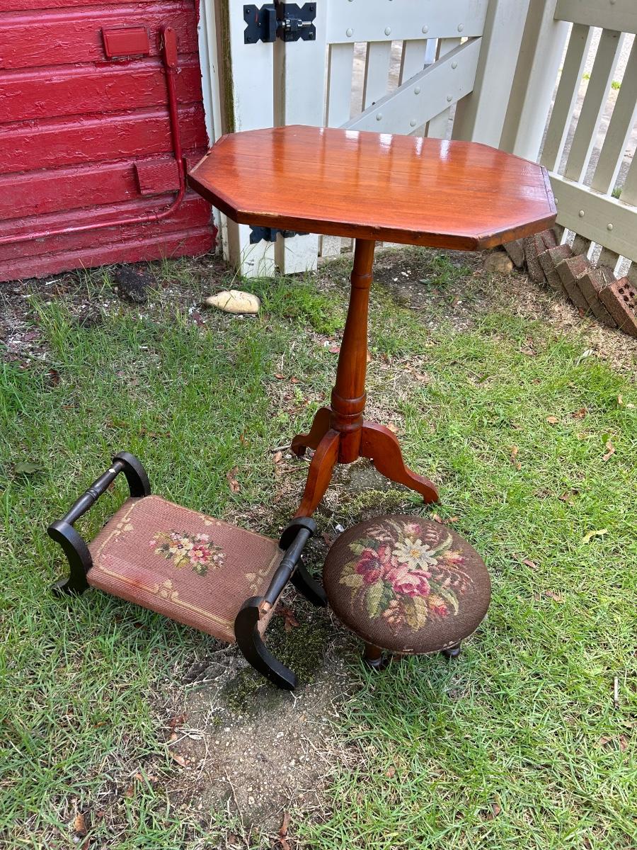LOT 217: End Table & Two Footstools