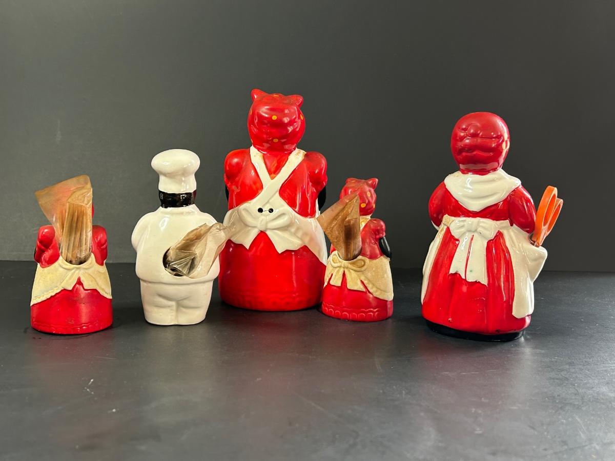 Cookie jar, salt and pepper shakers, bank, utensil holder, decanter and more.