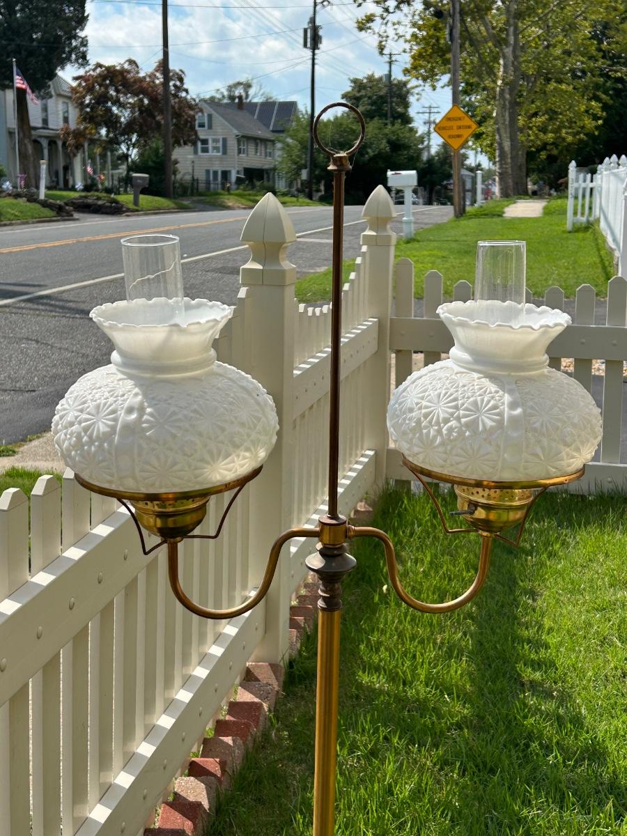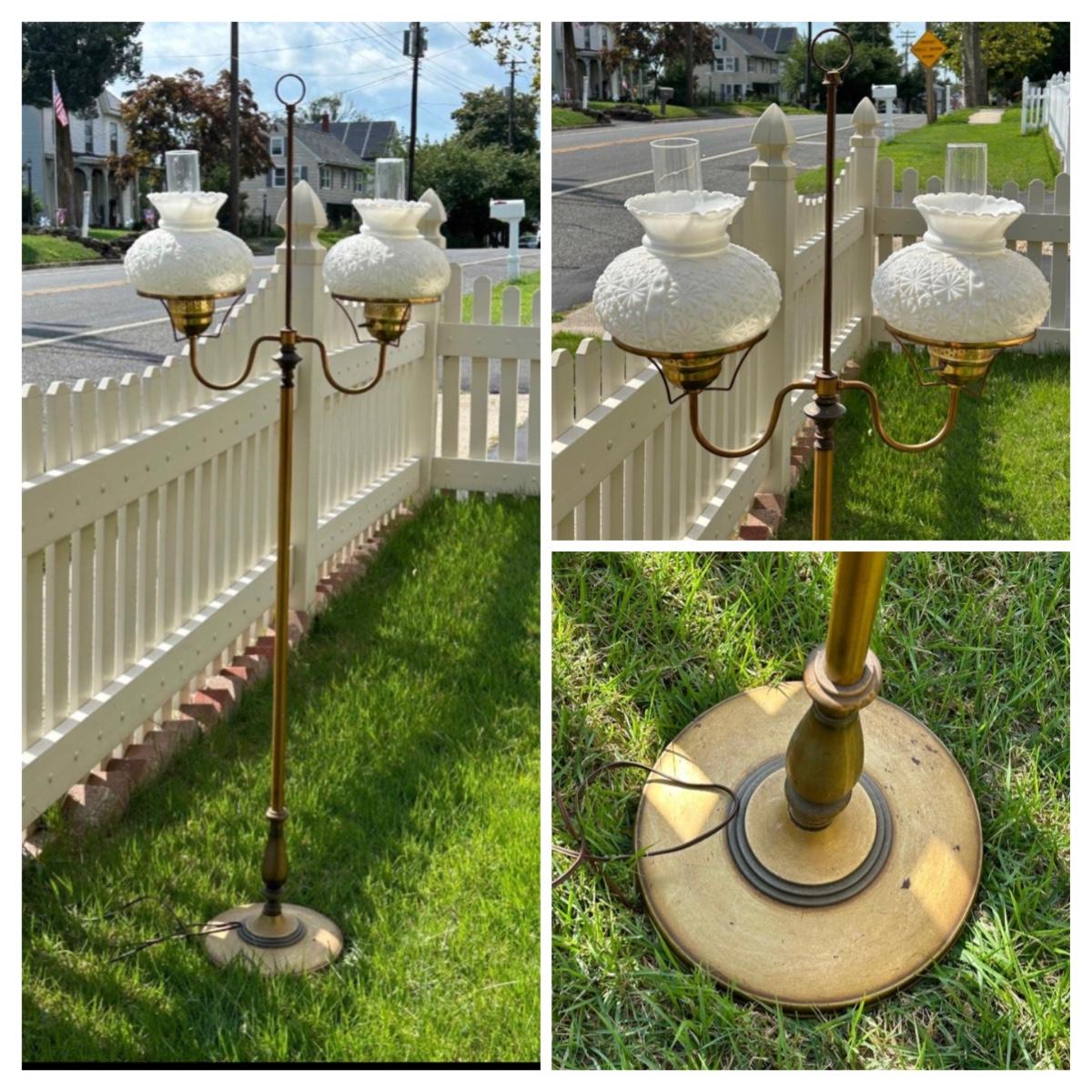 LOT 226: Vintage Floor Lamp w/Milk Glass Shades (untested)