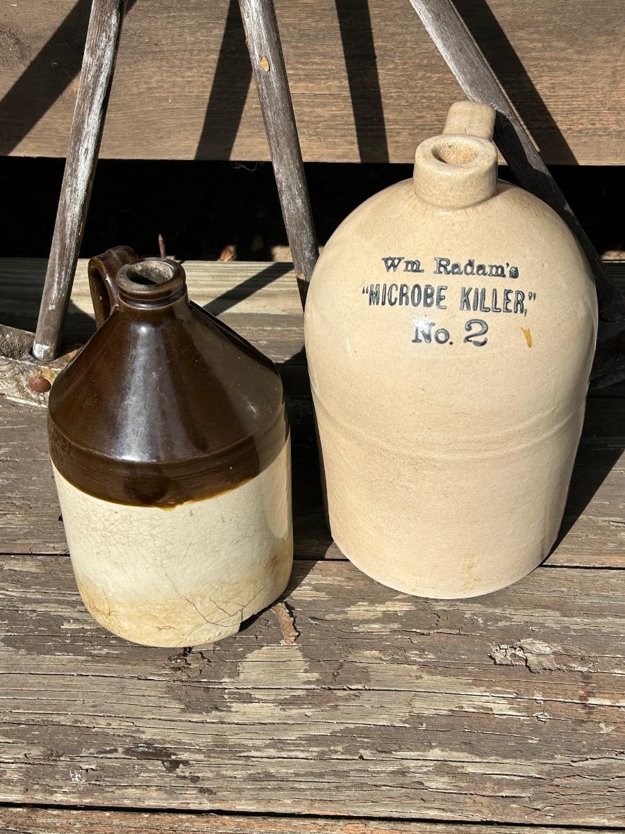 LOT 228: Vintage Wm. Radman's Microbe Killer No. 2 Jug & Vintage Pottery Jug