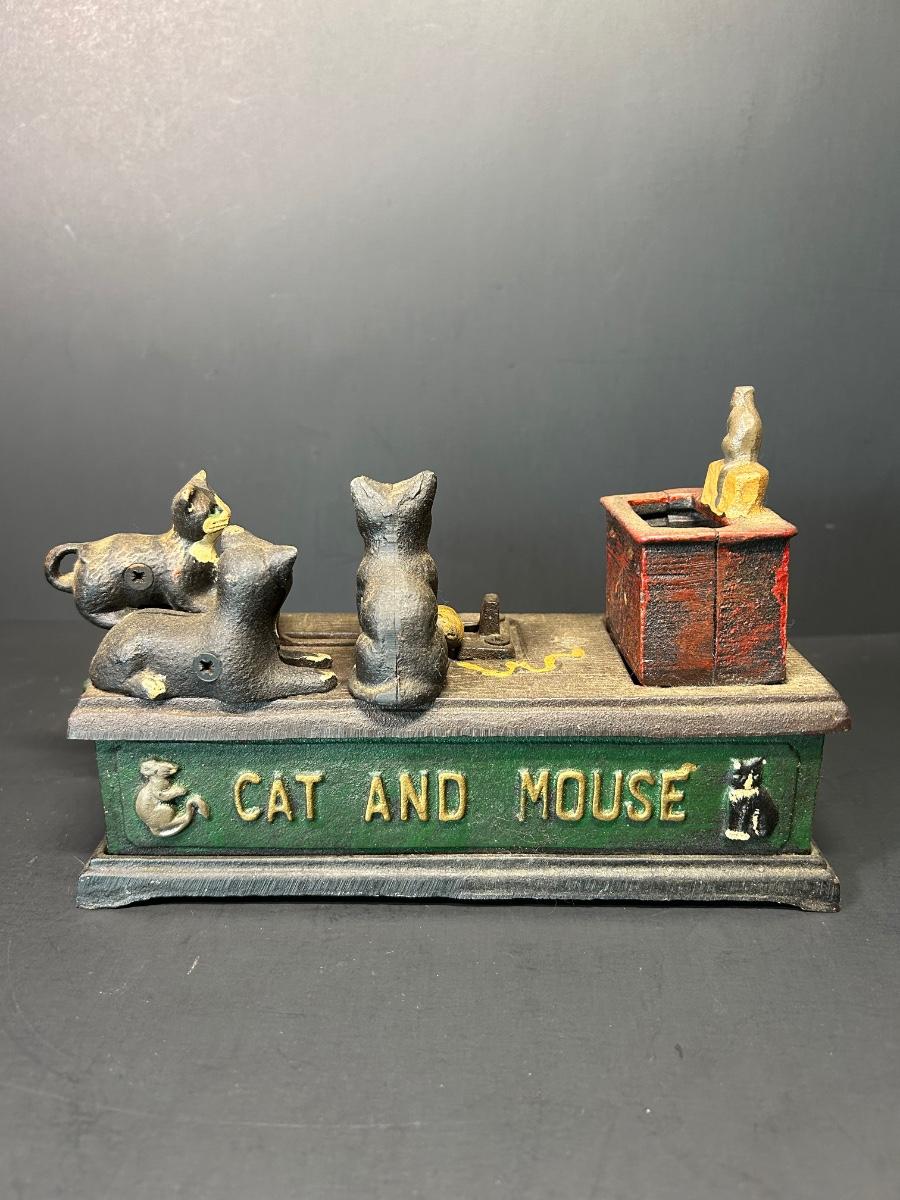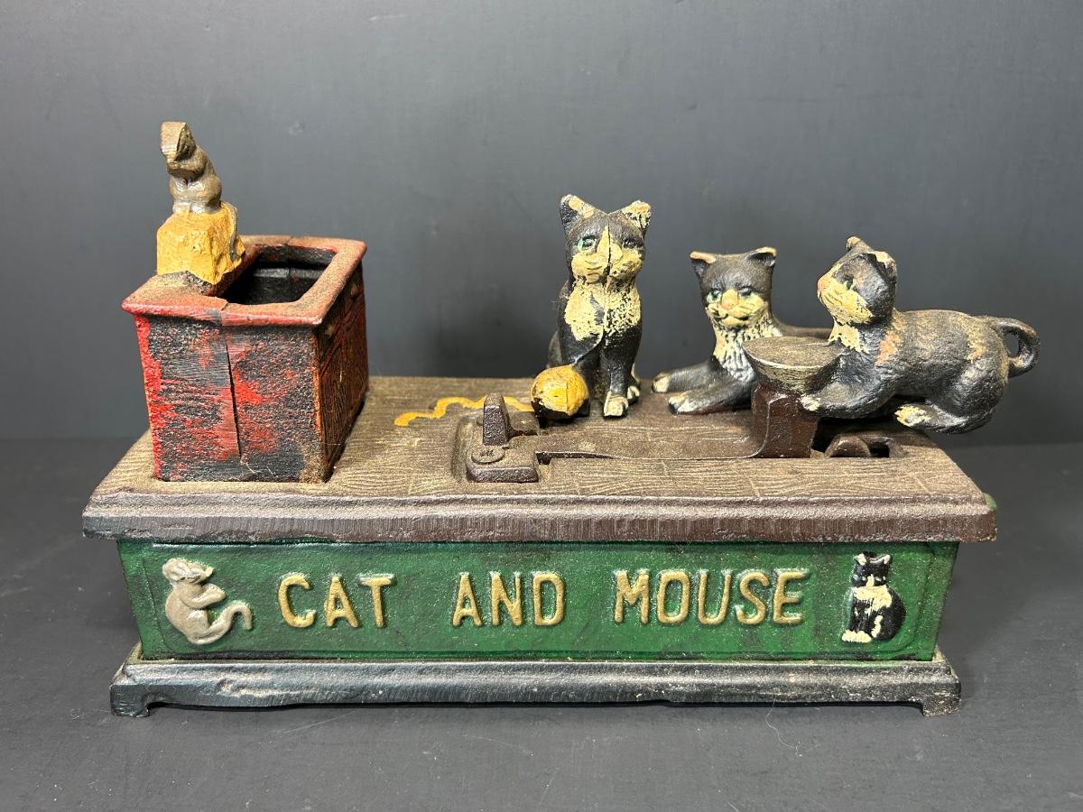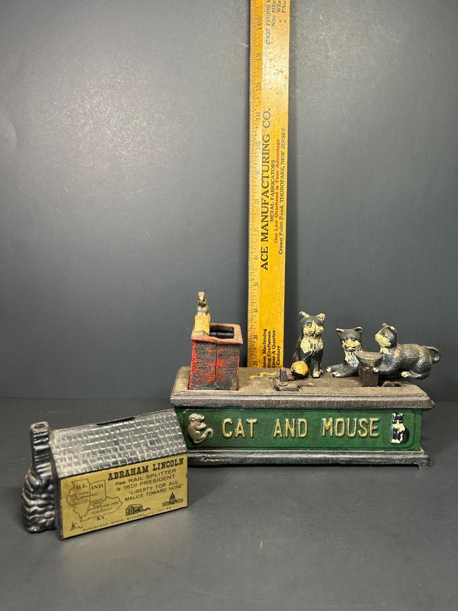 LOT 230/ 231: Cast Iron & Brass Abraham Lincoln Bank & Reproduction Cat & Mouse Bank