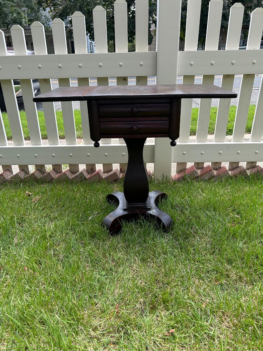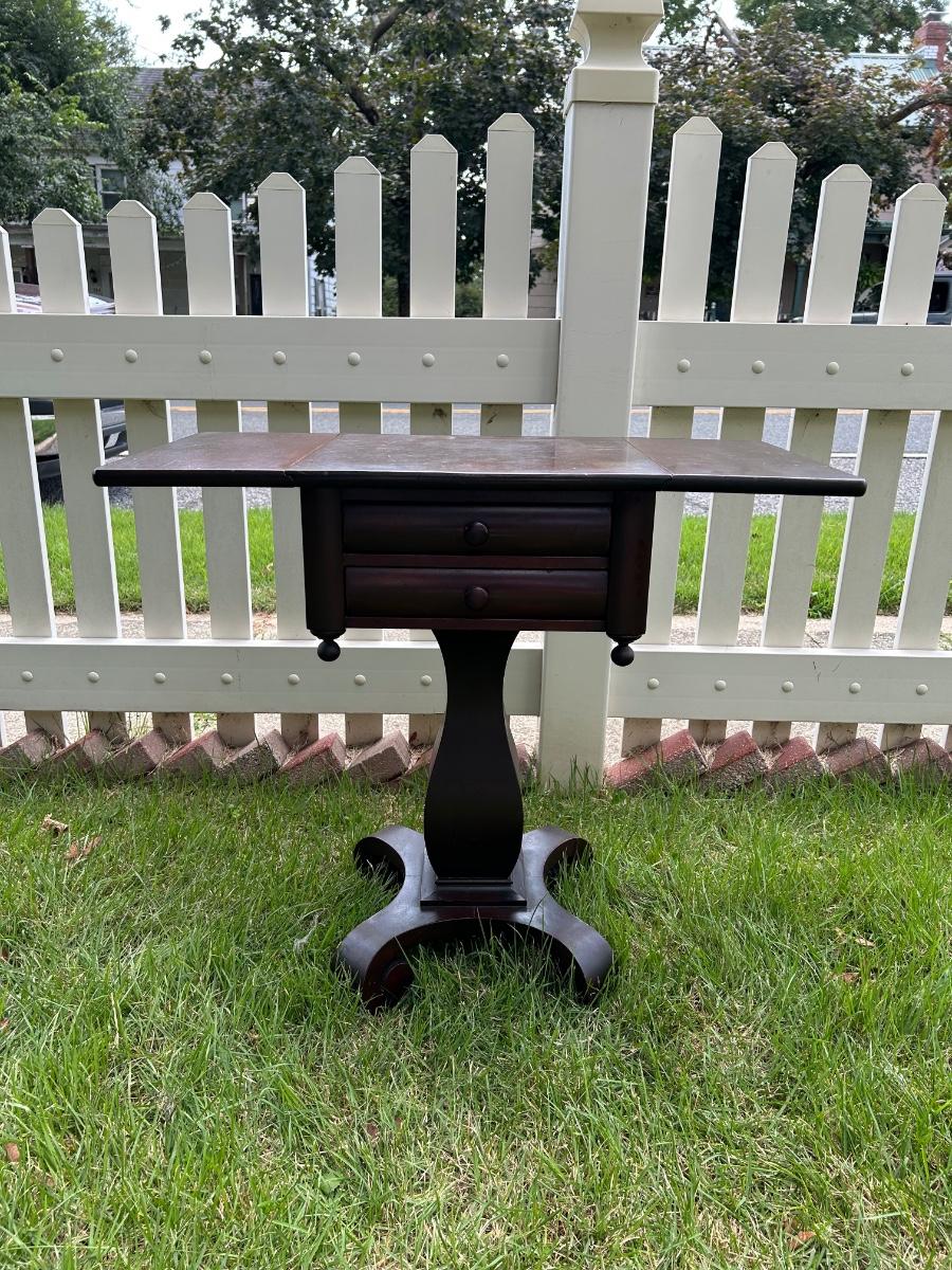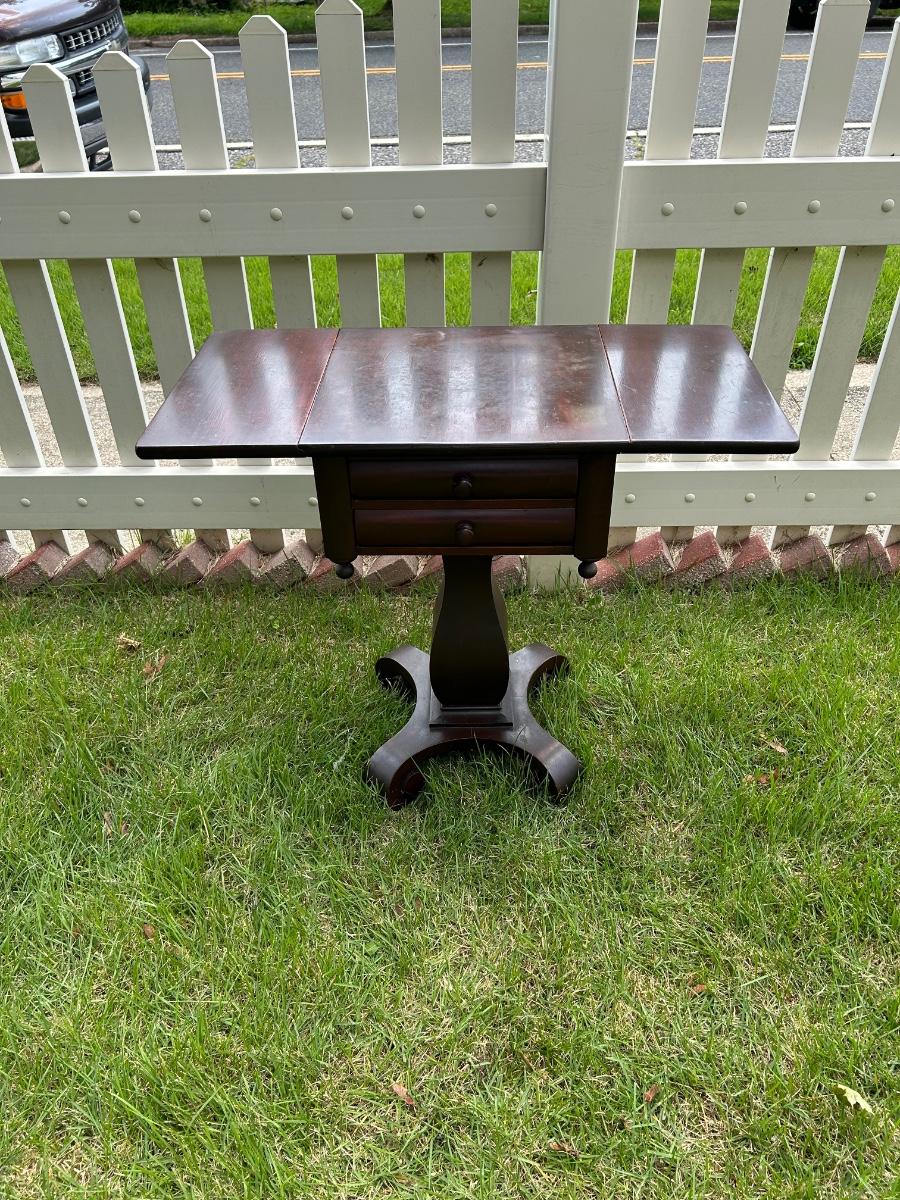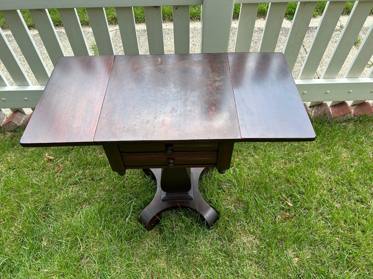 LOT 235: Vintage Pedestal Drop Leaf Side Table
