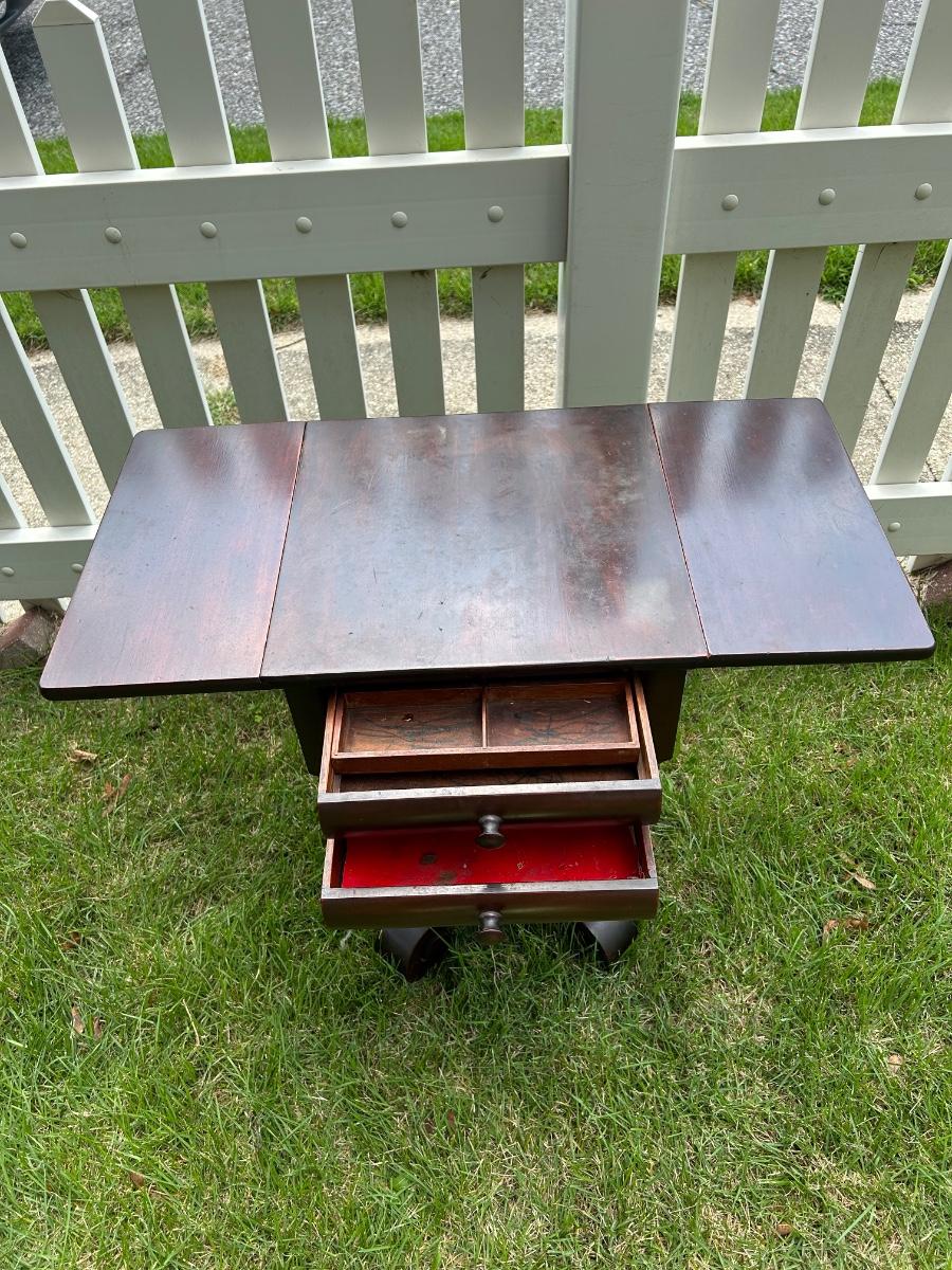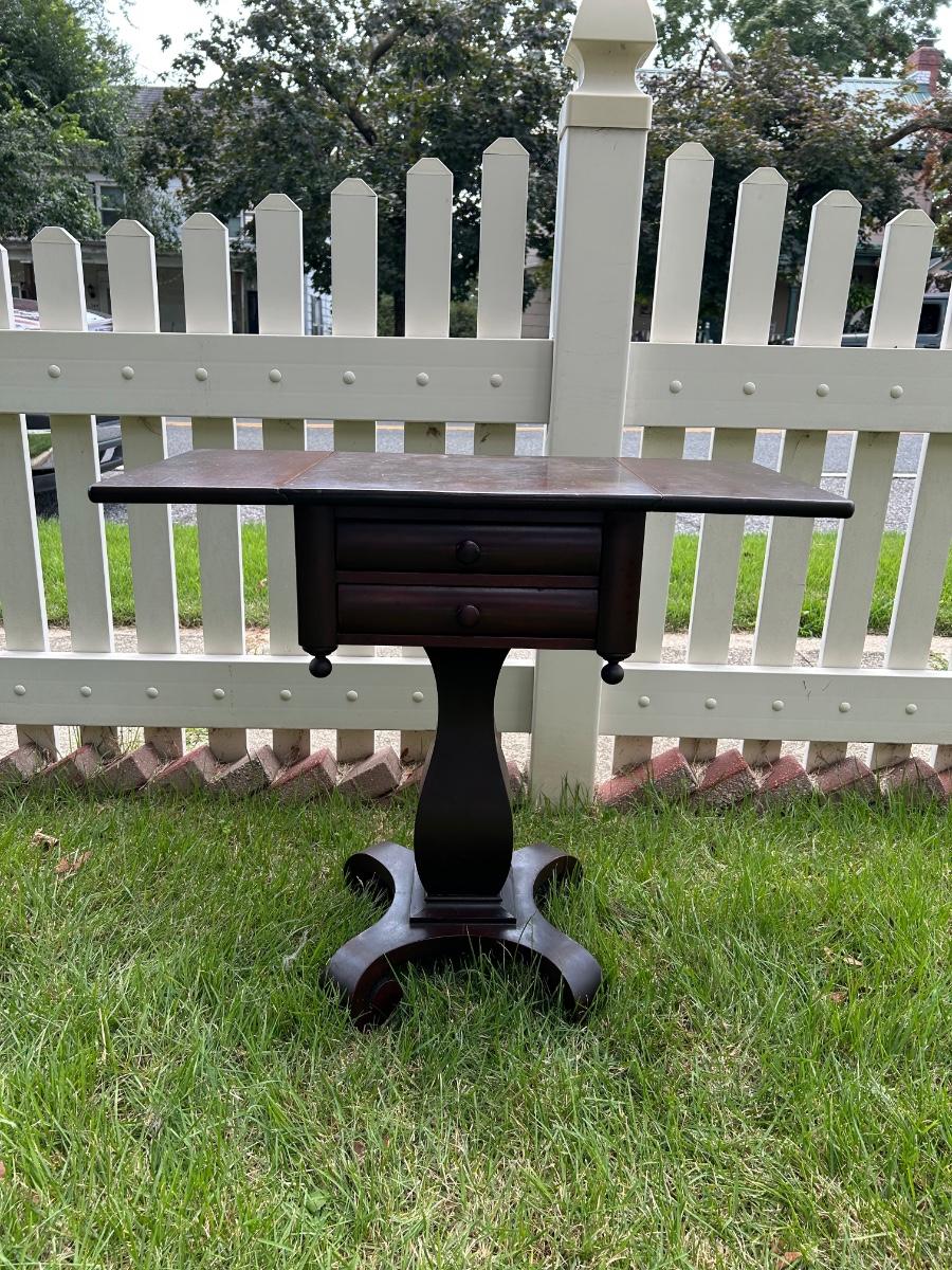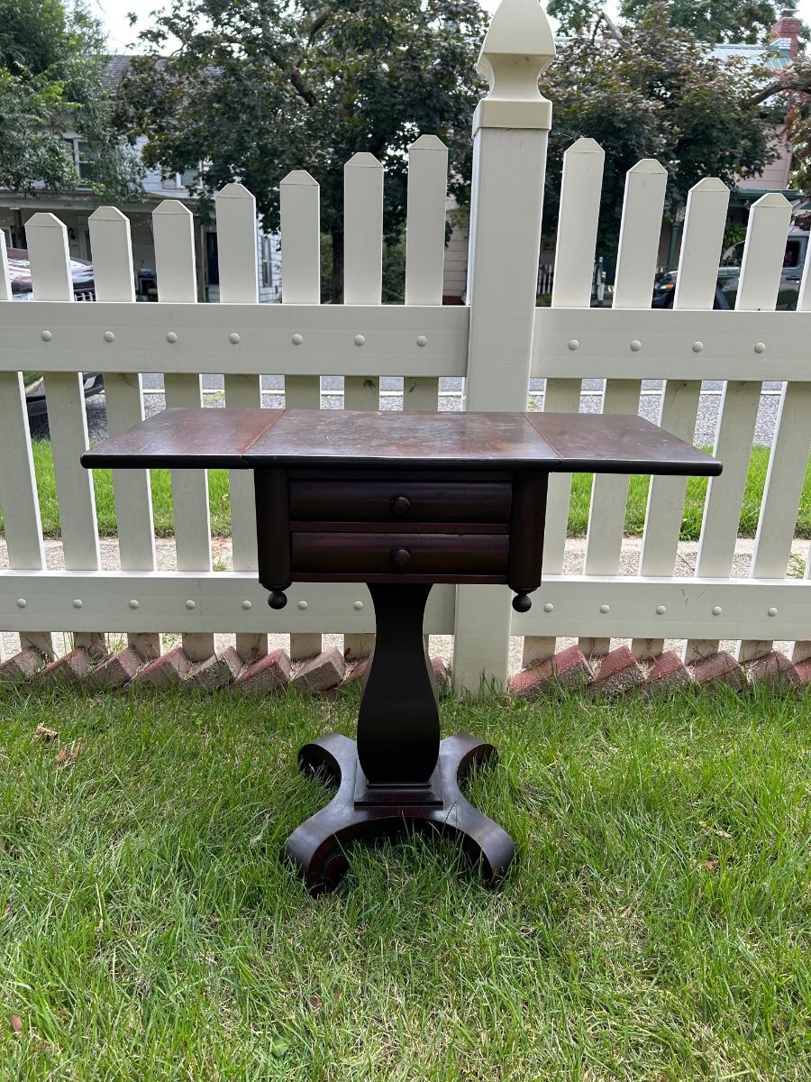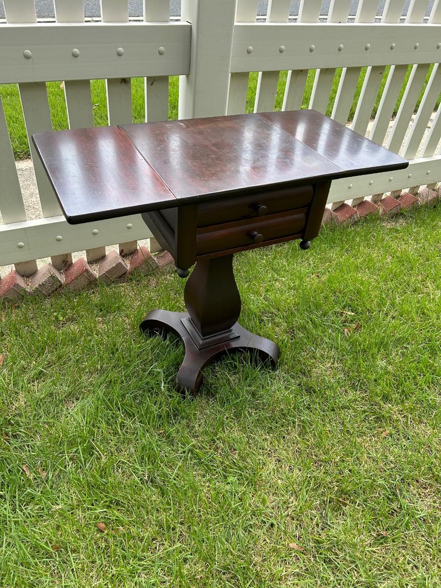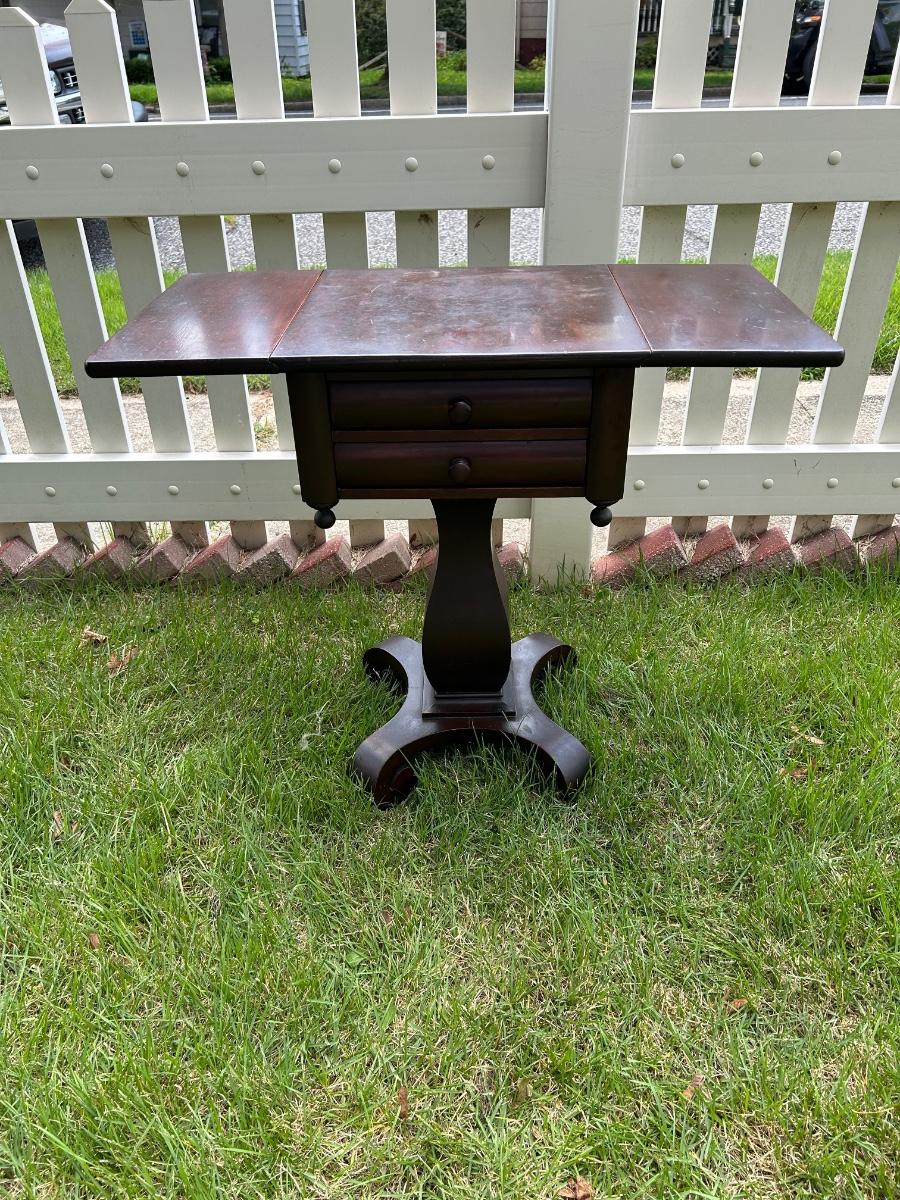 LOT 235: Vintage Pedestal Drop Leaf Side Table