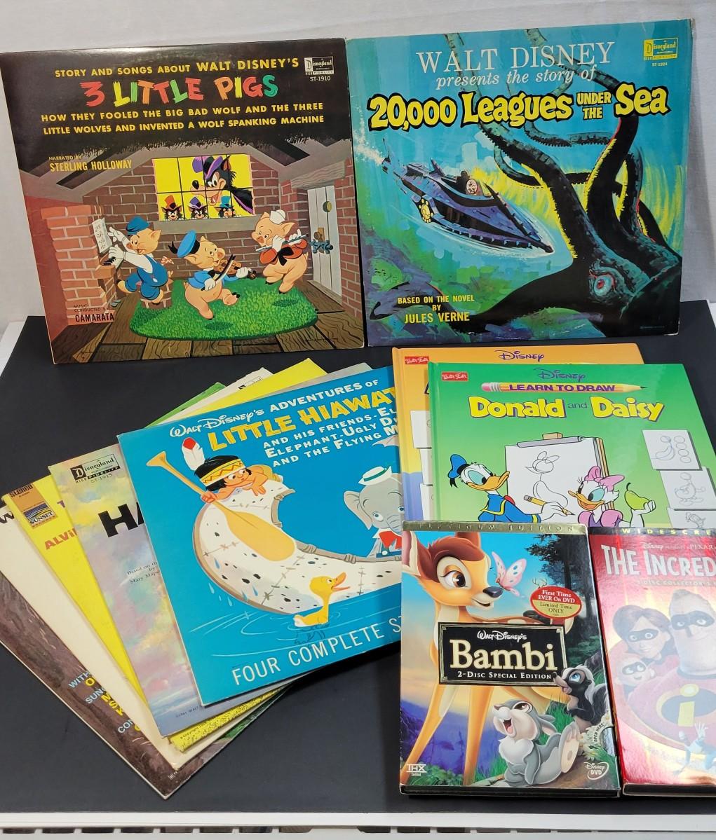 LOT 21: Vintage Disney Story Lot - Vinyl Records, Books, DVDs