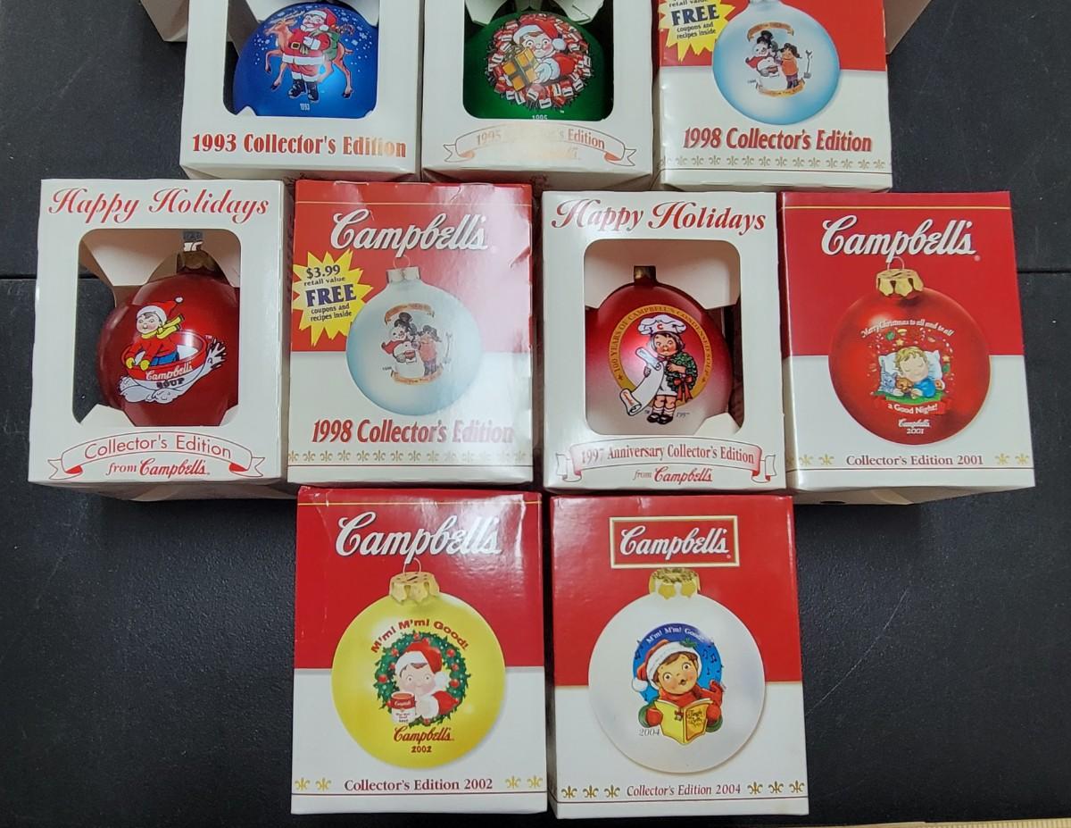 LOT 37: Campbell's Soup Christmas Ornaments and More