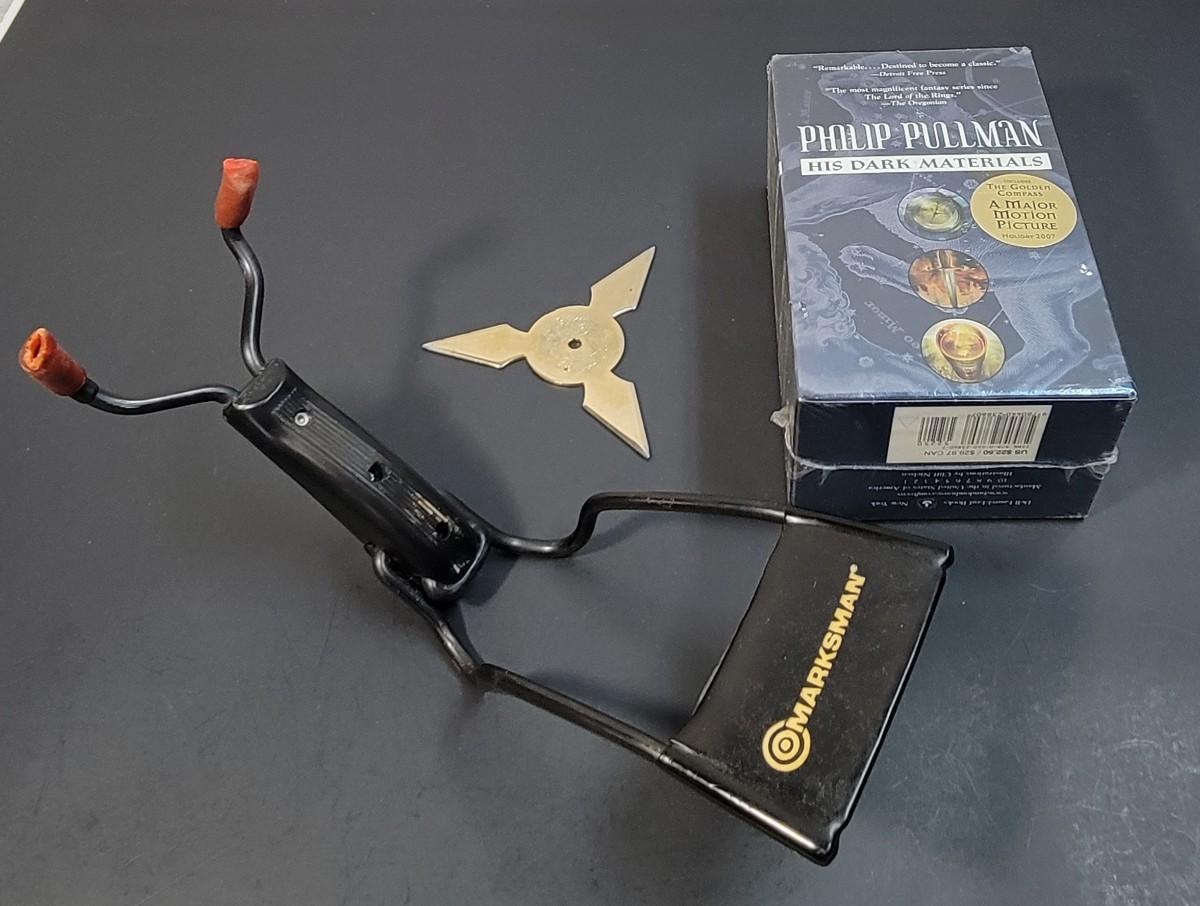 LOT 47: Peace Not War Lot - Wrist Rocket, Throwing Star & 3 Book Set