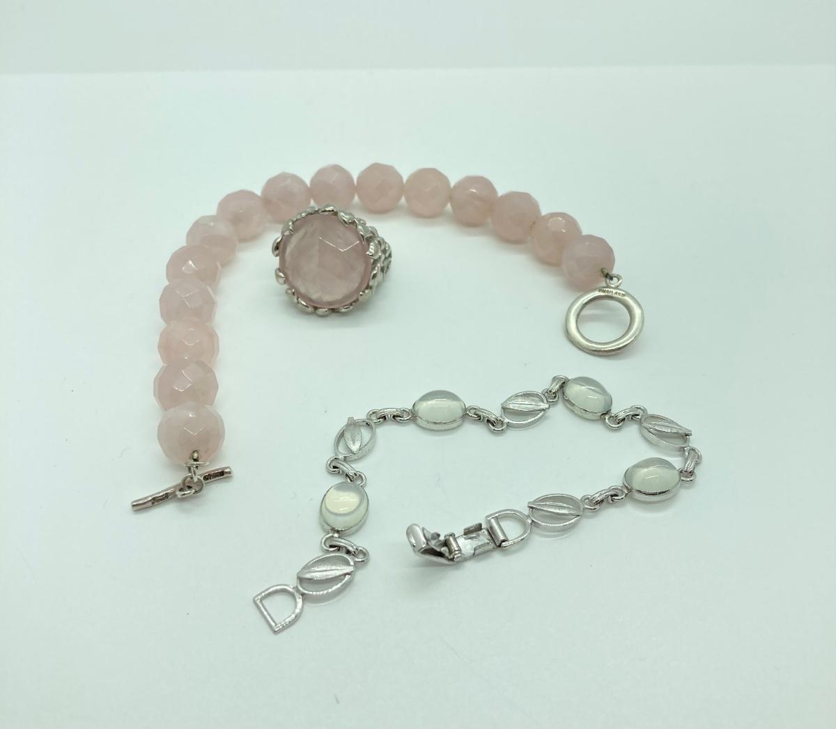 LOT 76: Sterling Jewelry - Pink Ring / Bracelet Set and Van Dell Bracelet