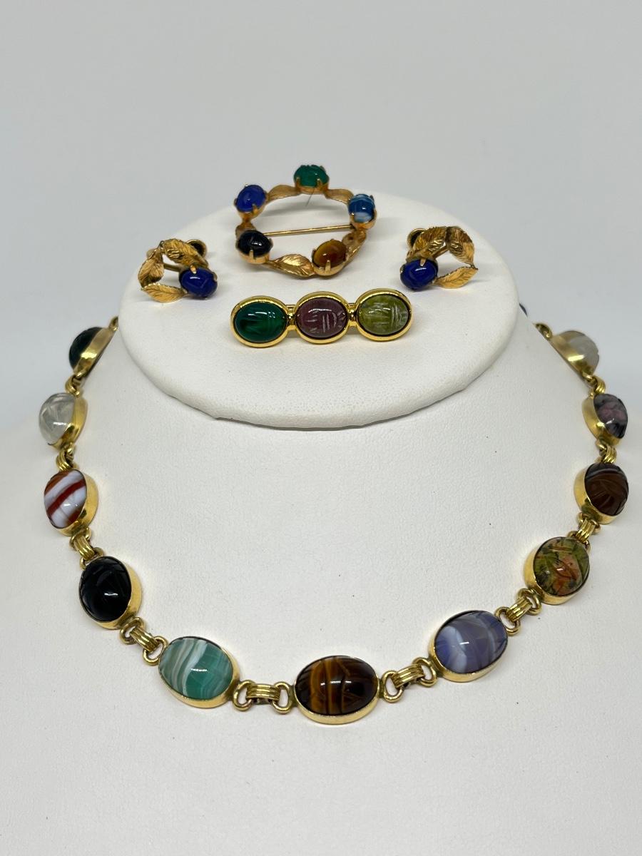 LOT 103: Scarab Jewelry - 16" 1/20th 12k Gold Fill Necklace + More