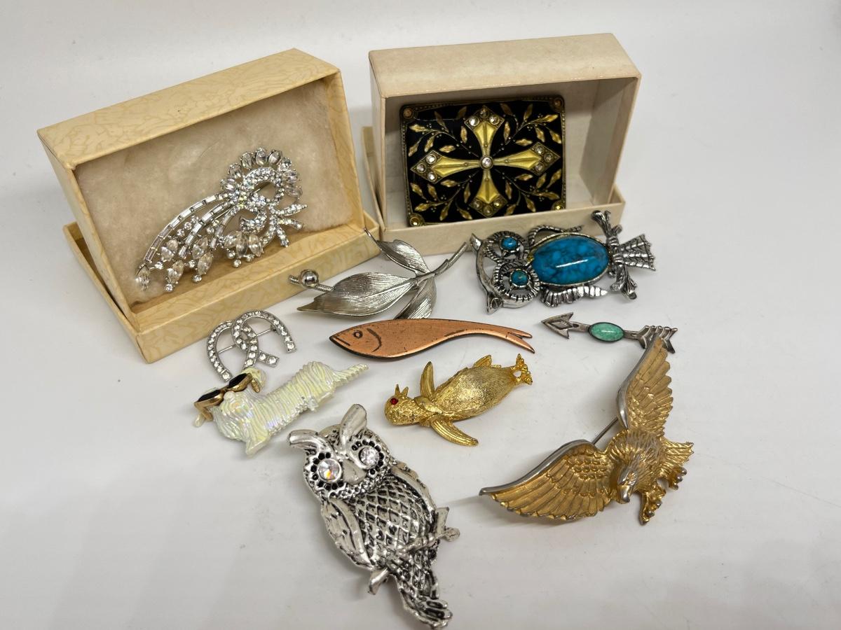 LOT 135: Collection of Pins/Brooches - Sterling Silver Horseshoes + More