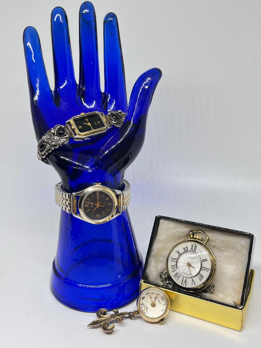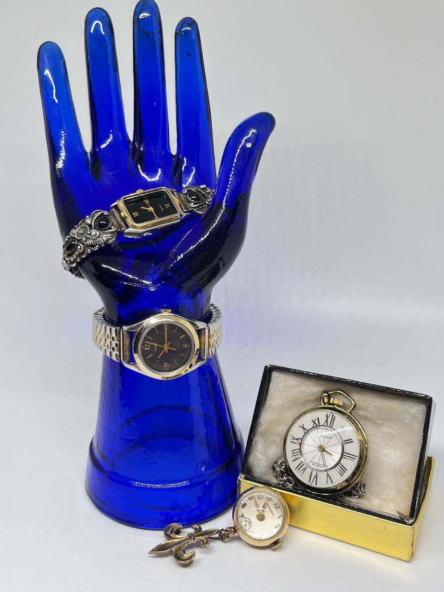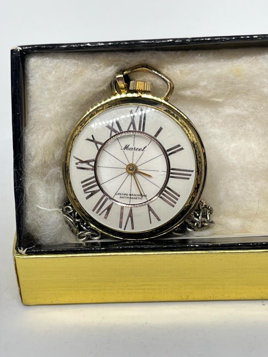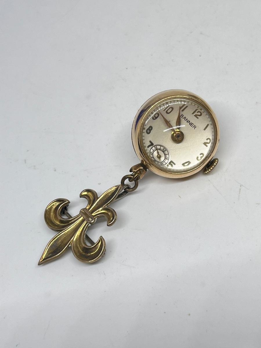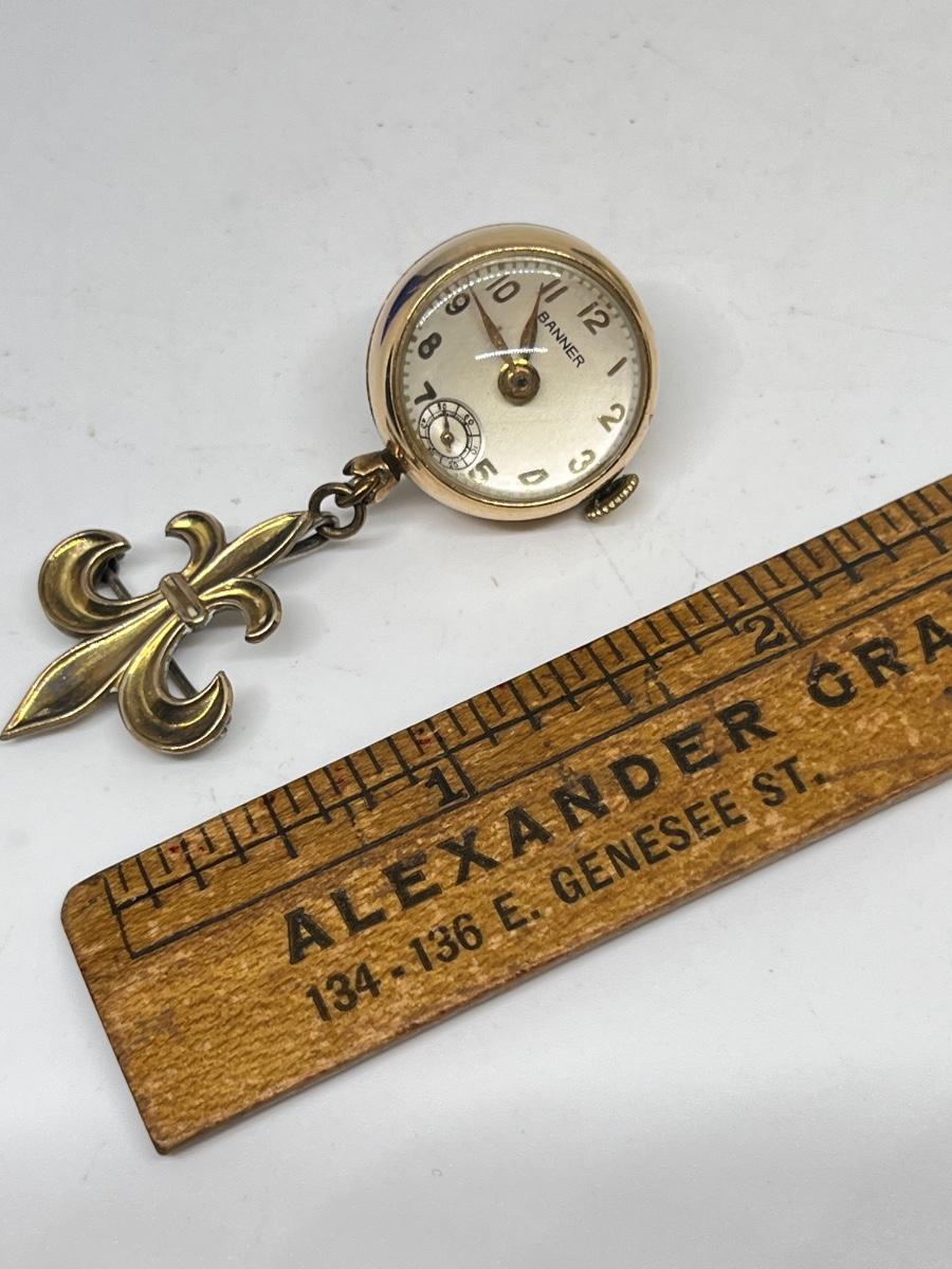 LOT 138: Vintage Banner Gold Fill Fluer de Lis Lapel Pin Wath, Marcel Watch Pendant + more
