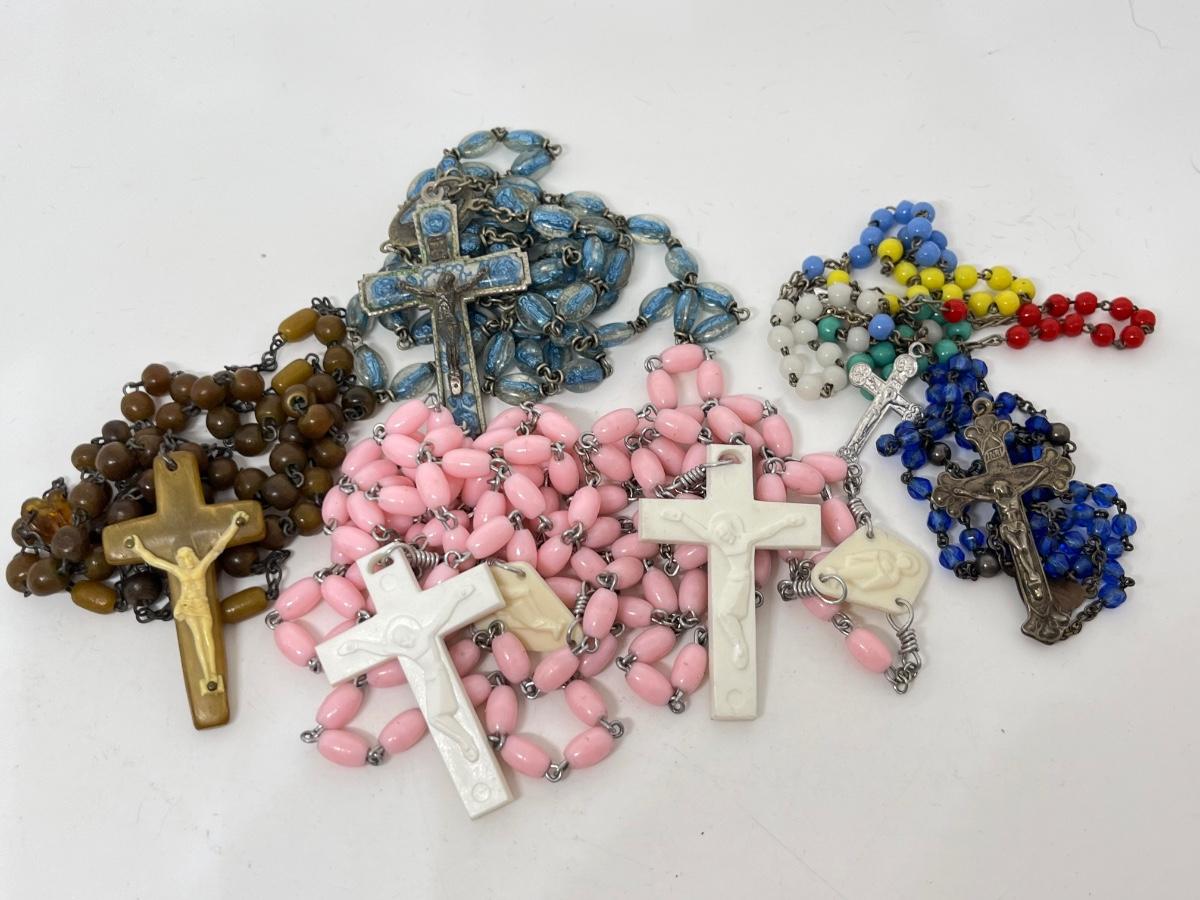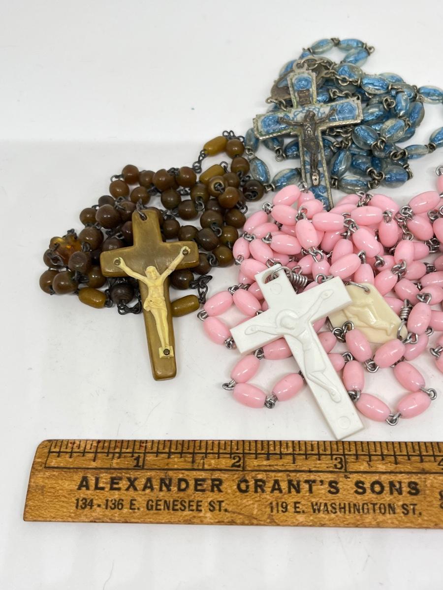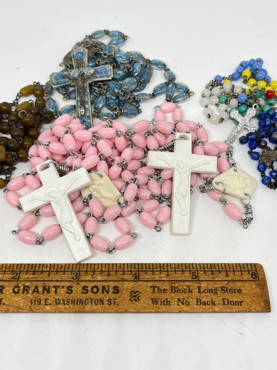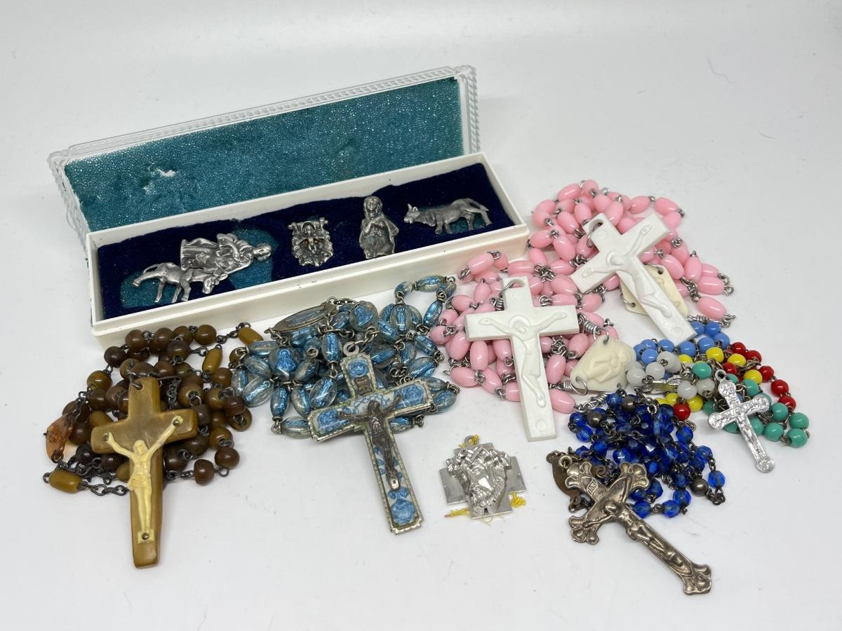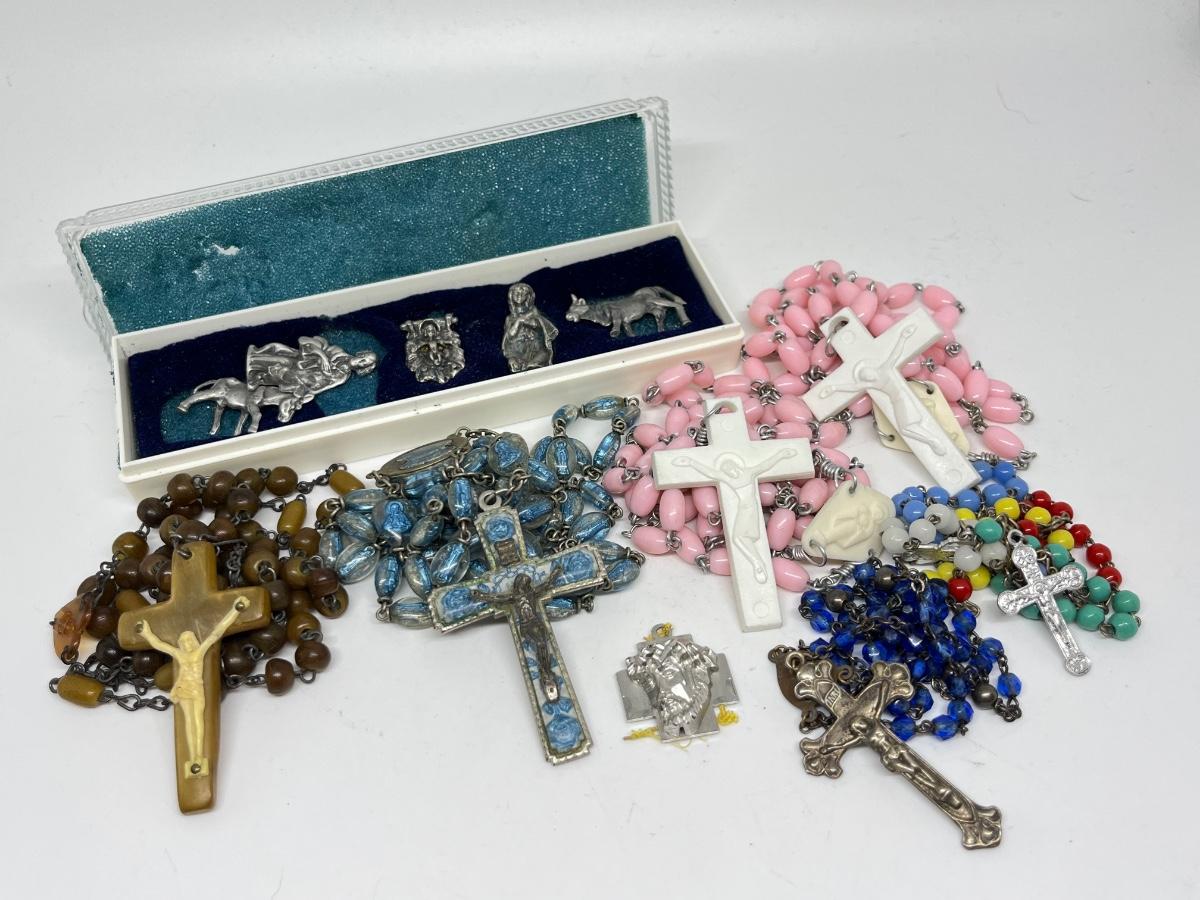 LOT 151: Religious lot - Vintage Rosary Beads , Nativity Scene + More