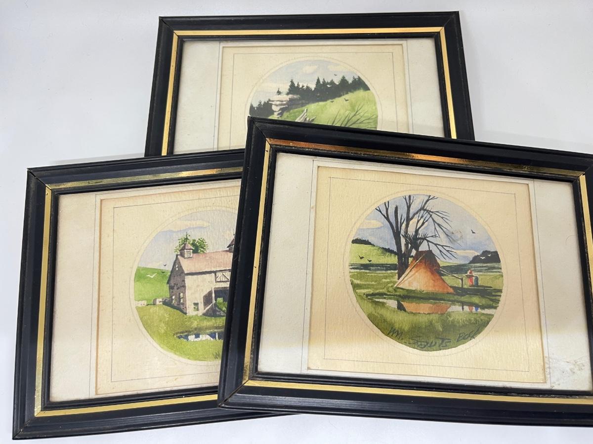 LOT 156: Three Small Paintings by Native American Artist William Sauts Netamuxwe Bock
