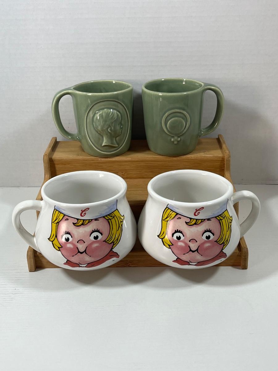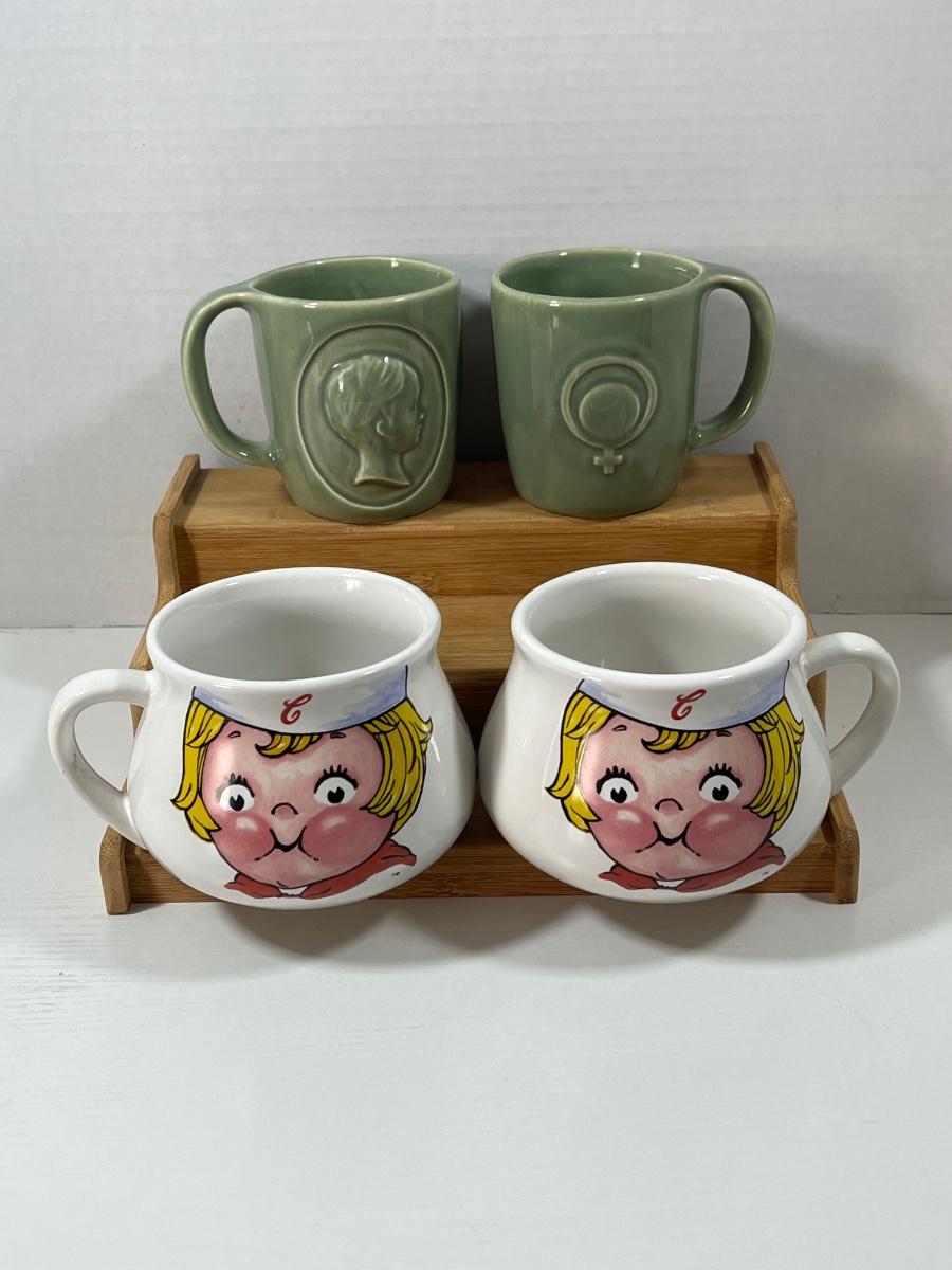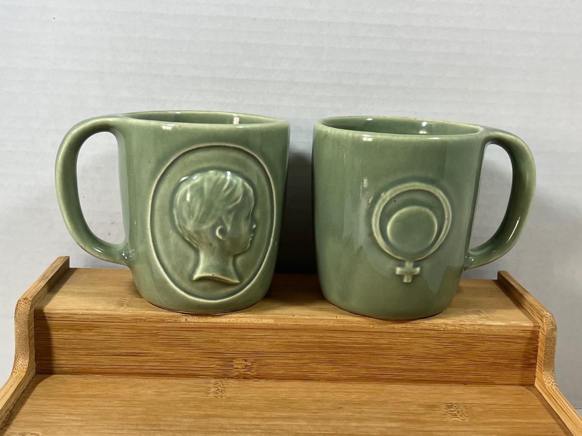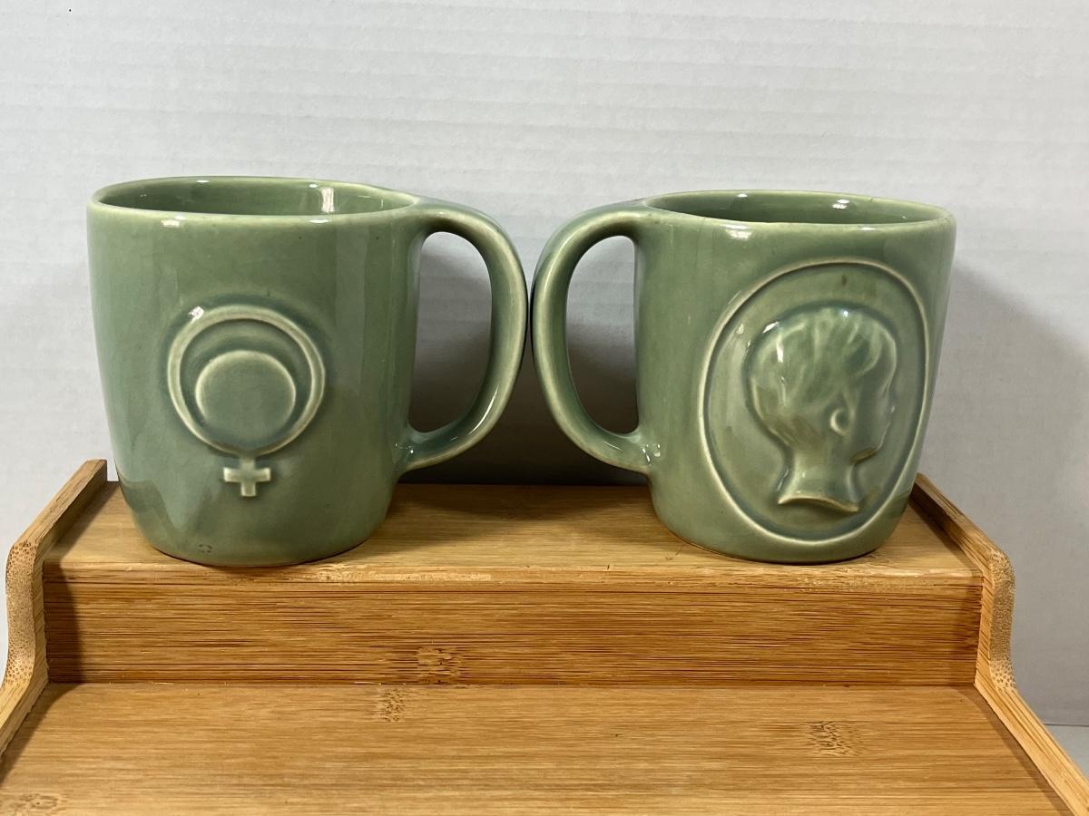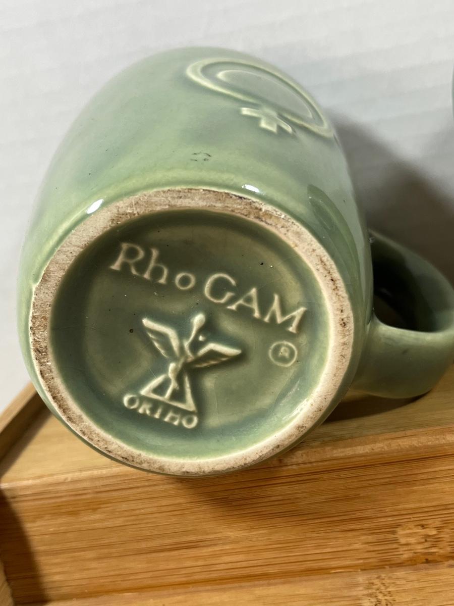 LOT 208: Campbell Soup and Sage Green McCoy Pottery RhoGam Ortho Pharmaceutial Mugs