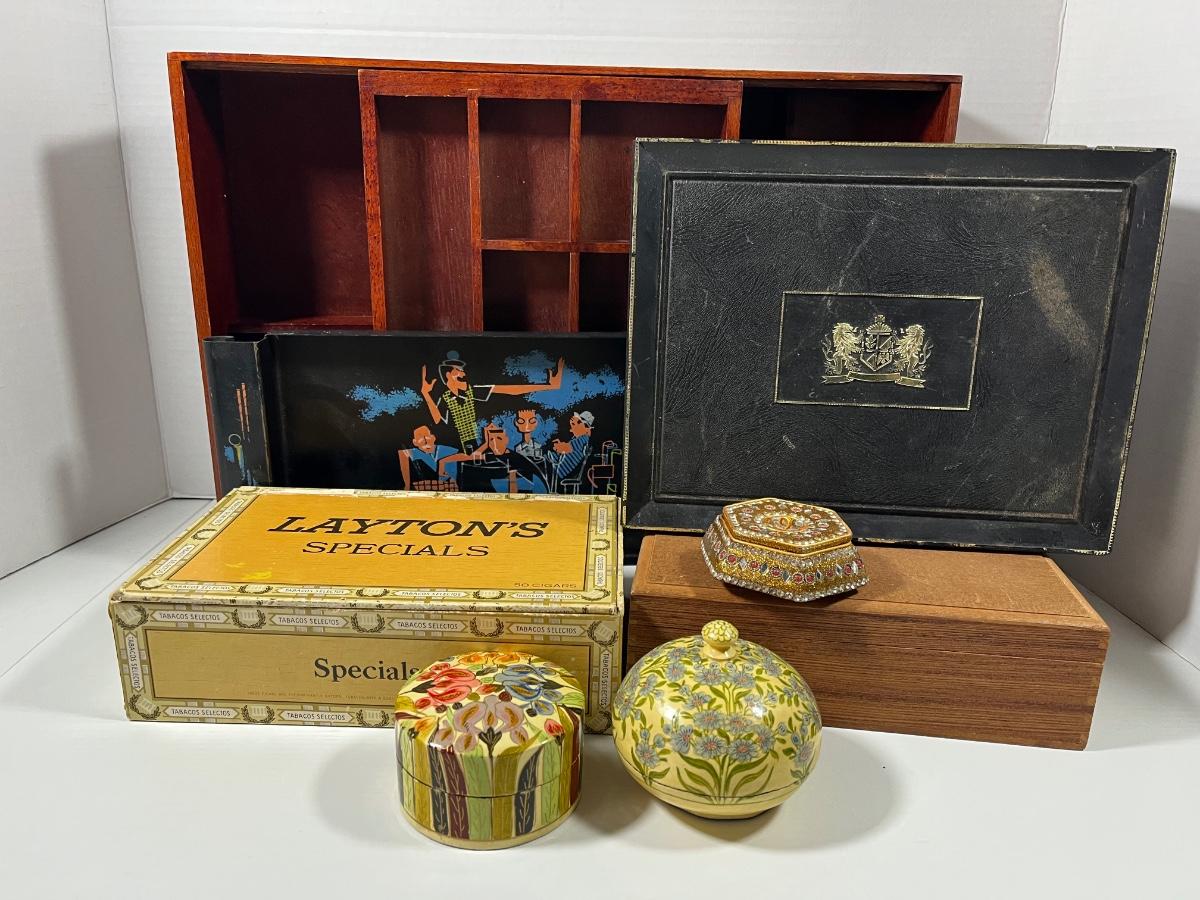 LOT 209: Vintage Trinket Dishes, Cigar Boxes and Decorative Trays