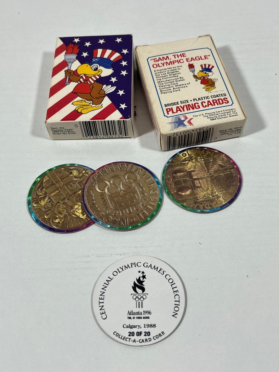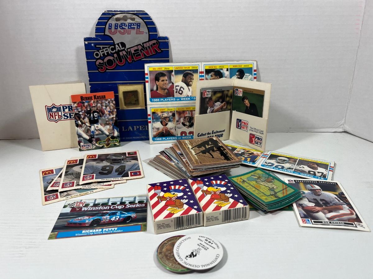 LOT 214: Mixed Sports Cards and Collectibles - Olympic Cards - Mia Hamm Rookies, Bruce Jenner, USFL Philadelphia Stars Lapel Pin & More