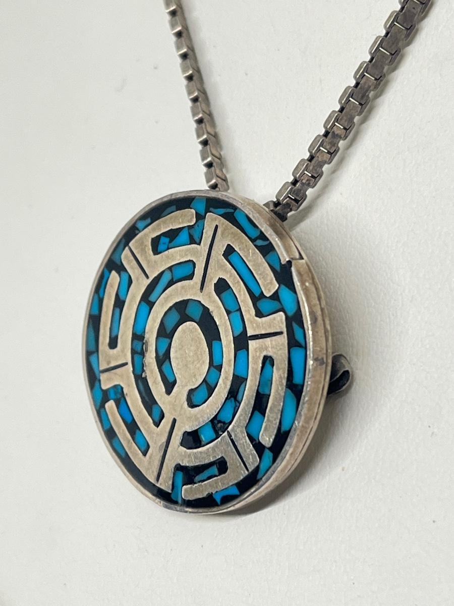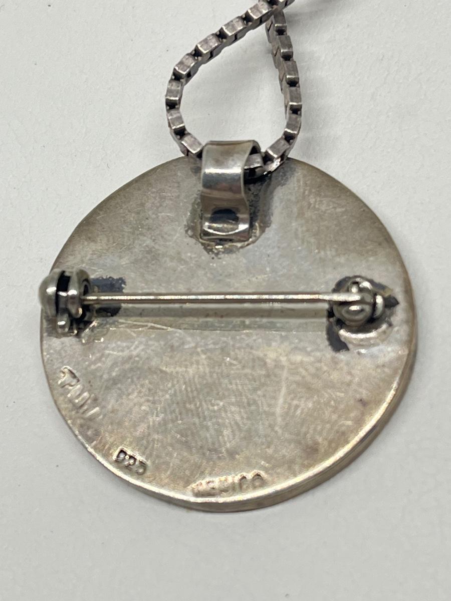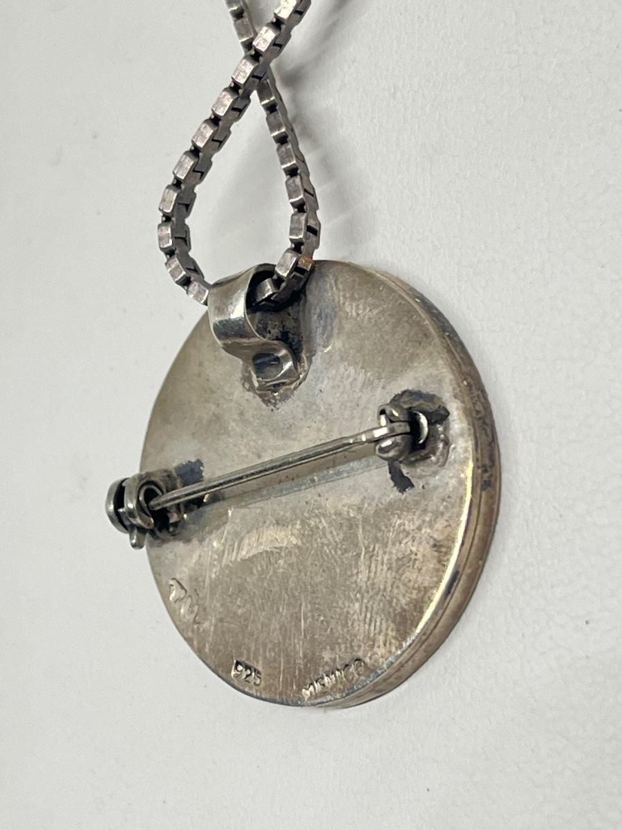 LOT 220: Sterling Silver Pendant / Brooch / Pin - 925 Mexico on !8" 925 Italy Chain - 26.4 gtw