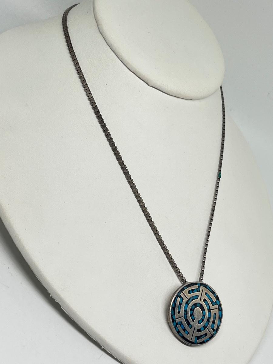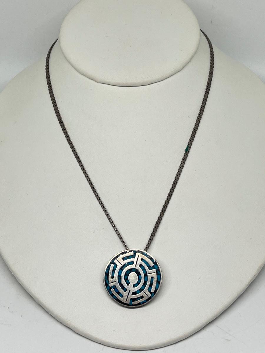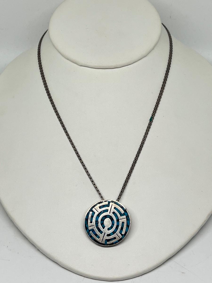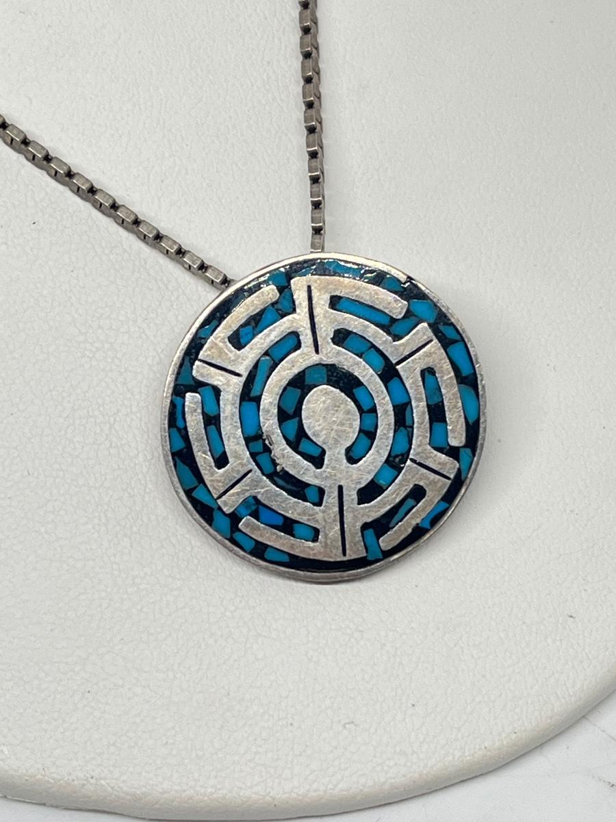 LOT 220: Sterling Silver Pendant / Brooch / Pin - 925 Mexico on !8" 925 Italy Chain - 26.4 gtw