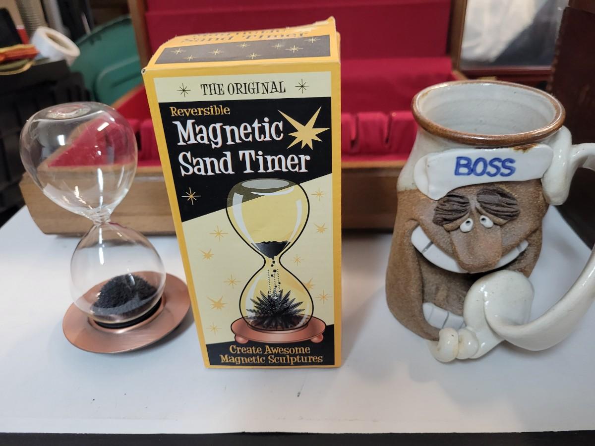 LOT 256: Vintage Scale, Magnetic Sand Timer - Decorative Boxes