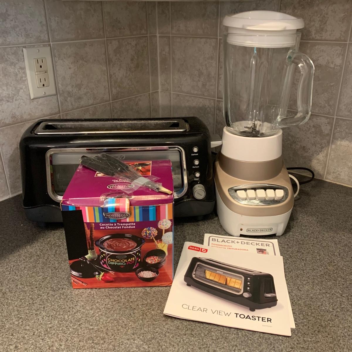 LOT 39R: Nostalgia Chocolate Dipping Pot, Black & Decker Blender, Dash Clearview Toaster