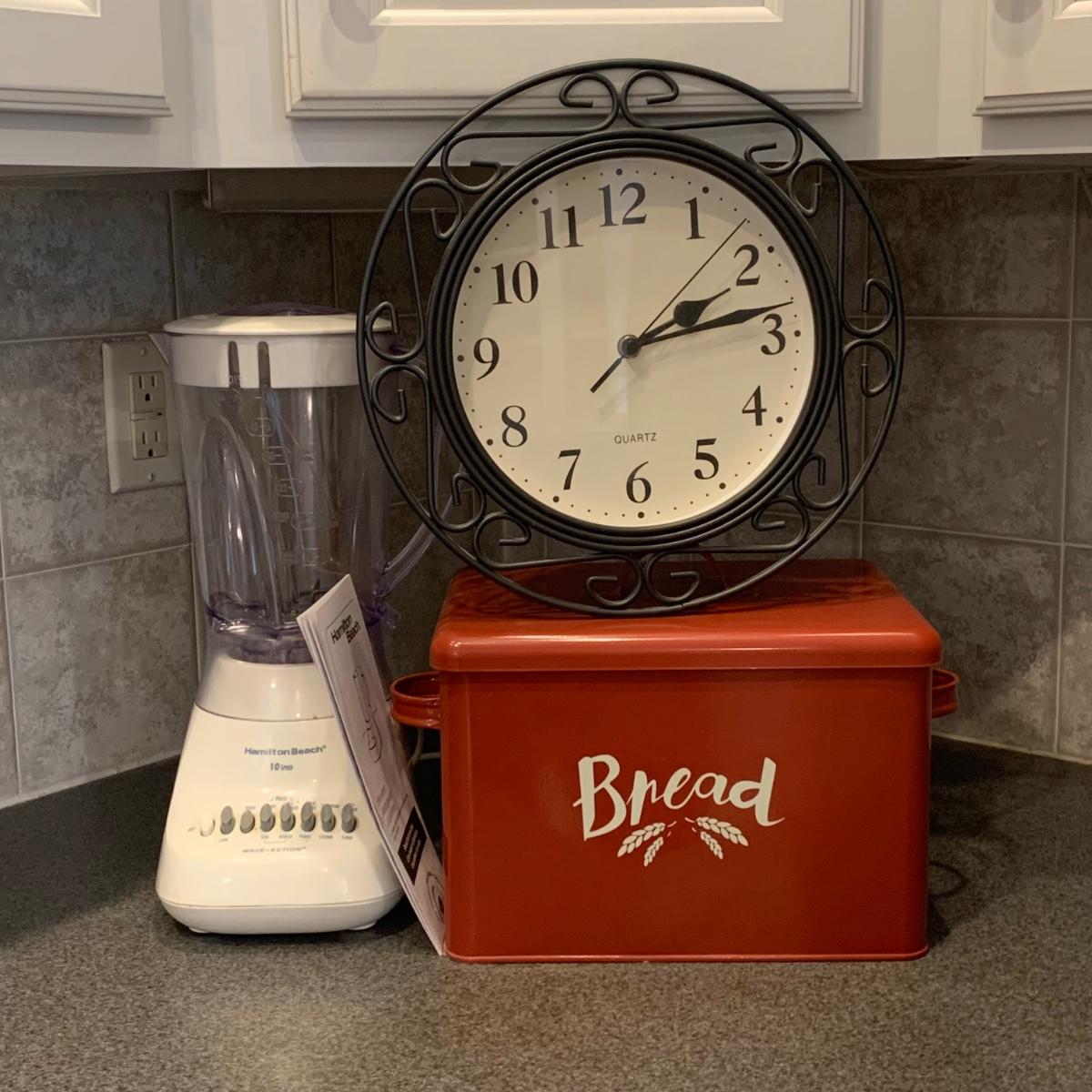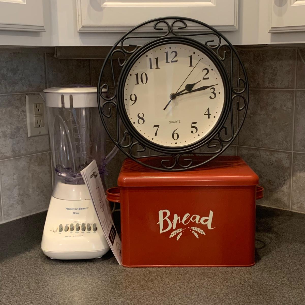 LOT 40R: Metal Bread Box, Clock & Balck & Decker Blender