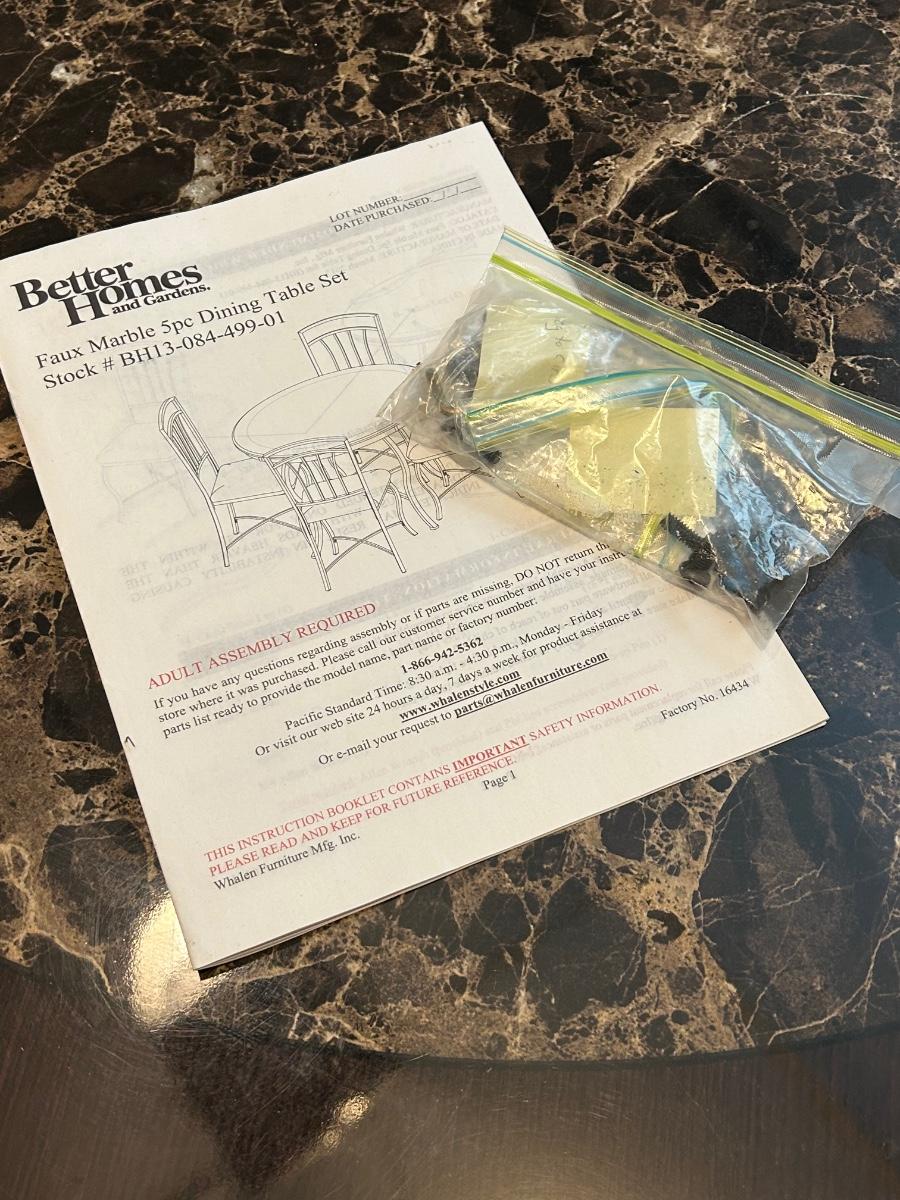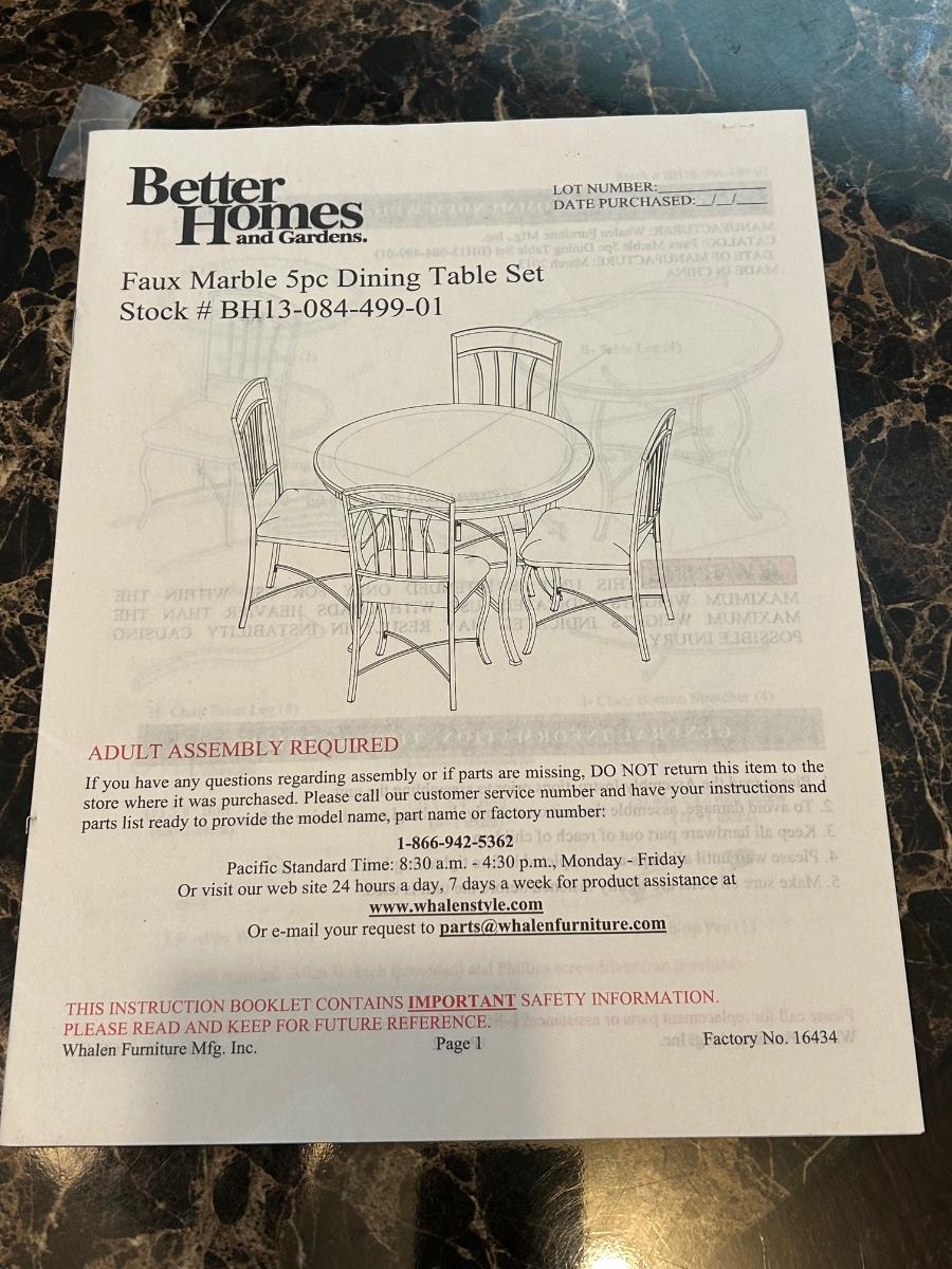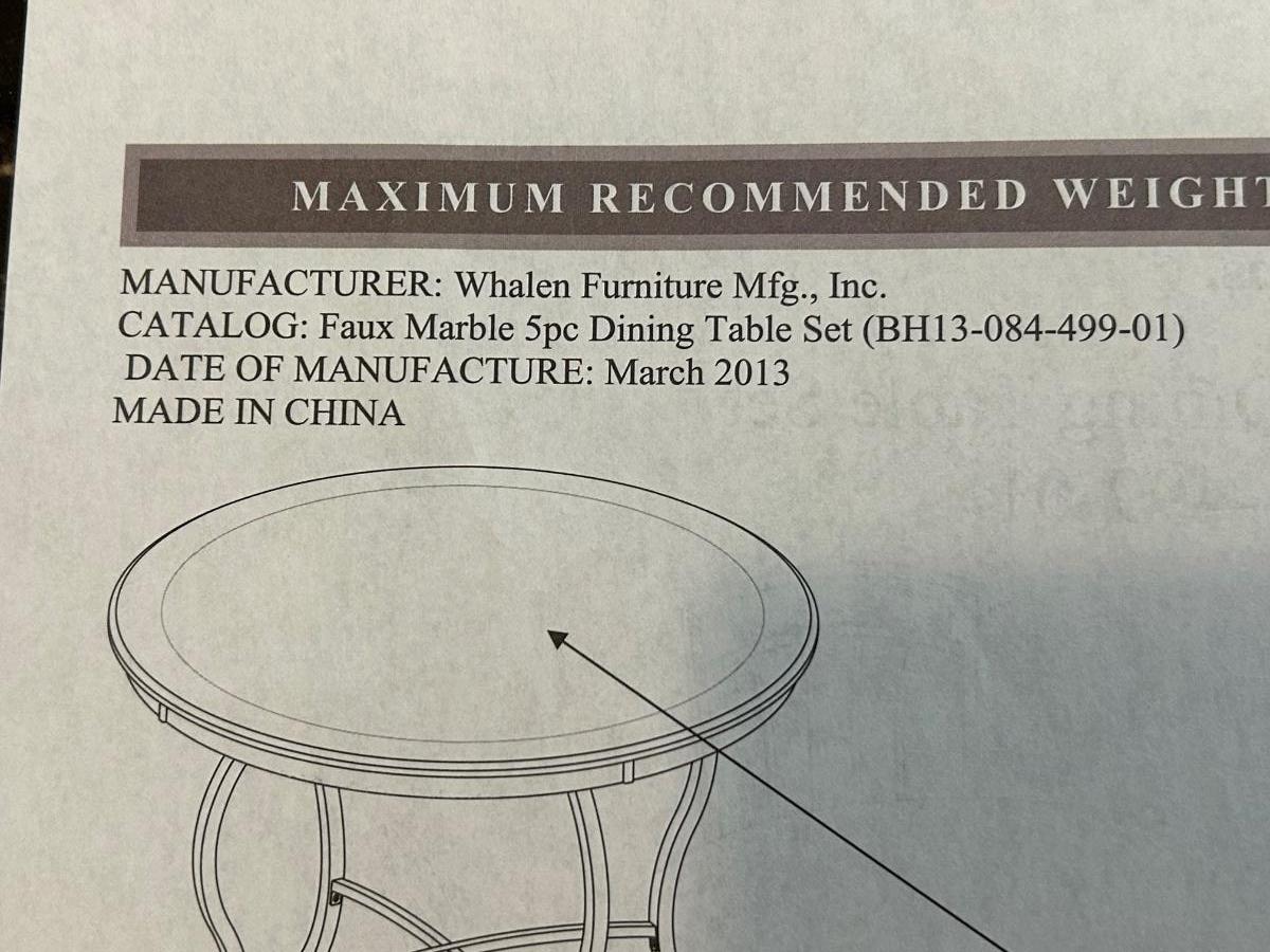 LOT 117C: Better Homes & Garden Faux Marble Top 5-pc Dining Set