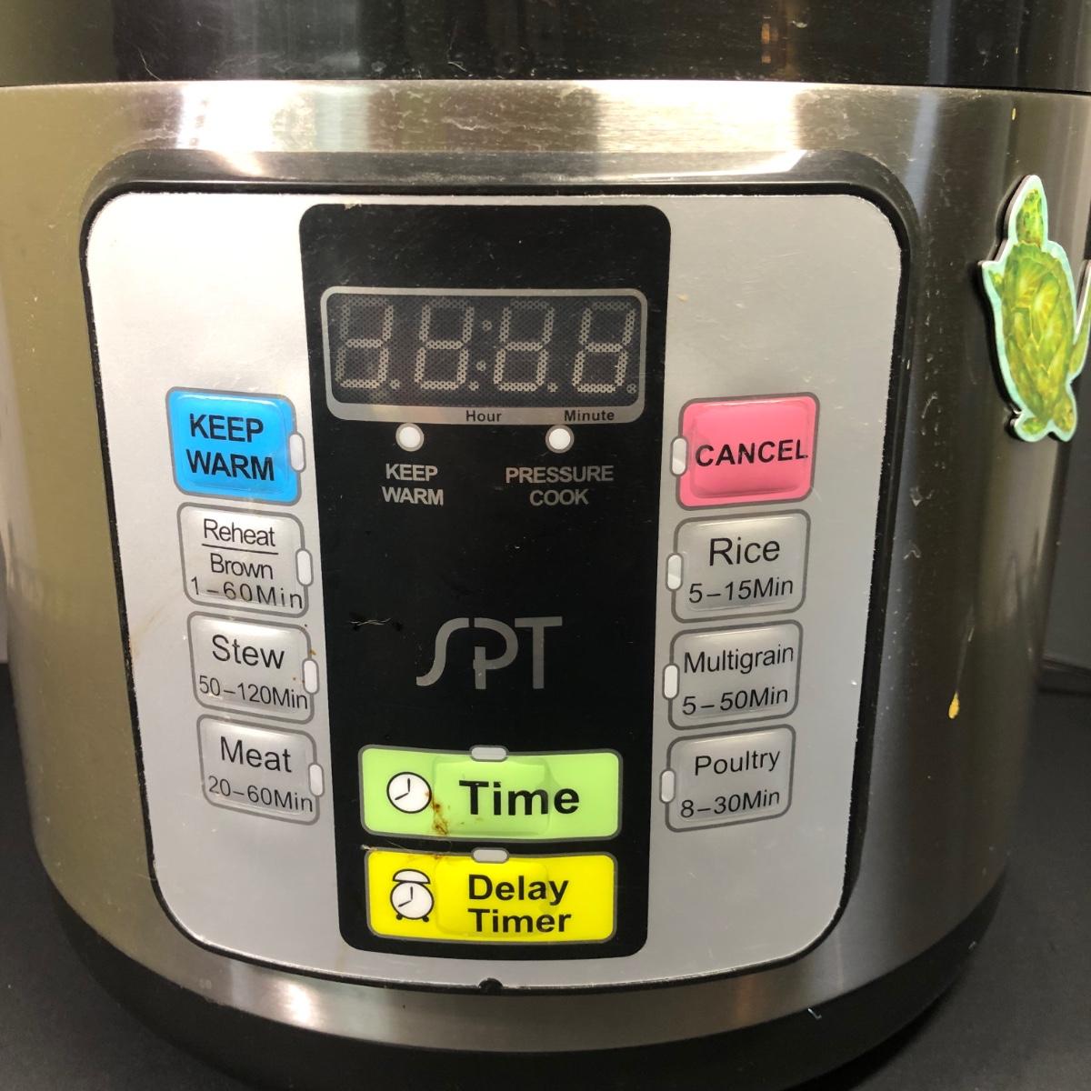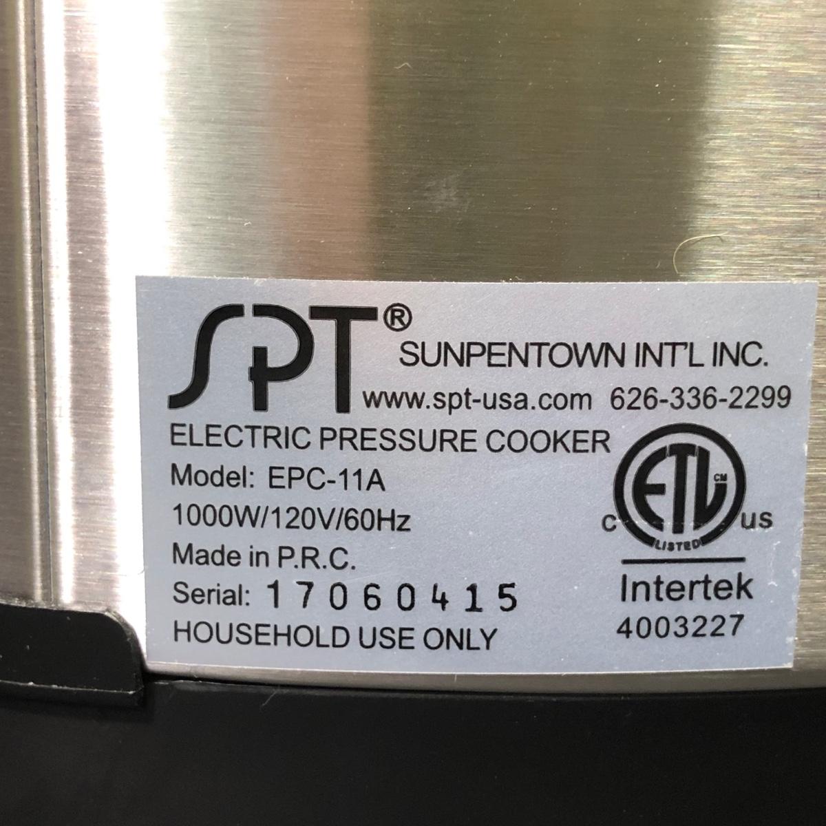 LOT 79M: SPT 6.5-Quart Electric Pressure Cooker Model EPC 11-A & 2 Terra Cotta/Wood Trivets