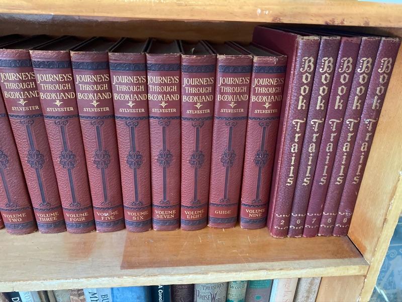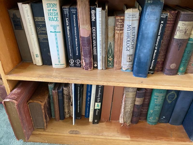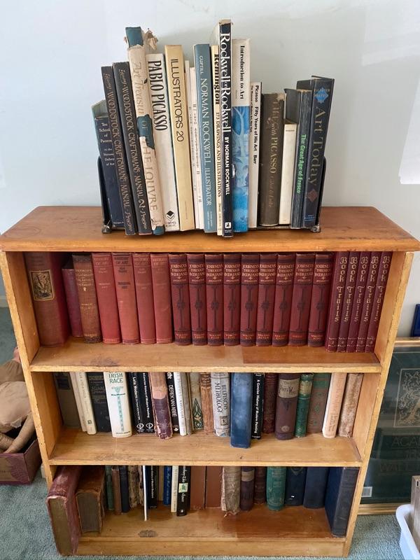 Bookshelf with books measures 31” wide x 9.5” deep x 35” tall