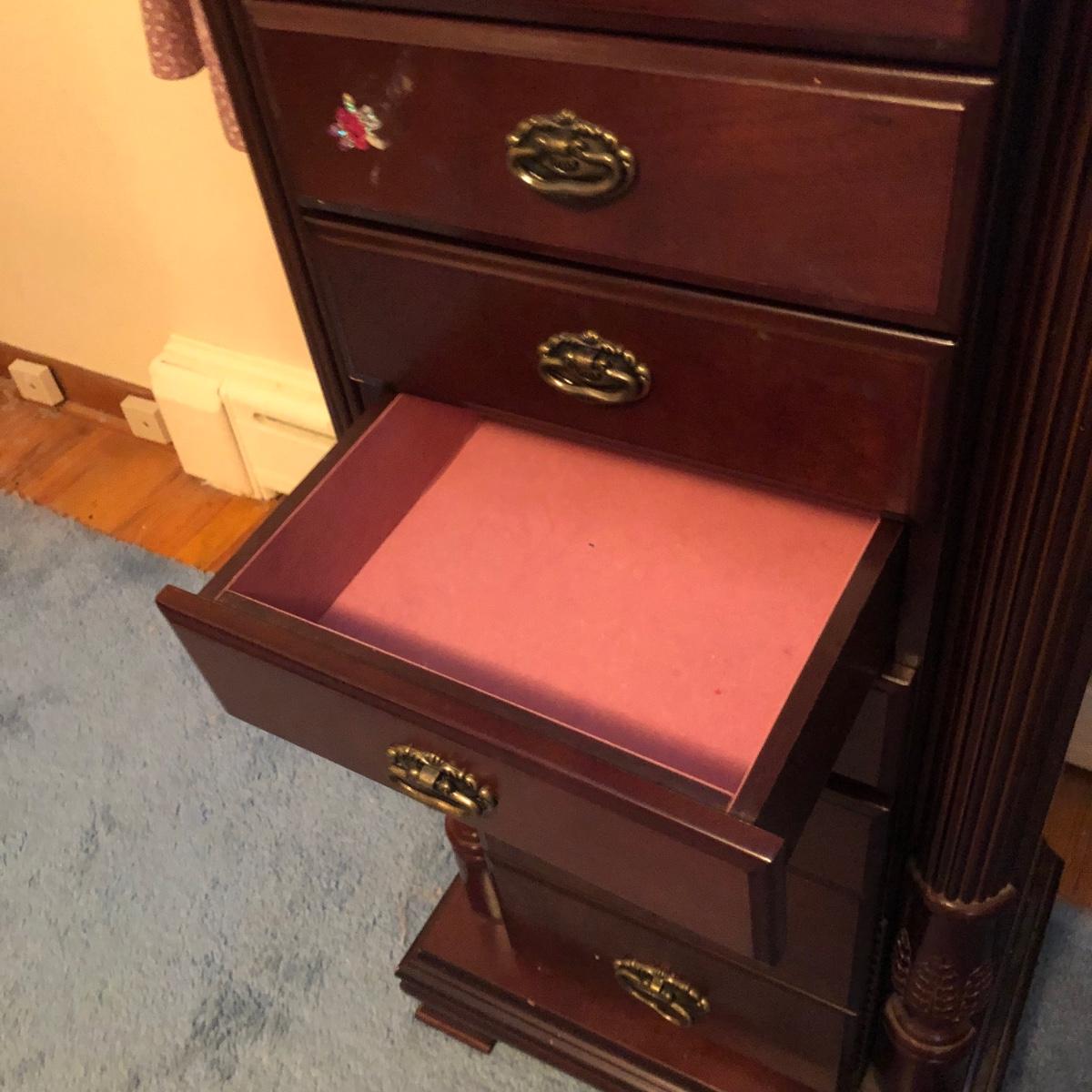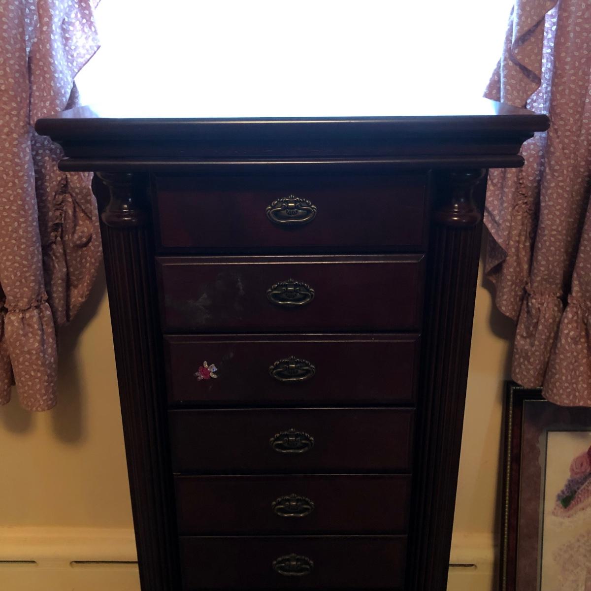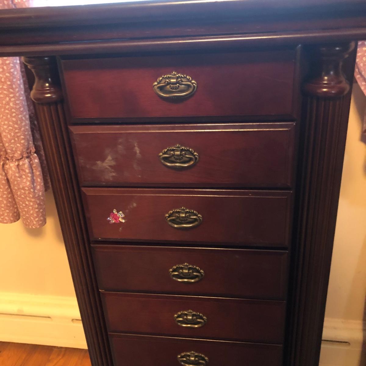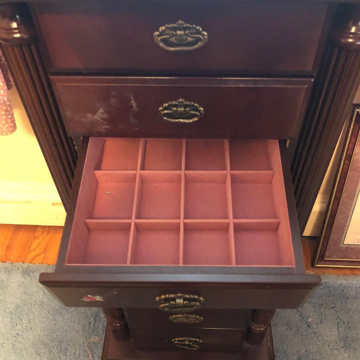 Jewelry case has some condition issues and measures 18 x 12.5 x 48 inches.