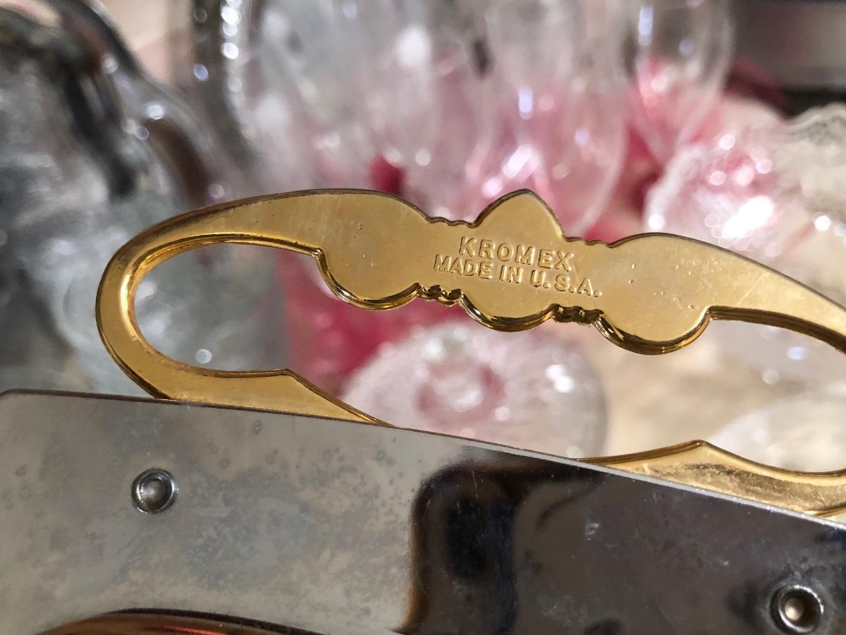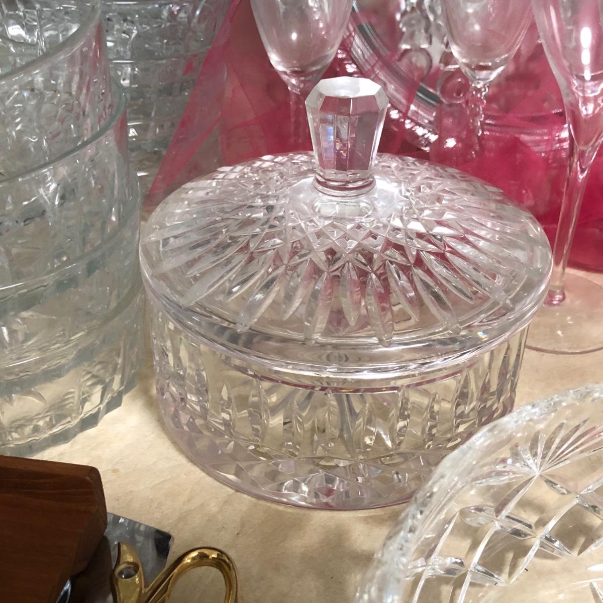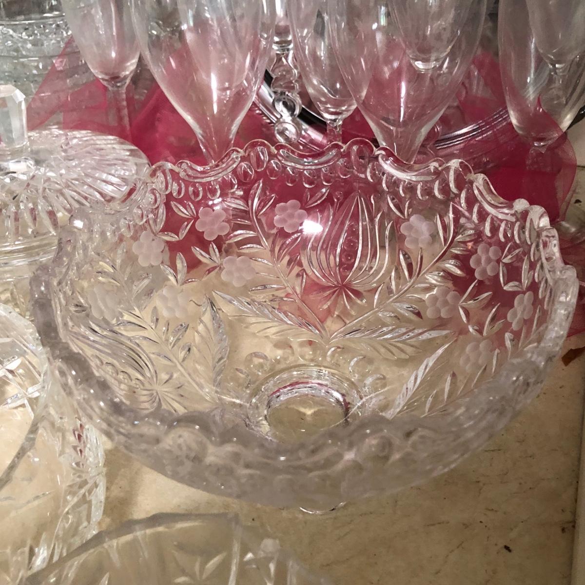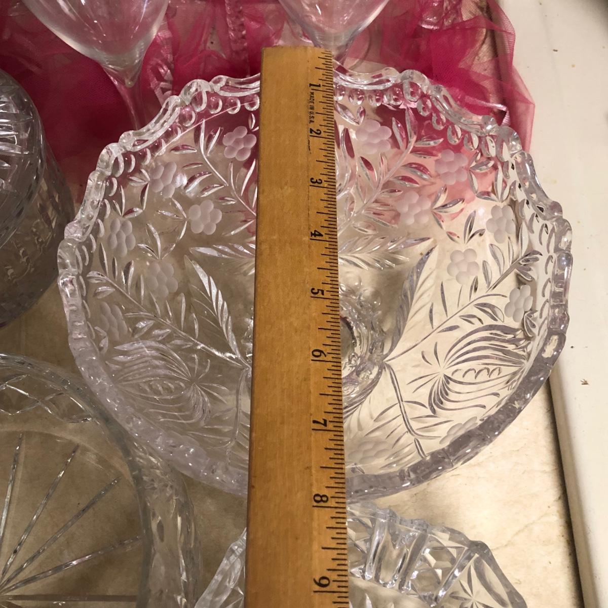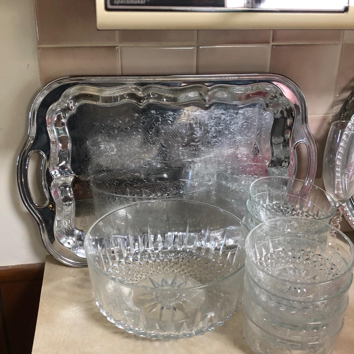 LOT 7M: Barlow Knife, Kalman Designs Teakwood Cracker Tray, Crystal, Tulle Stemware, Platters & More