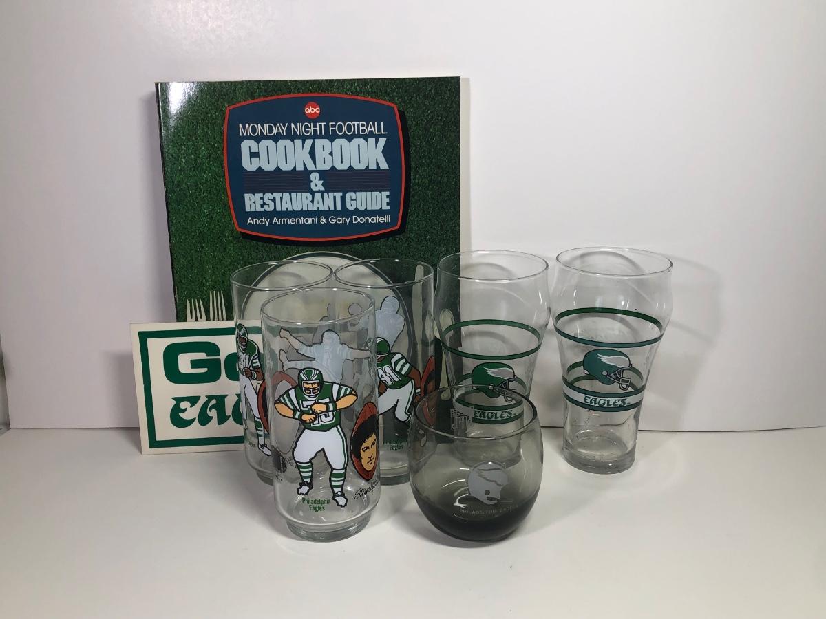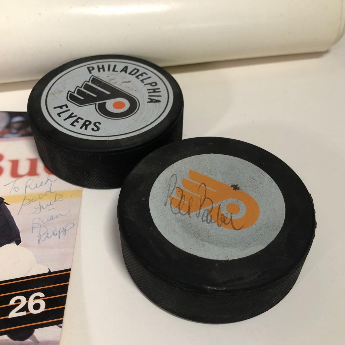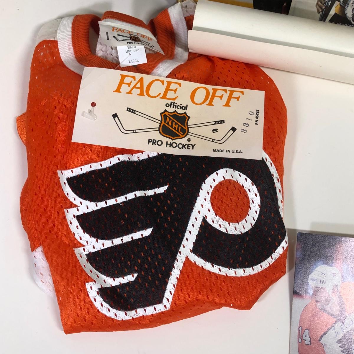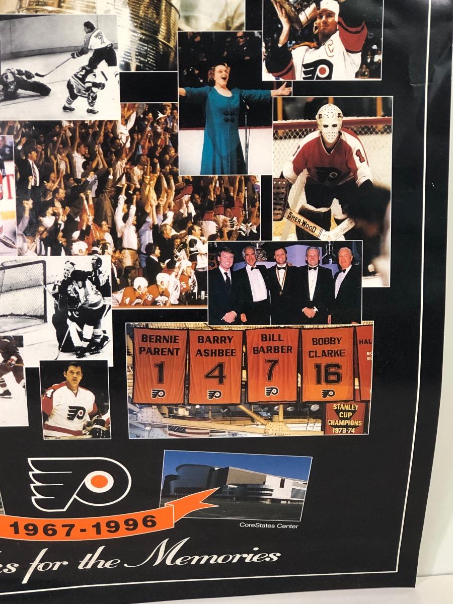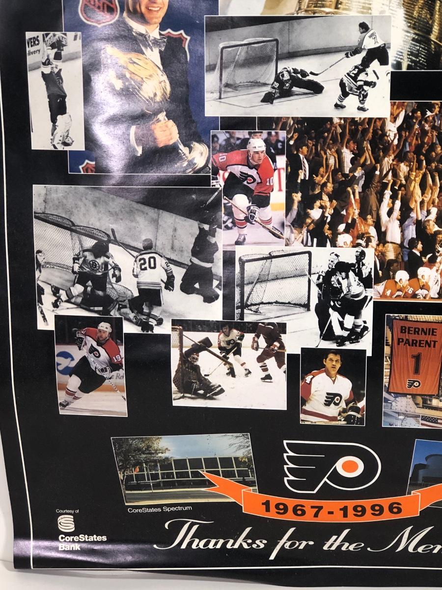 LOT 17M: Philly Sports Collection - Flyers Posters, Child's Jersey, Hockey Pucks & More / Eagles Glasses, Buttons & More