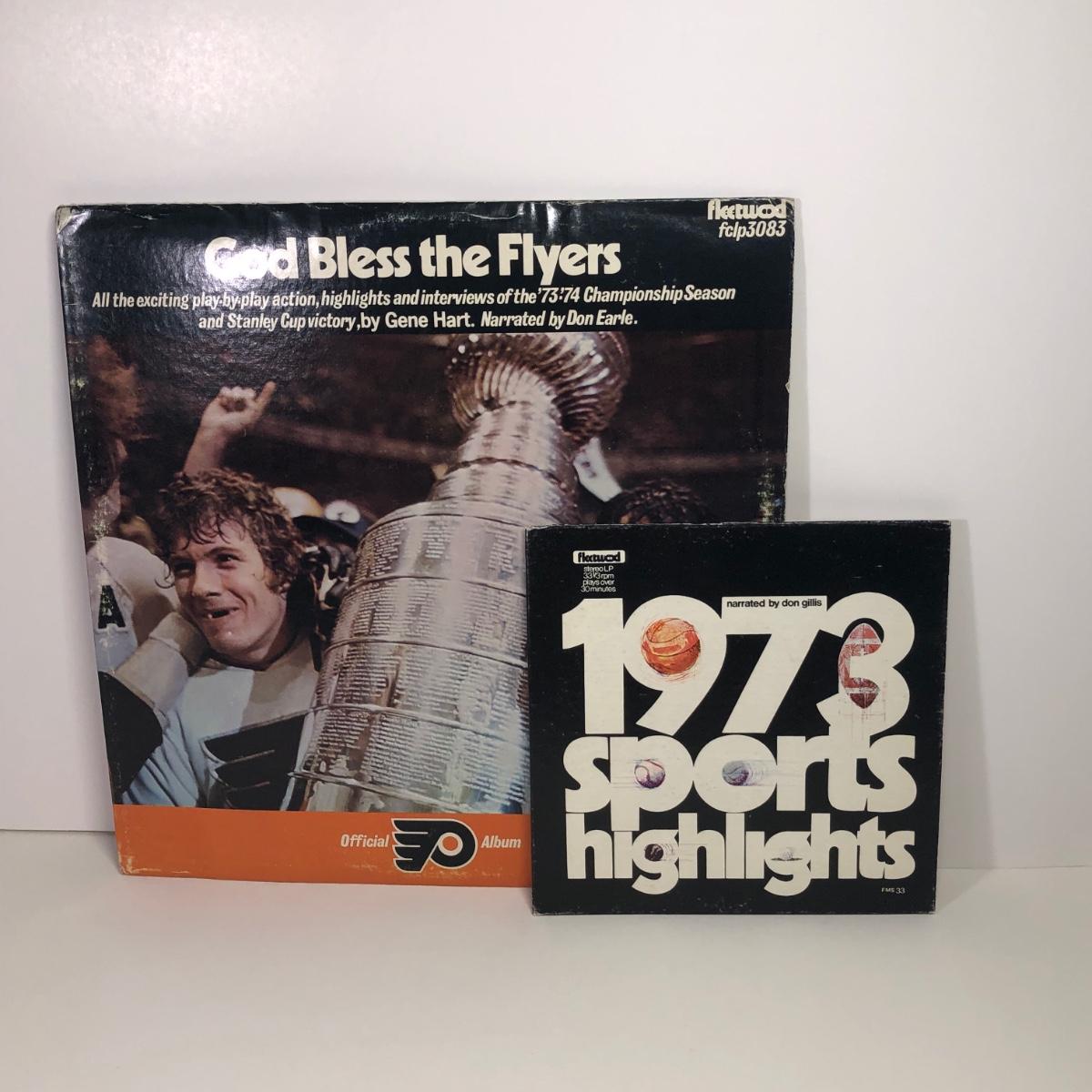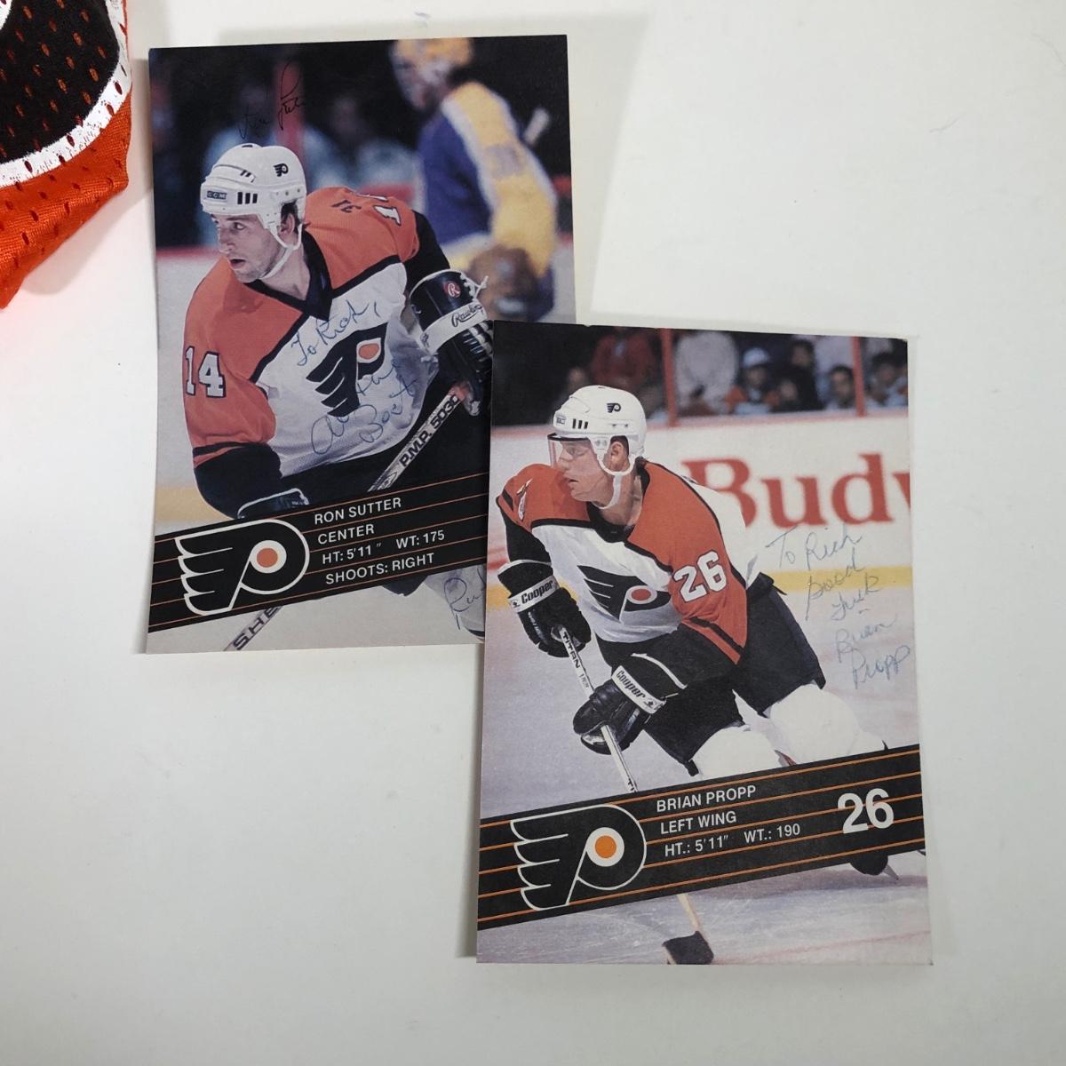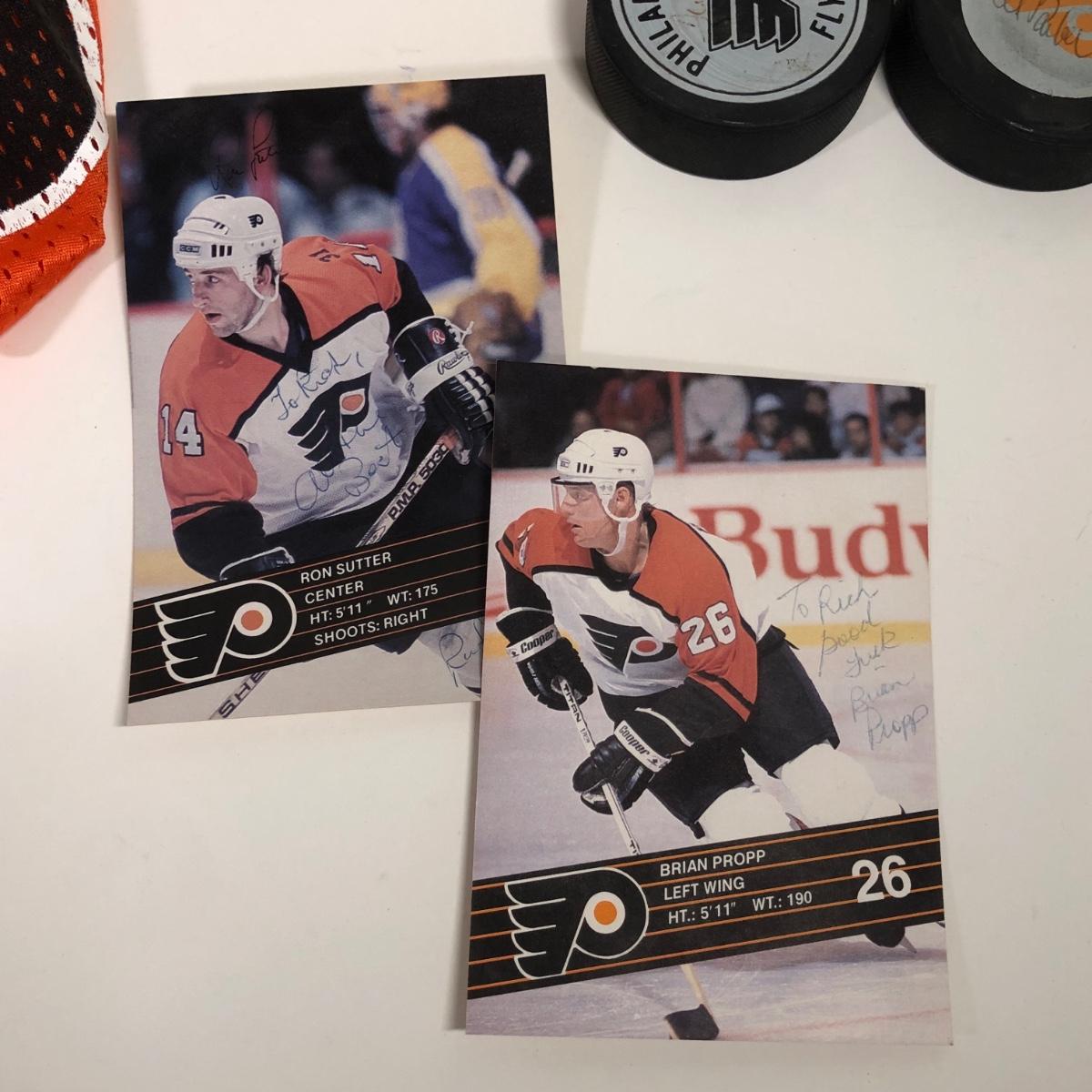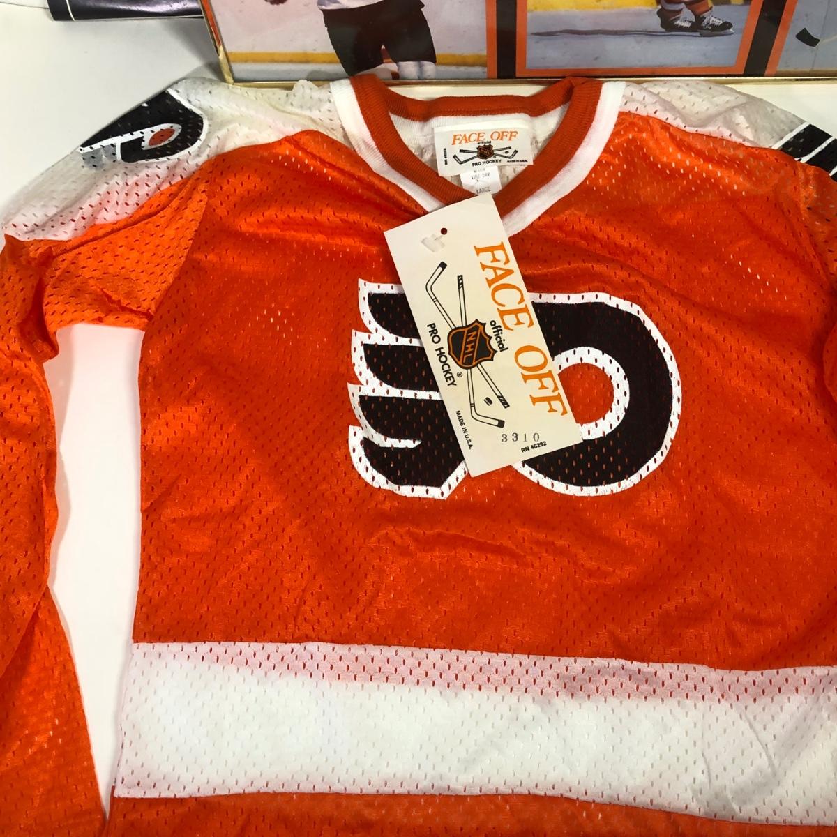 LOT 17M: Philly Sports Collection - Flyers Posters, Child's Jersey, Hockey Pucks & More / Eagles Glasses, Buttons & More