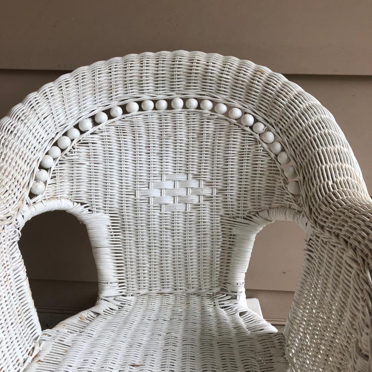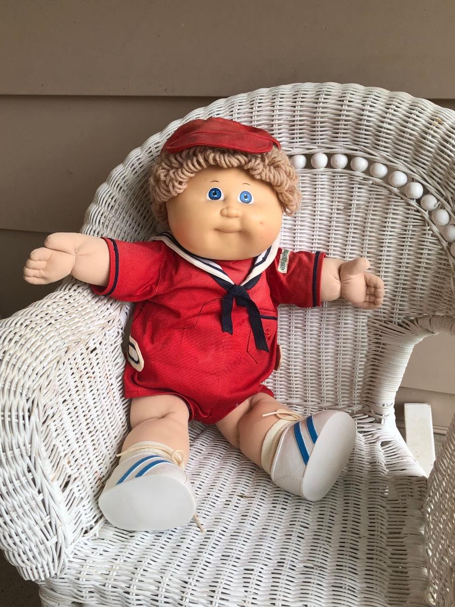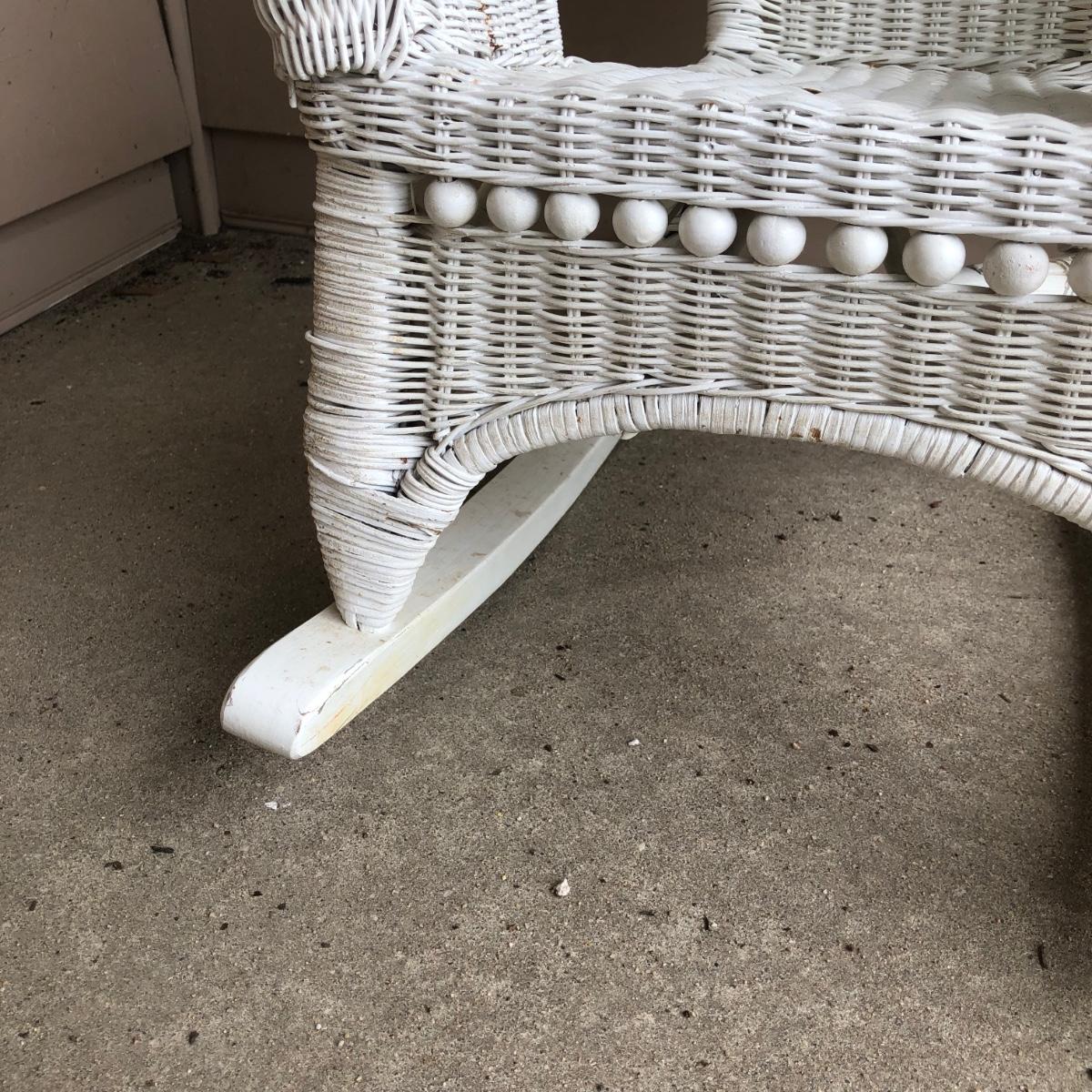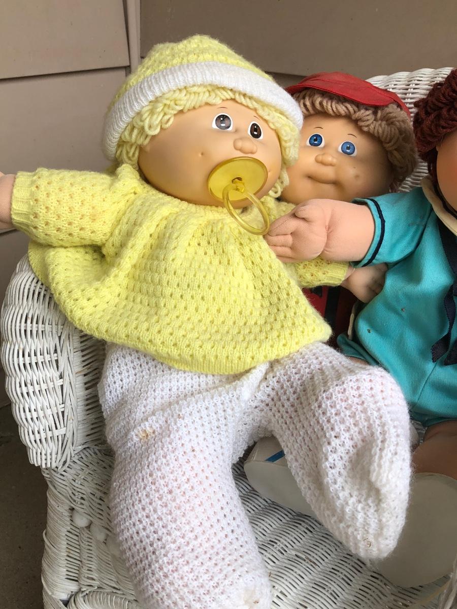 LOT 22M: Child's Wicker Rocking Chair & Four Cabbage Patch Kids Dolls