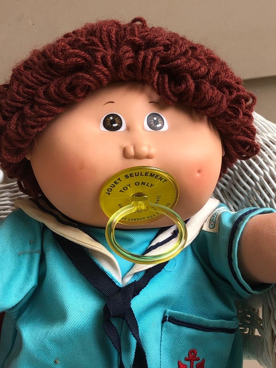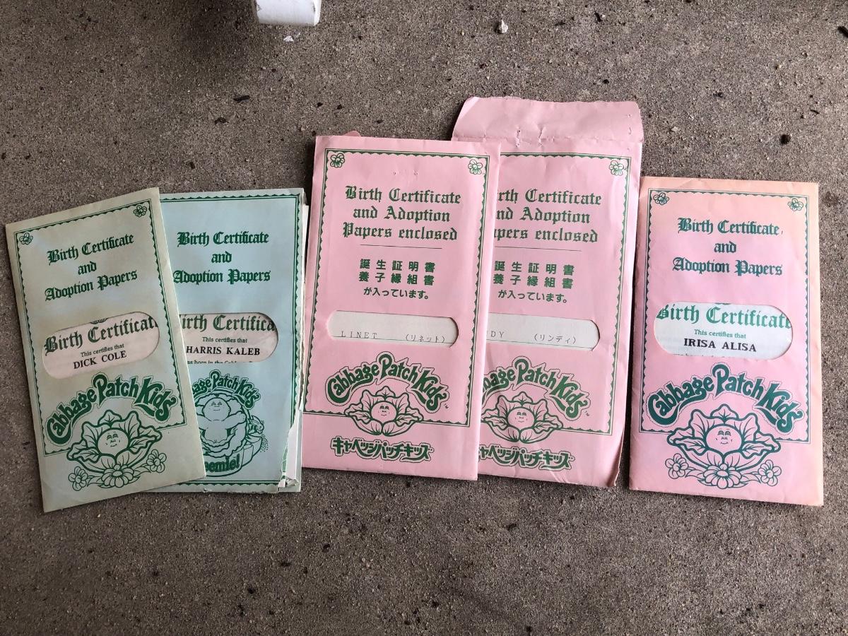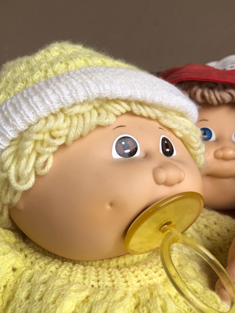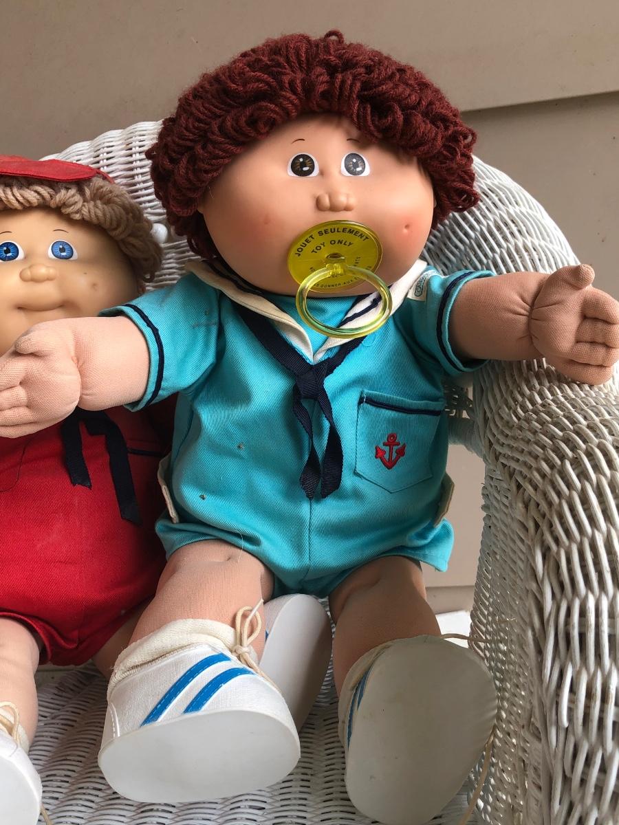 LOT 22M: Child's Wicker Rocking Chair & Four Cabbage Patch Kids Dolls