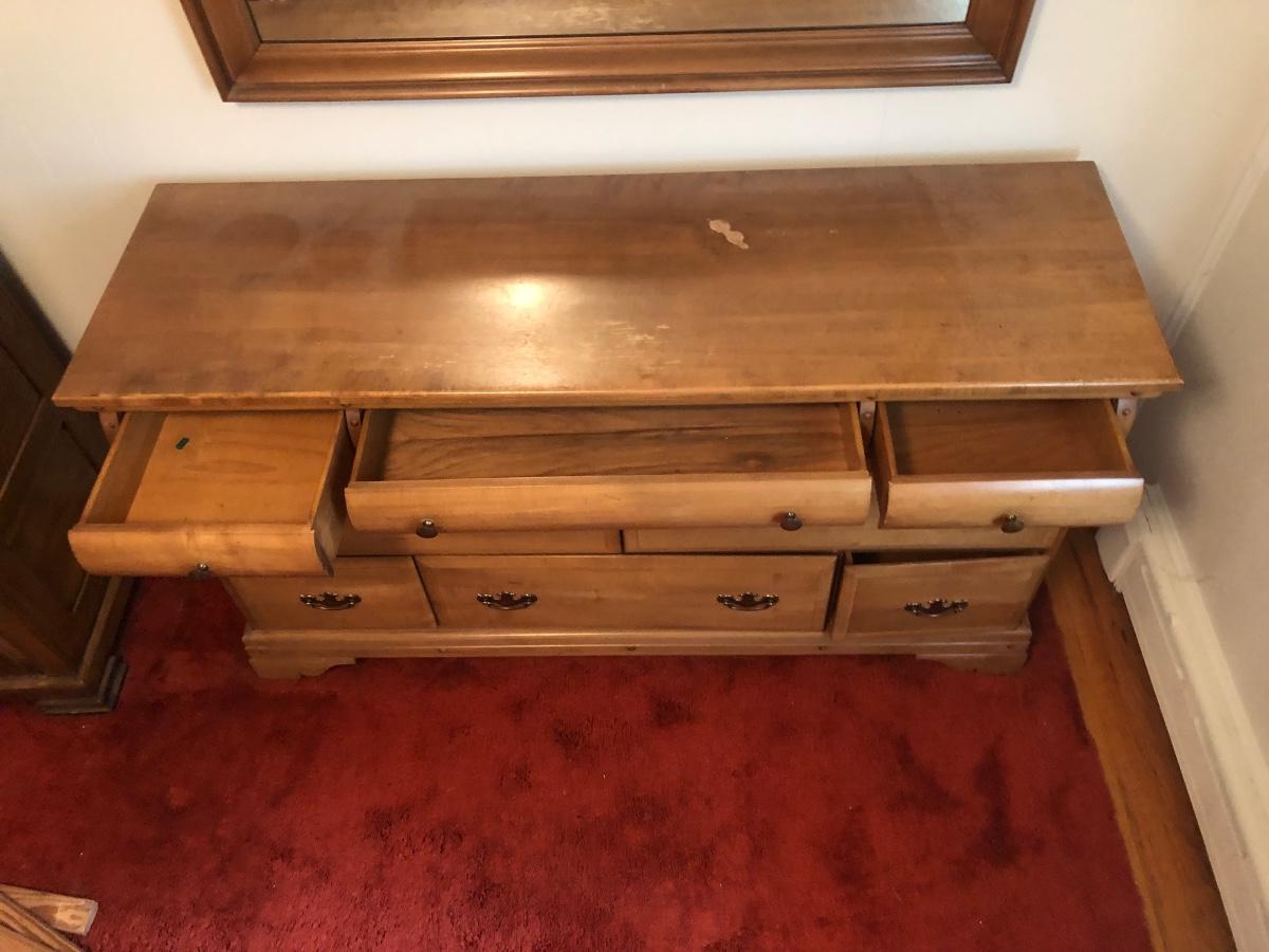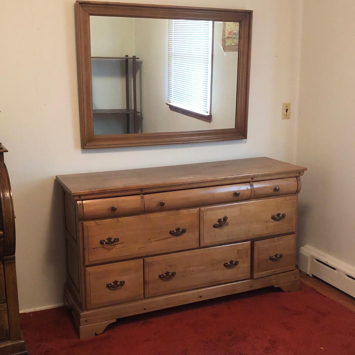 LOT 23M: Wooden Bureau w/ Wall Mirror