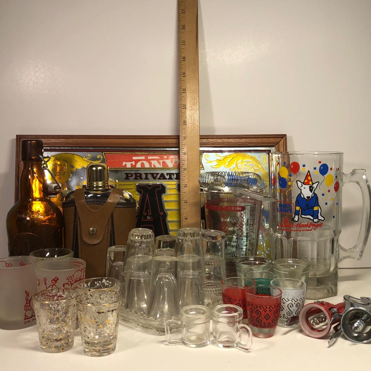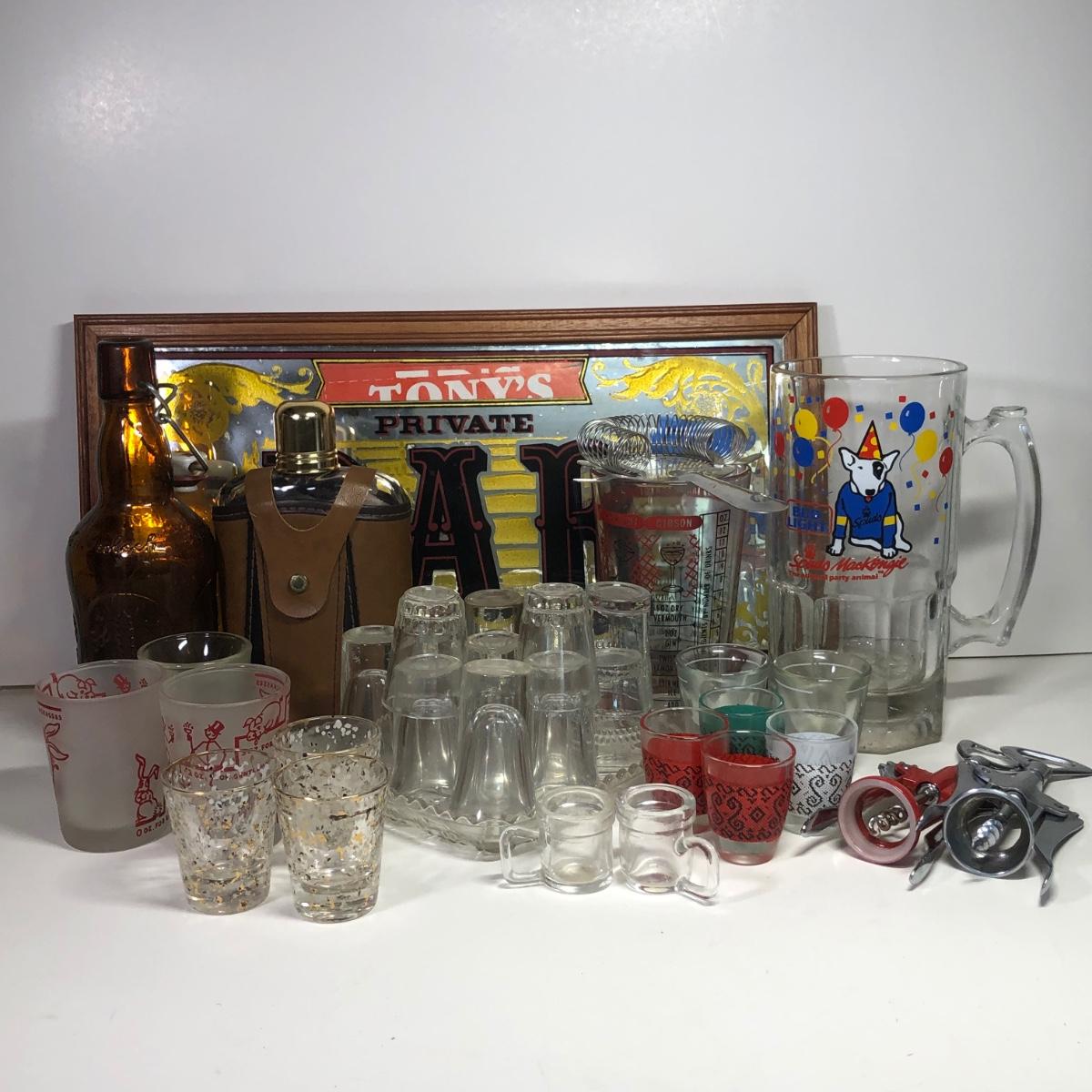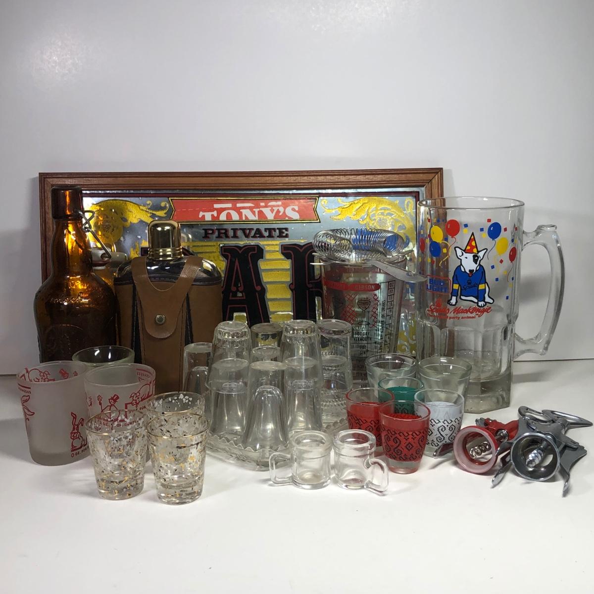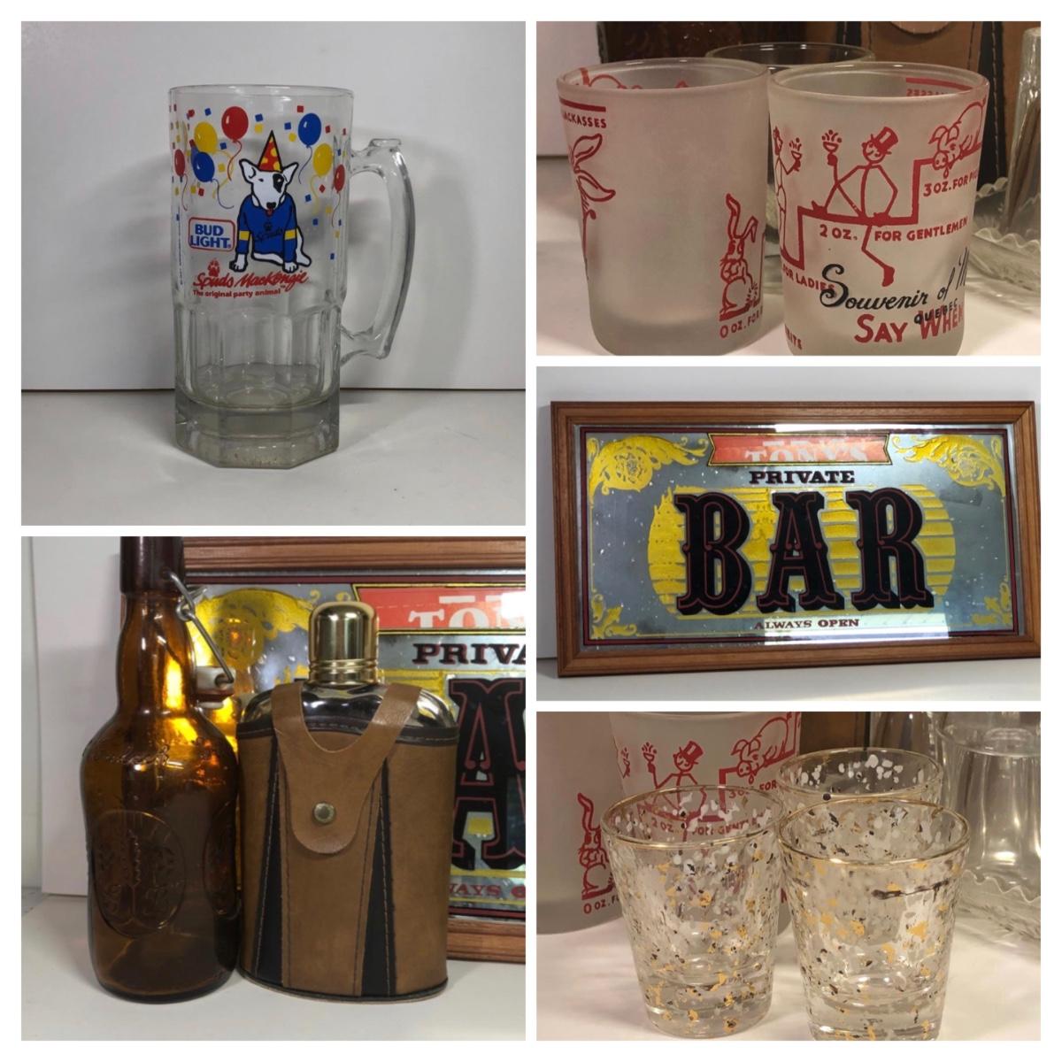 LOT 52M: Bar Collection incl. Spuds MacKenzie Glass Mug & Private Bar Sign