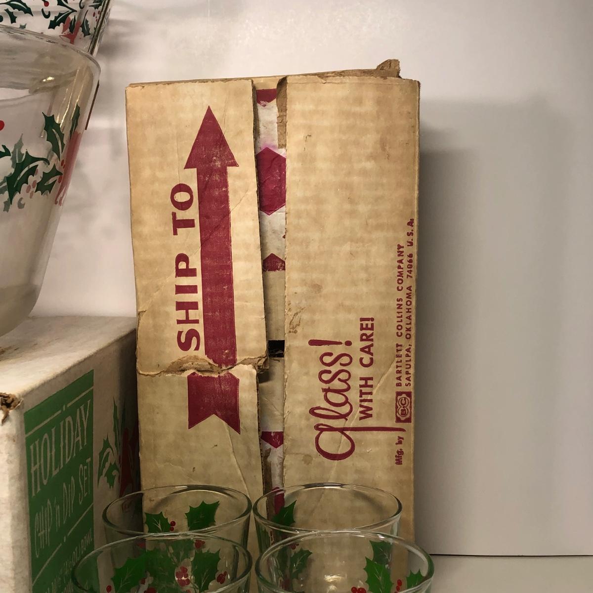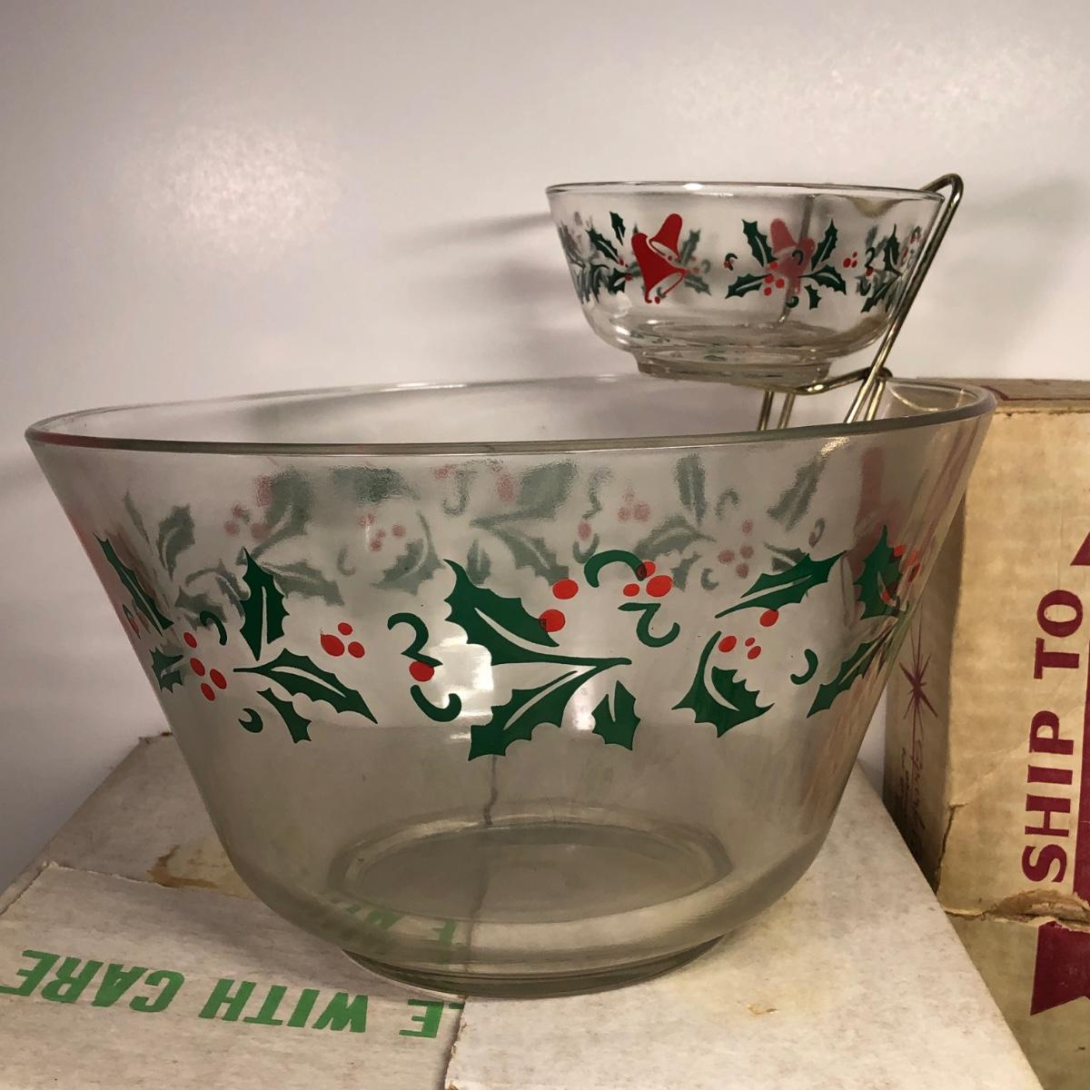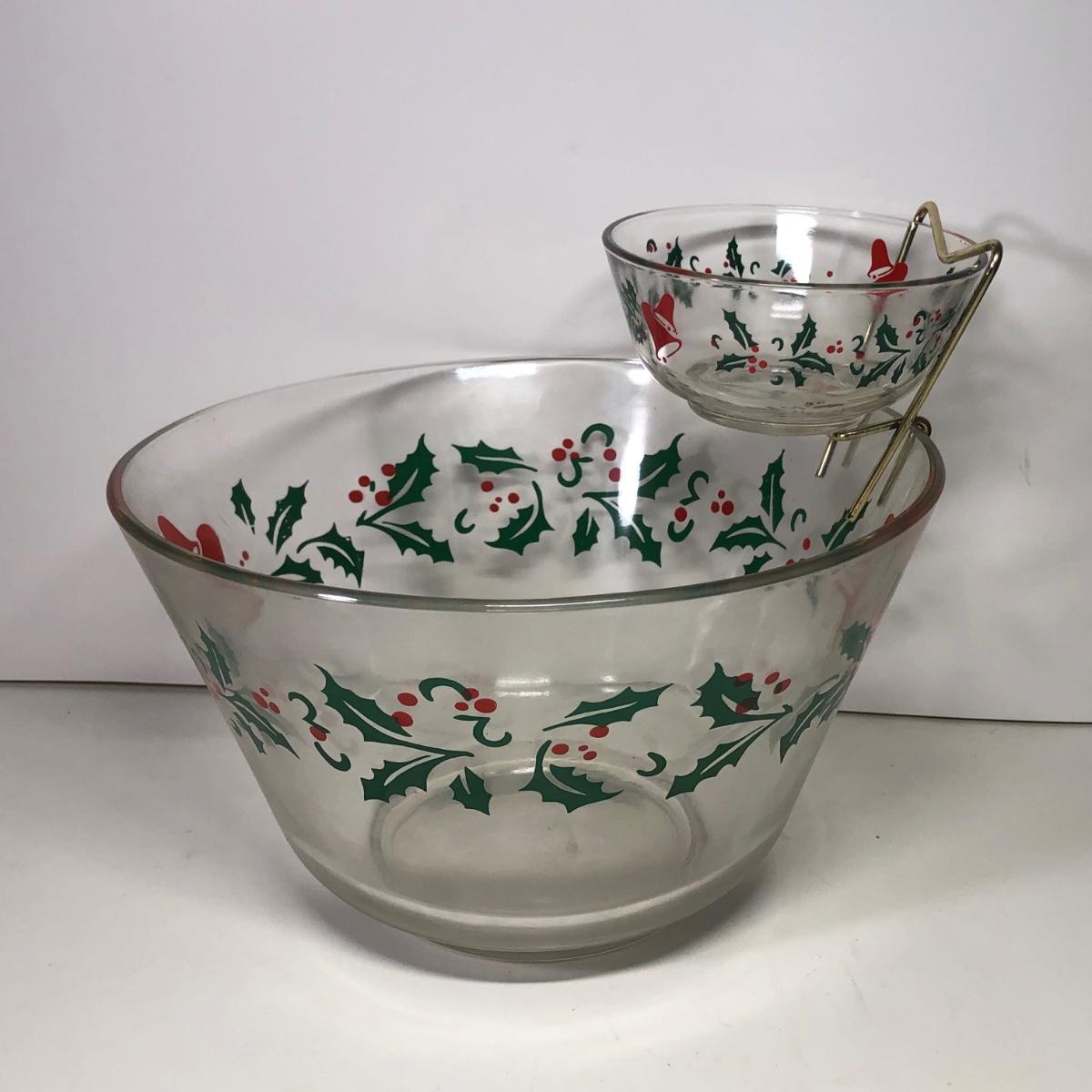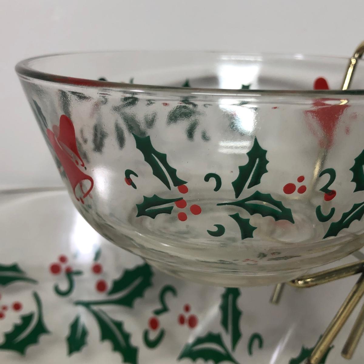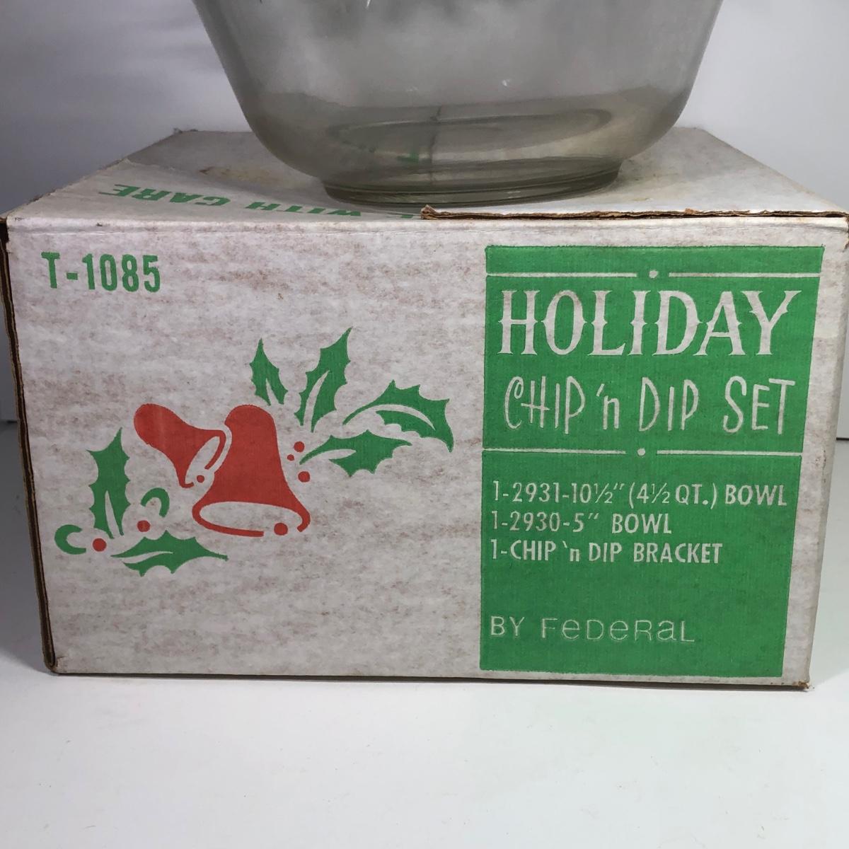 LOT 53M: Federal Holiday Chip n Dip Set w/ Extra Bowl, Holly Glass Tumblers & More