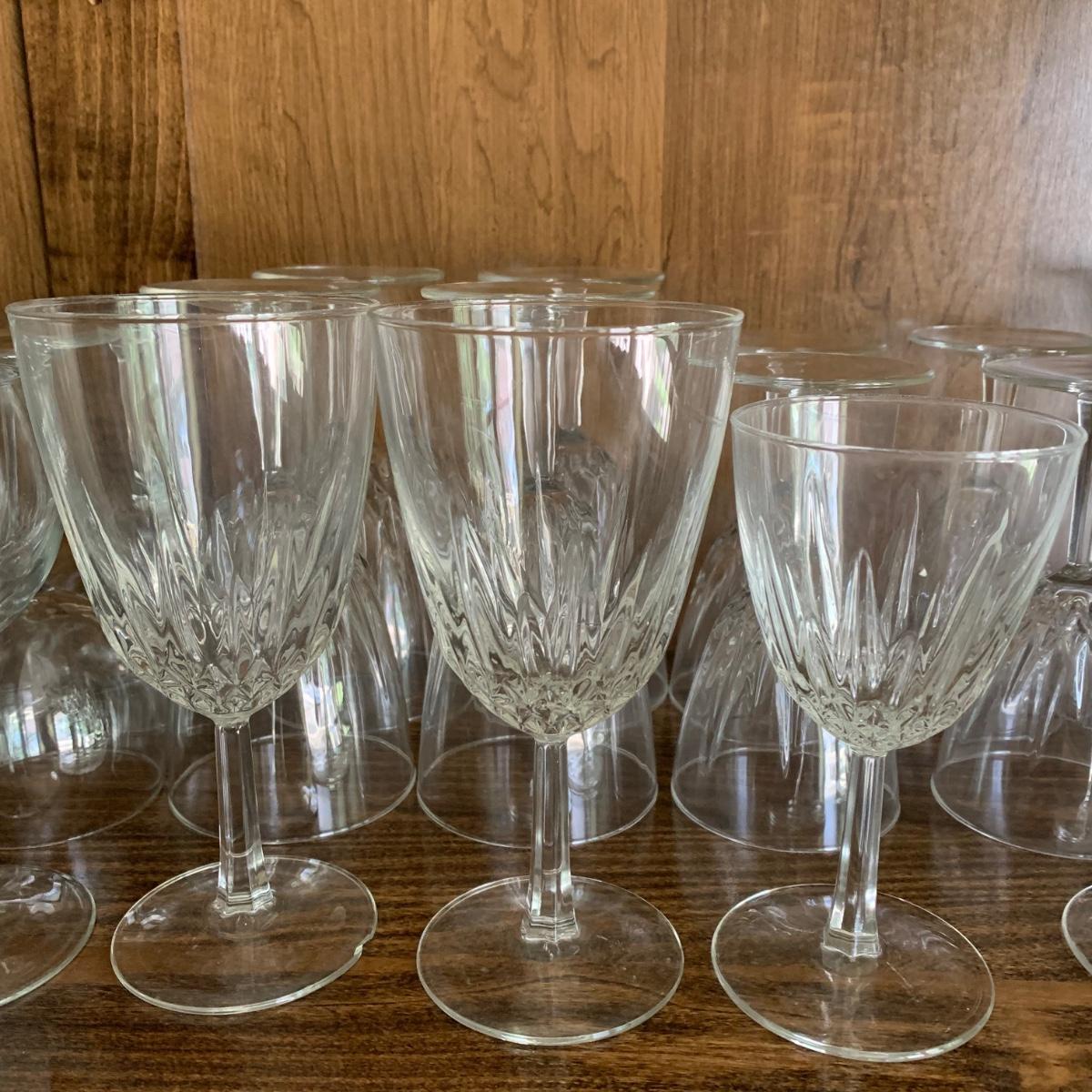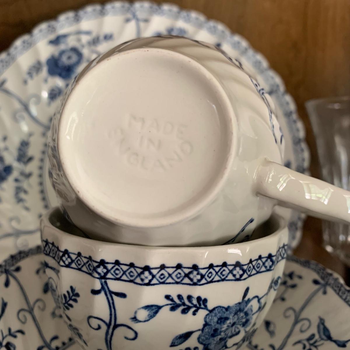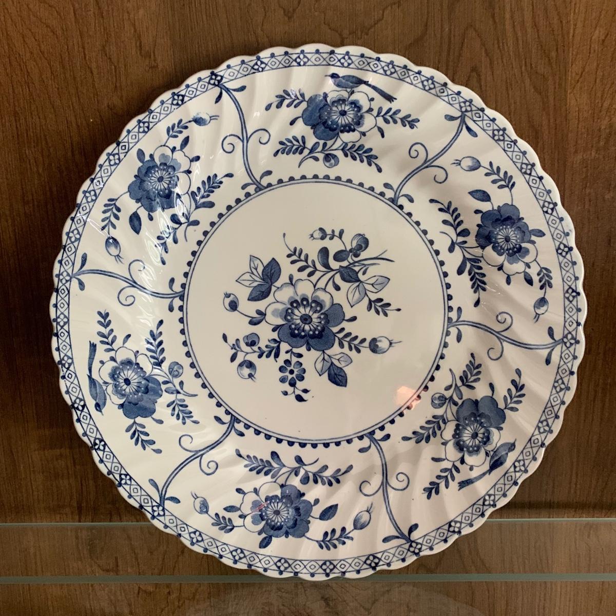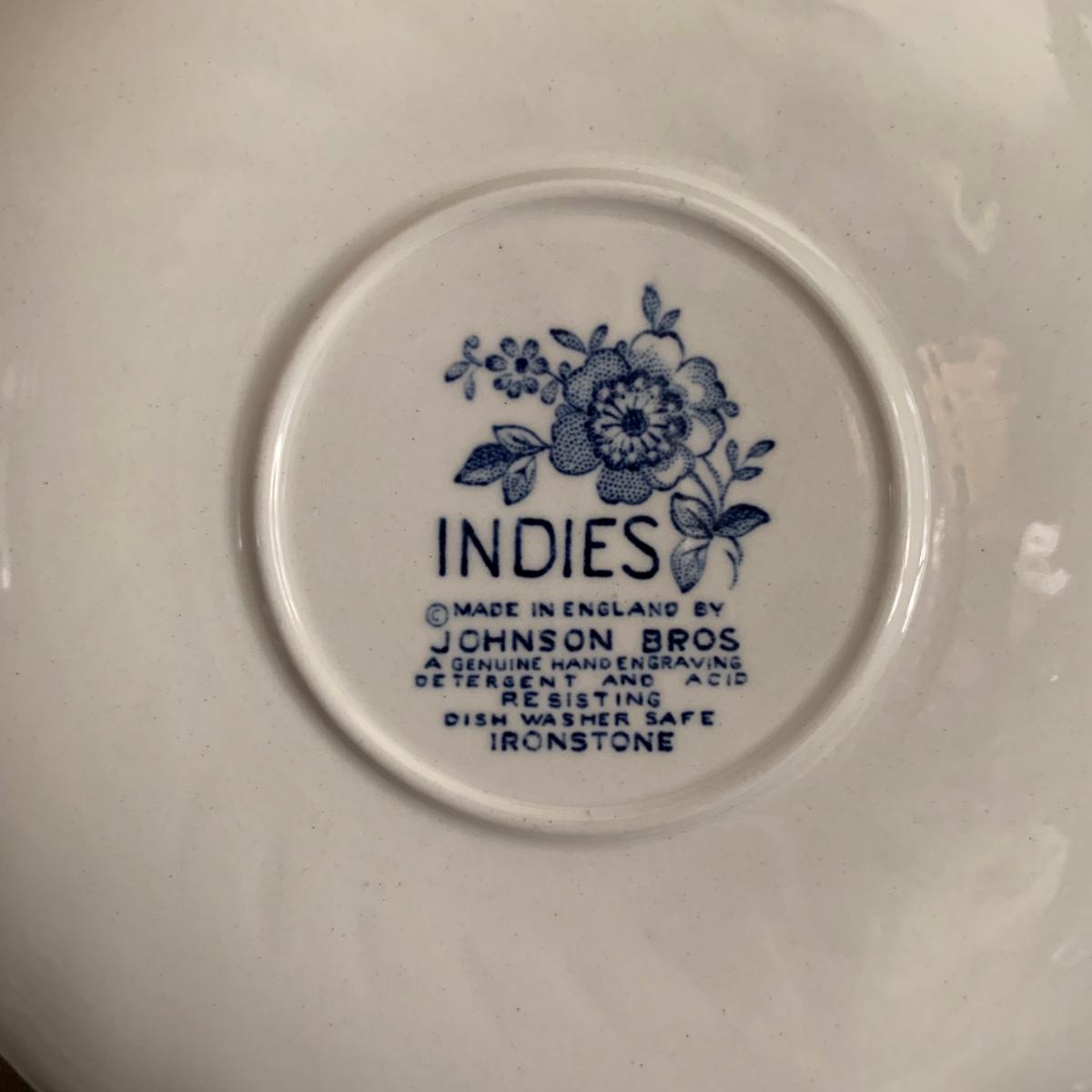 LOT 55: Vintage Johnson Brothers Blue White Indies Ironstone China & Stemware