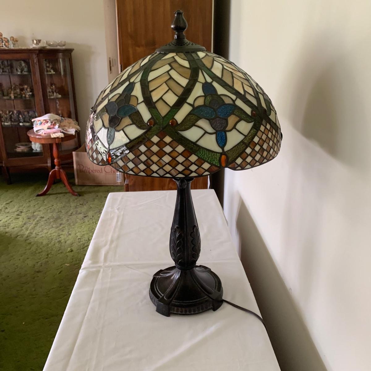 LOT 57: Dale Tiffany Stain Glass Lamp 26" Table Lamp