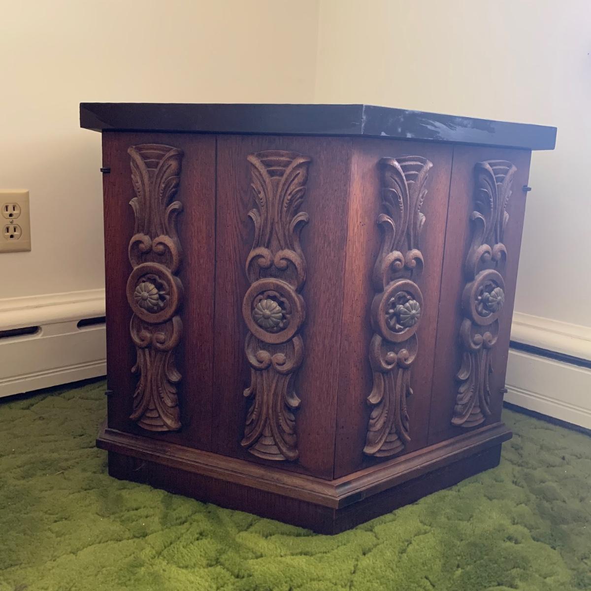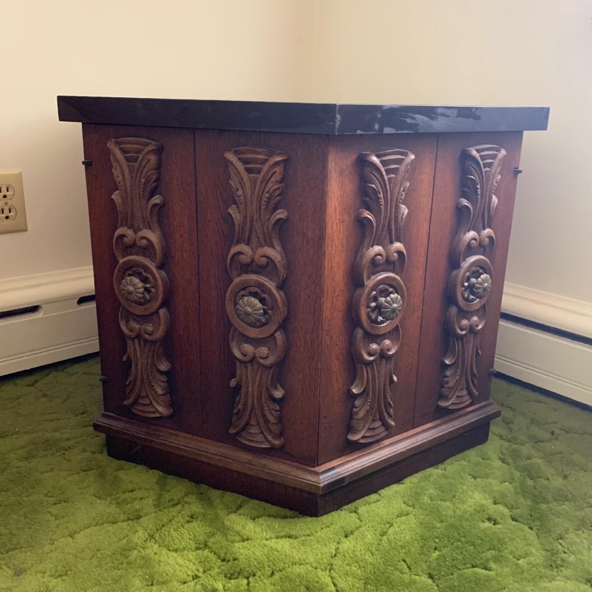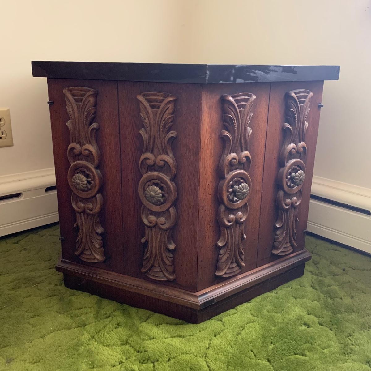 LOT 62: Vintage Hexagonal Faux Slate Top End Table