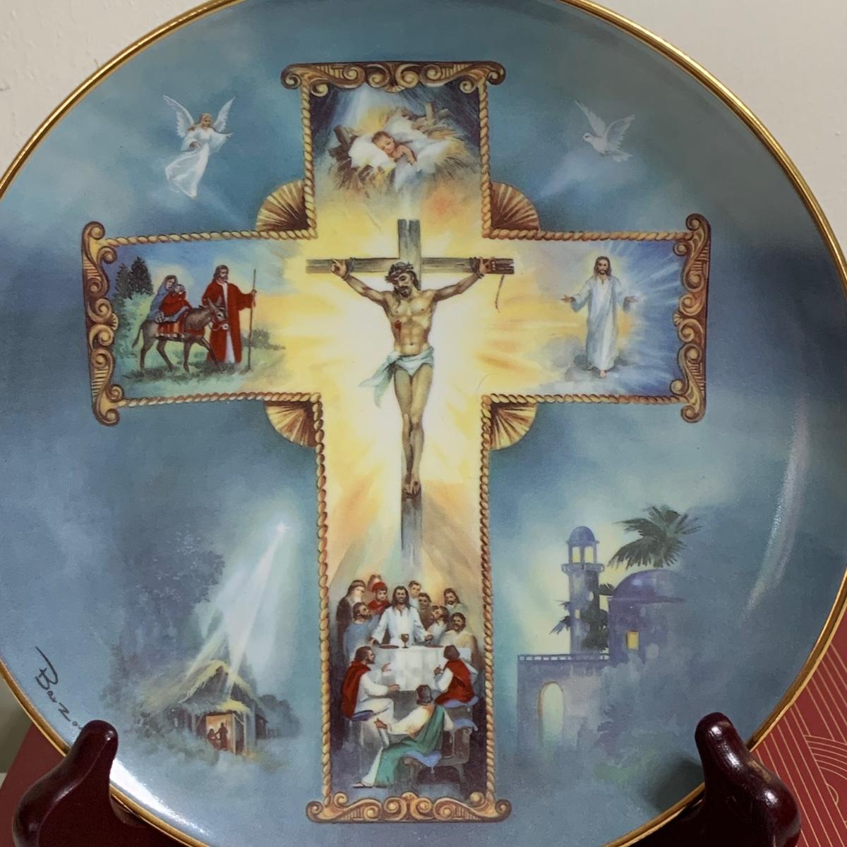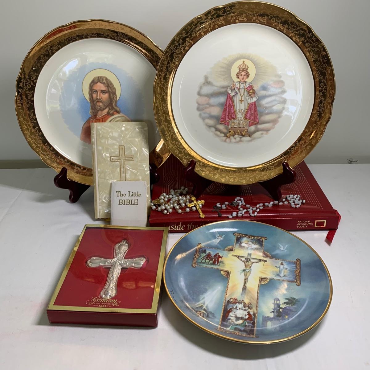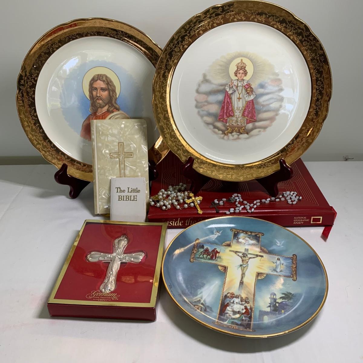 LOT 65: Religous Collection: Plates w/22k Gold Rims, Franklin Mint Bar Zoni Plate, Gorham Cross & More