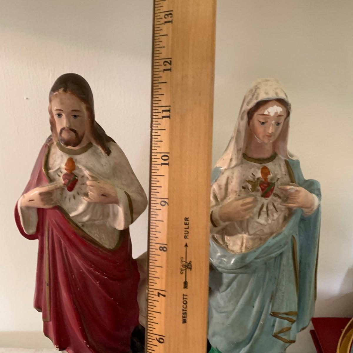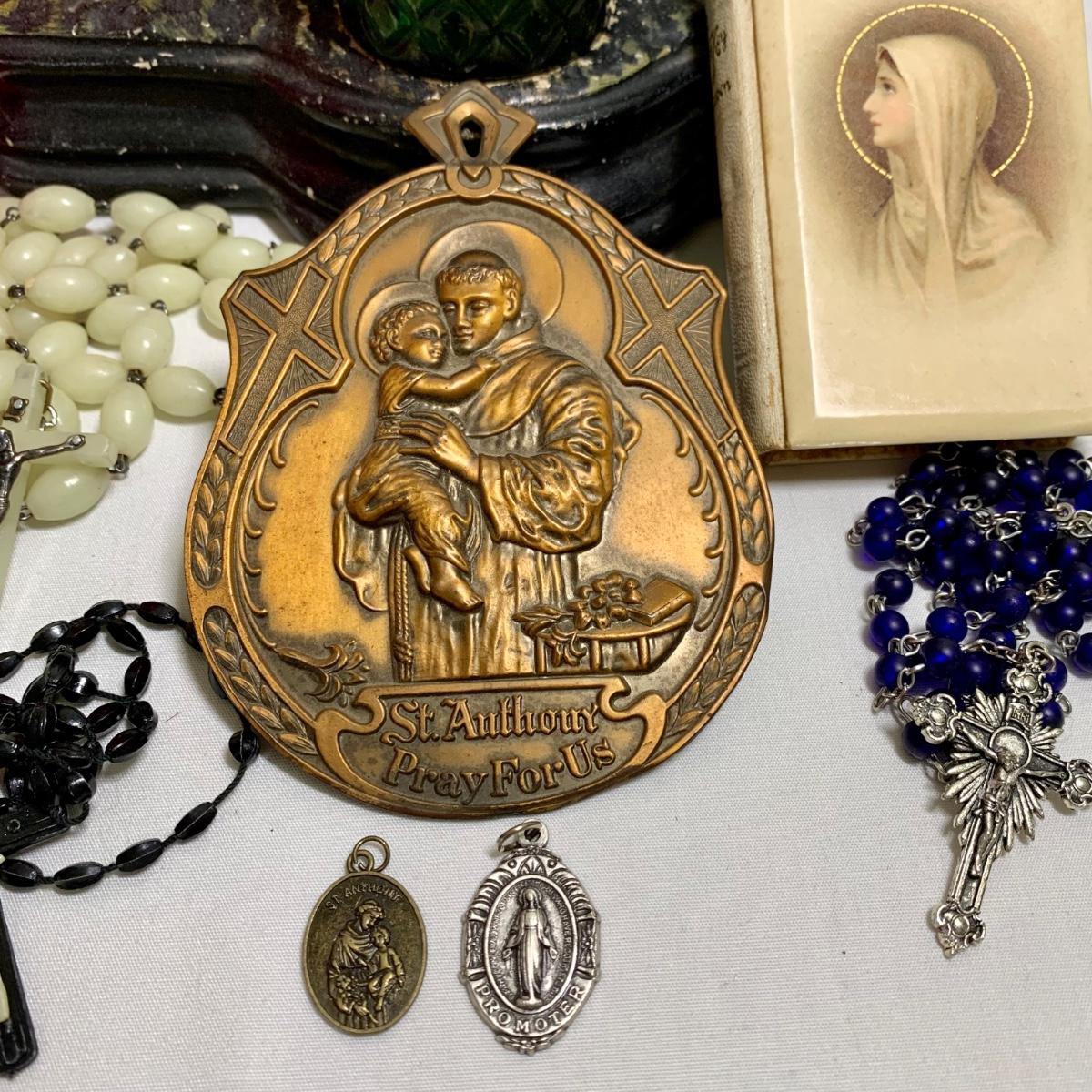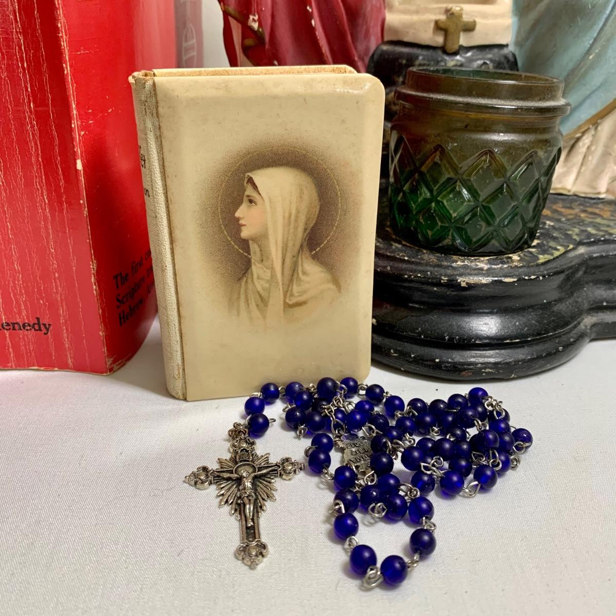 LOT 66R: Antique P.S. Co., Phila PA Chalkware Religious Statue, Rosaries, Bible & More