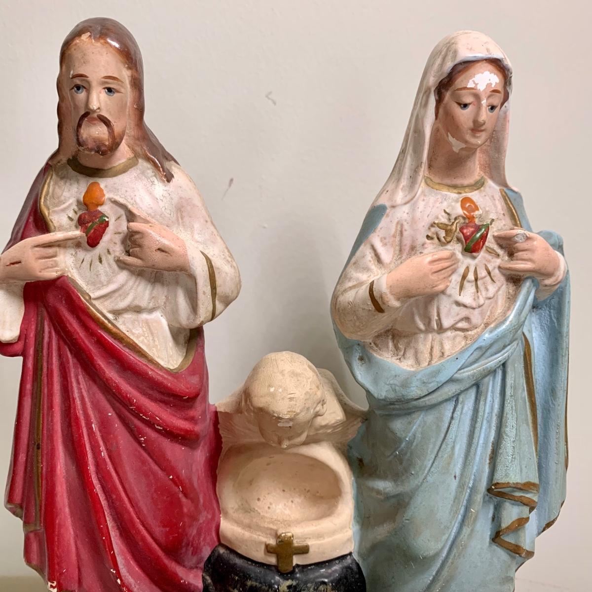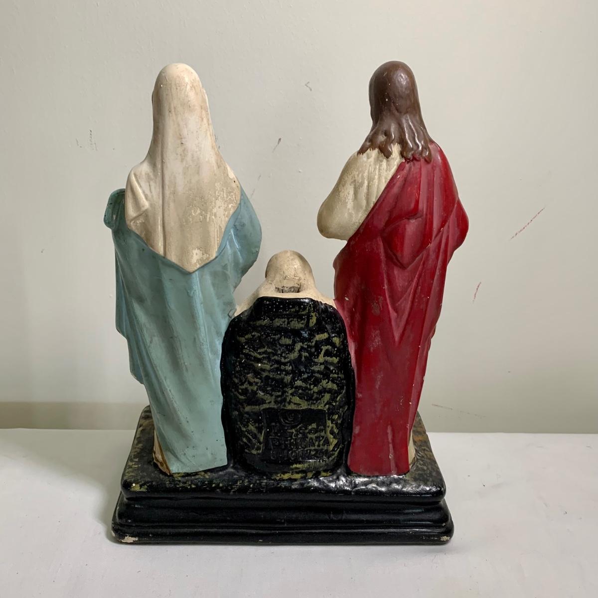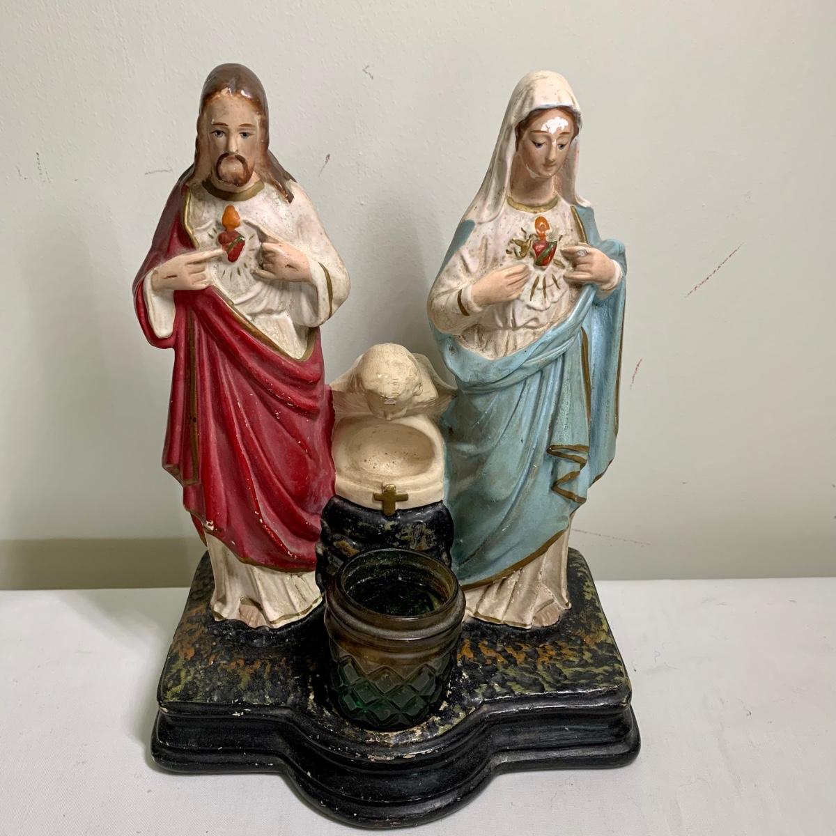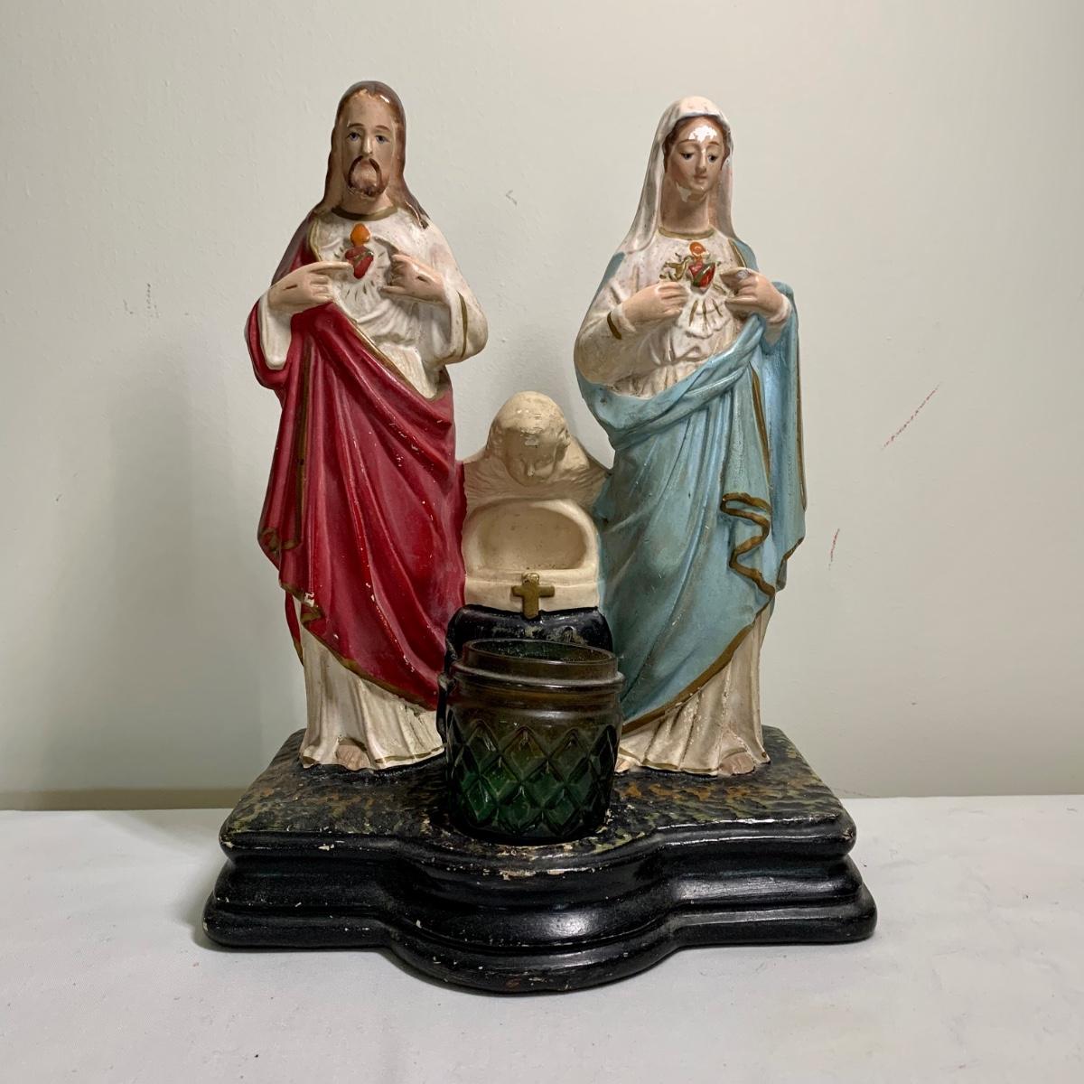LOT 66R: Antique P.S. Co., Phila PA Chalkware Religious Statue, Rosaries, Bible & More